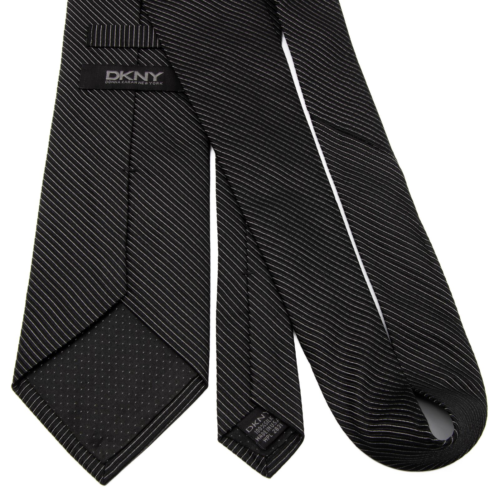 こちらは都会的な鋭さがVゾーンを貫く、ダナキャランのネクタイでございます。