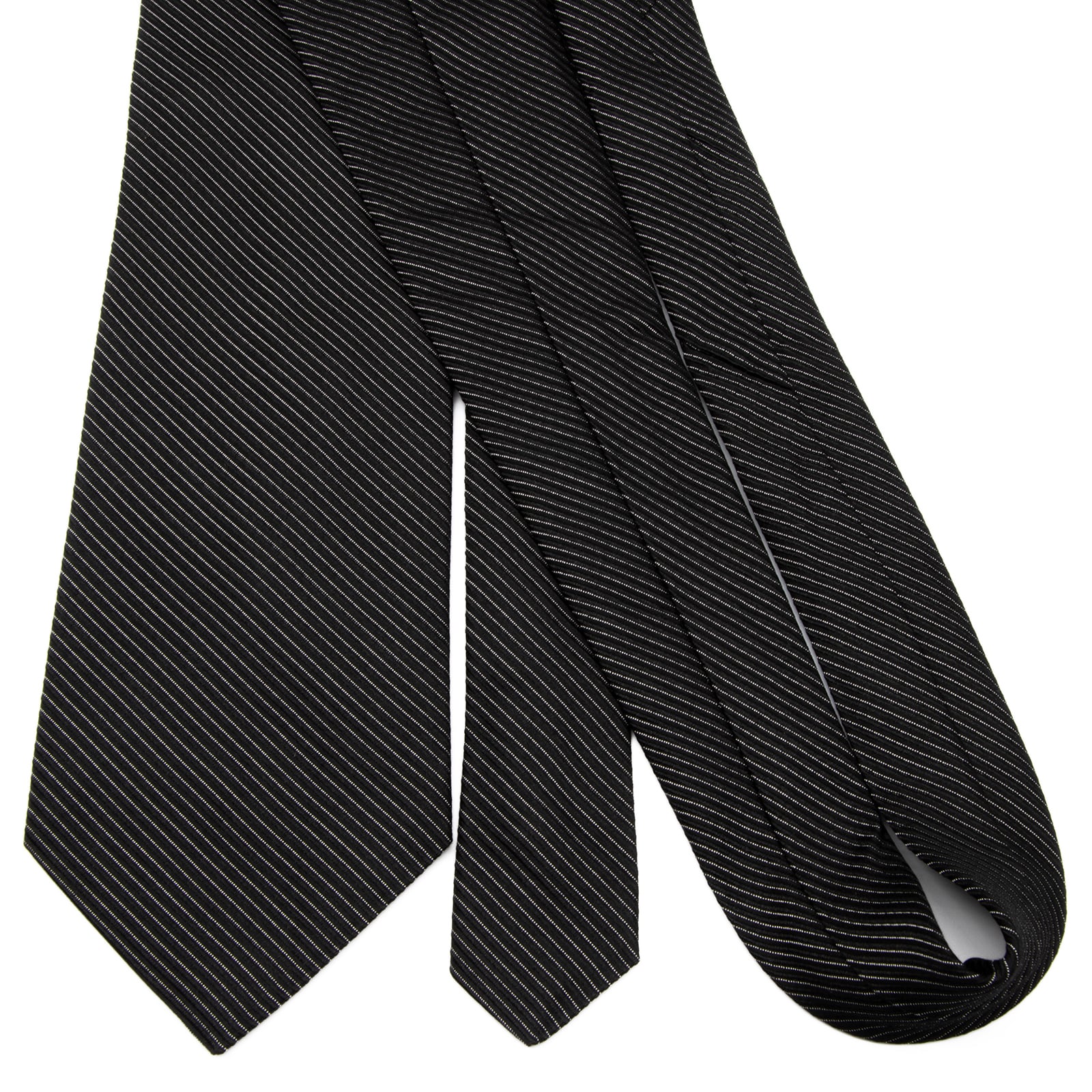 送料無料 ダナキャラン ネクタイ レギュラータイ ジャガードタイ シルク 黒 ブラック シルバー ストライプ シンプル ブランド 綺麗 P466