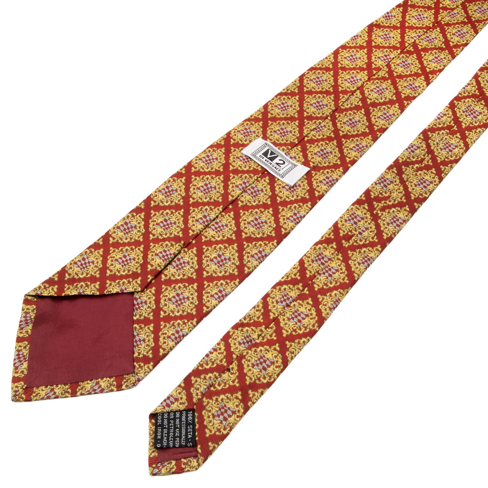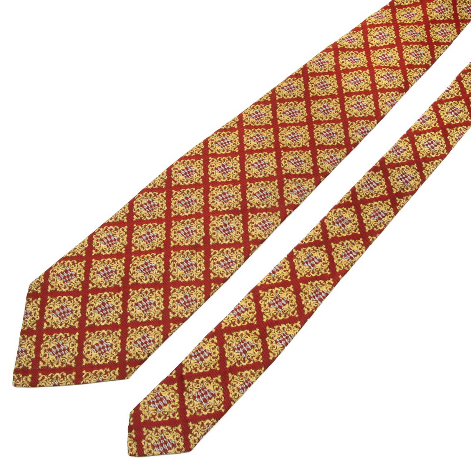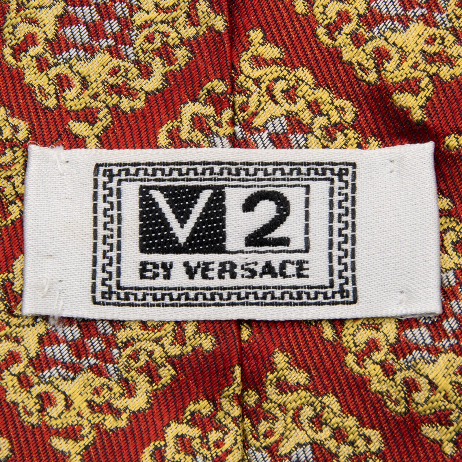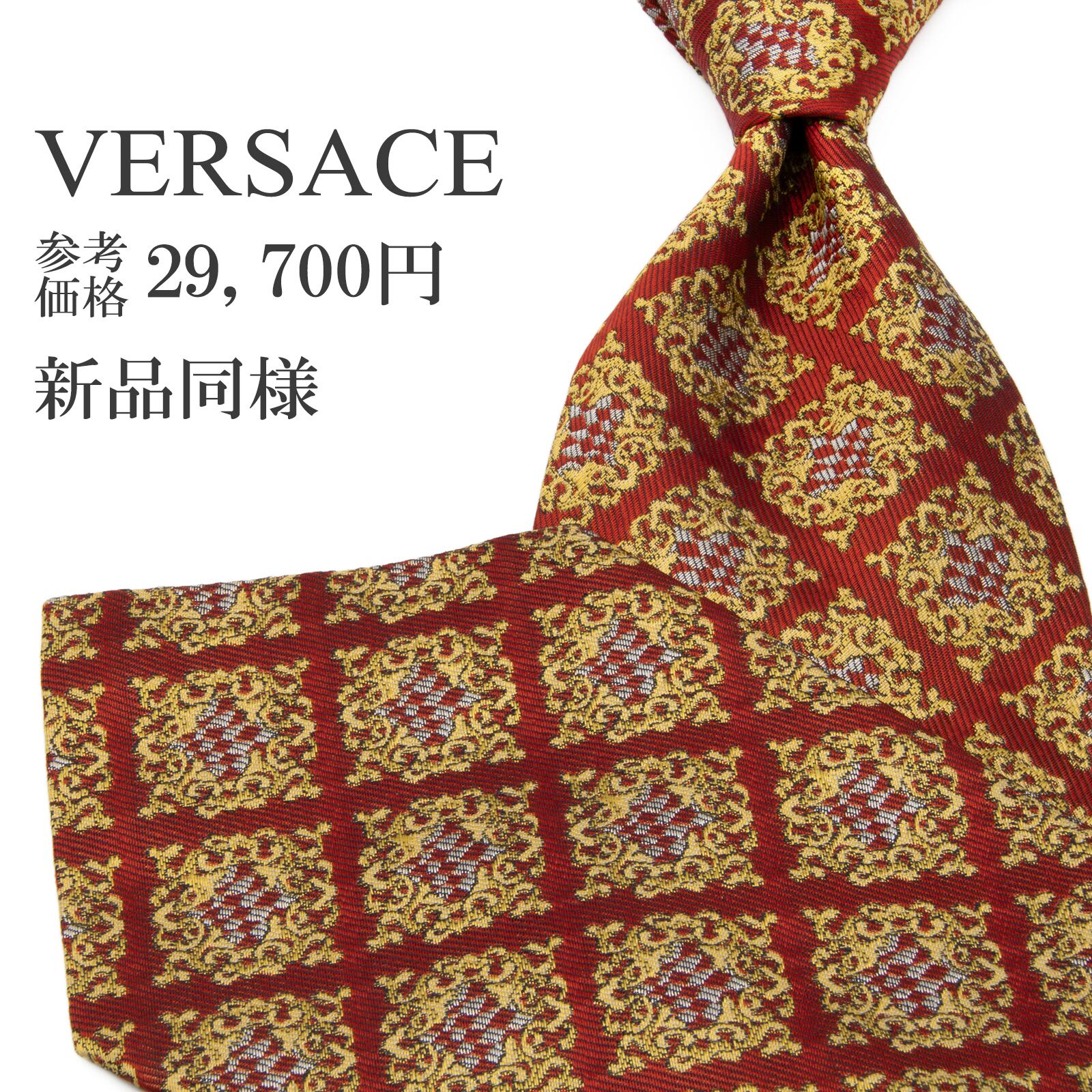 送料無料 ヴェルサーチェ ネクタイ ジャガード 新品同様 オレンジ ゴールド シルバー V2 総柄 Y2K 90s 光沢 ブランド イタリア製 綺麗 P499