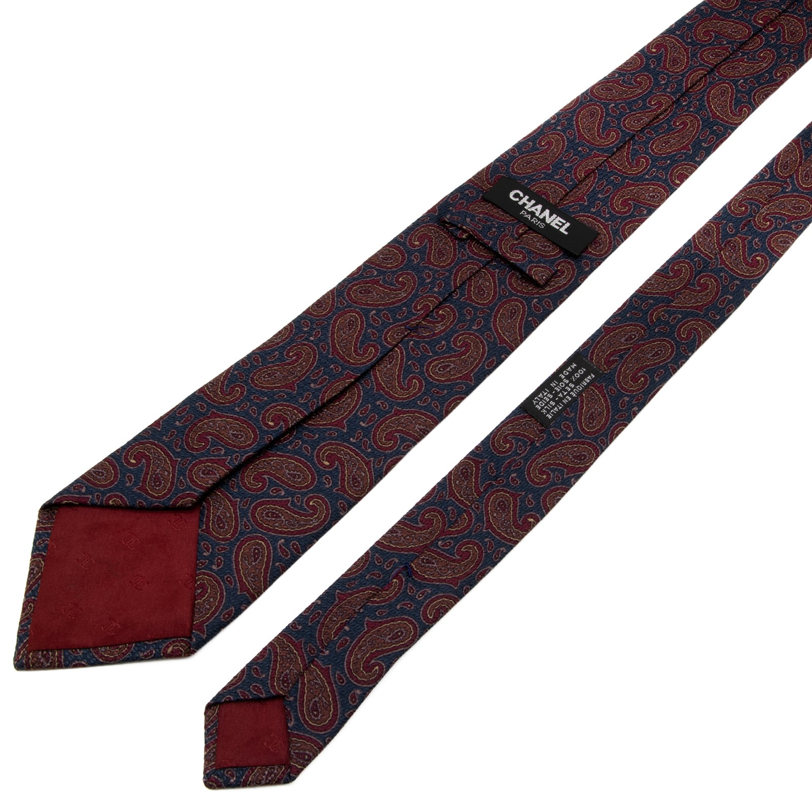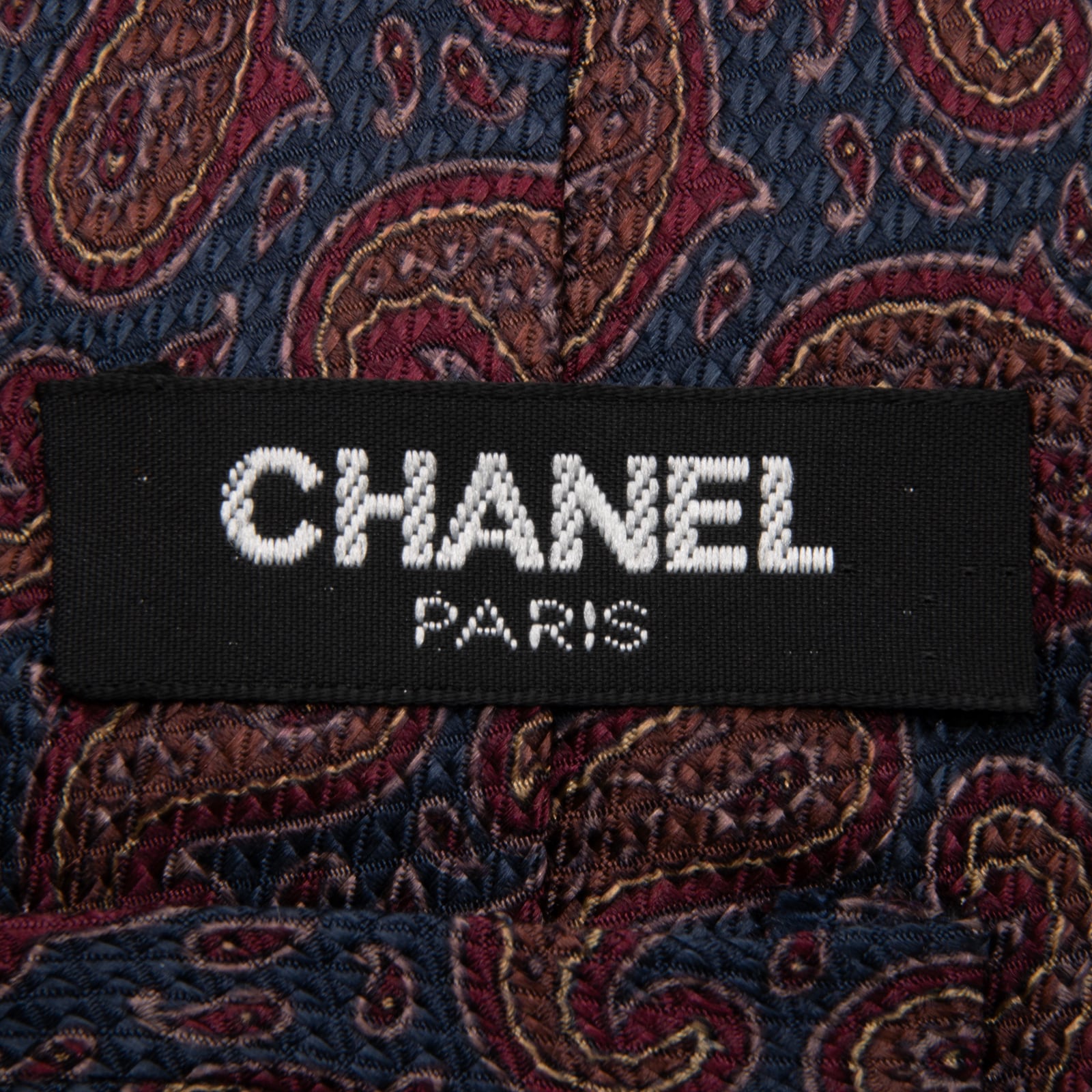 送料無料 シャネル ネクタイ レギュラータイ ジャガード 新品同様 ネイビーブルー 茶色 赤 ペイズリー 光沢 ブランド イタリア製 綺麗 P764