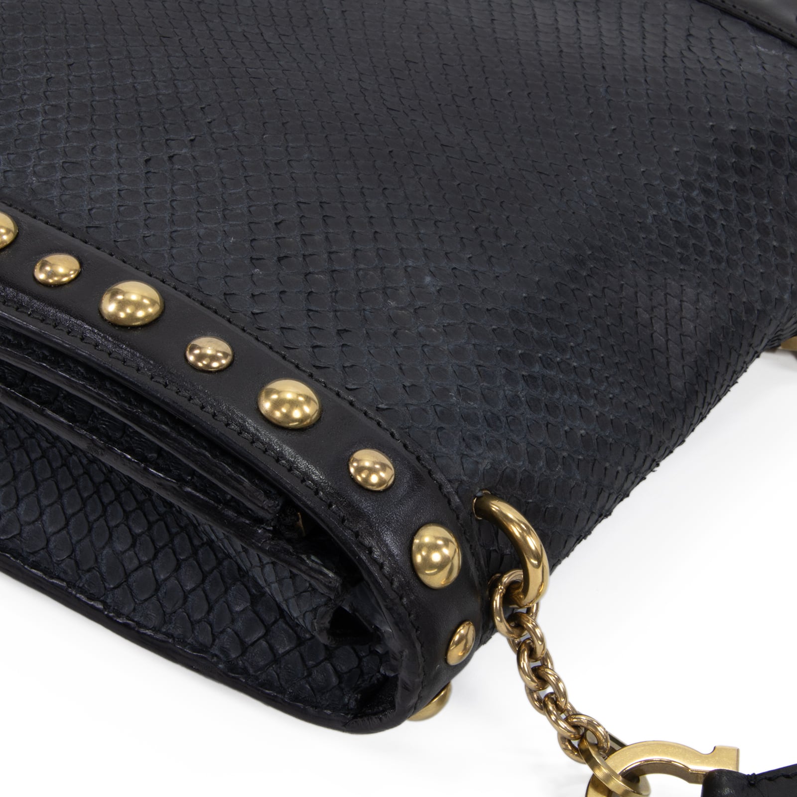 本物 送料無料 フェラガモ ショルダーバッグ メンズ レディース パイソン ガンチーニ グレー 黒 蛇革 肩掛け 斜め掛け ロゴ 鞄 バック F290