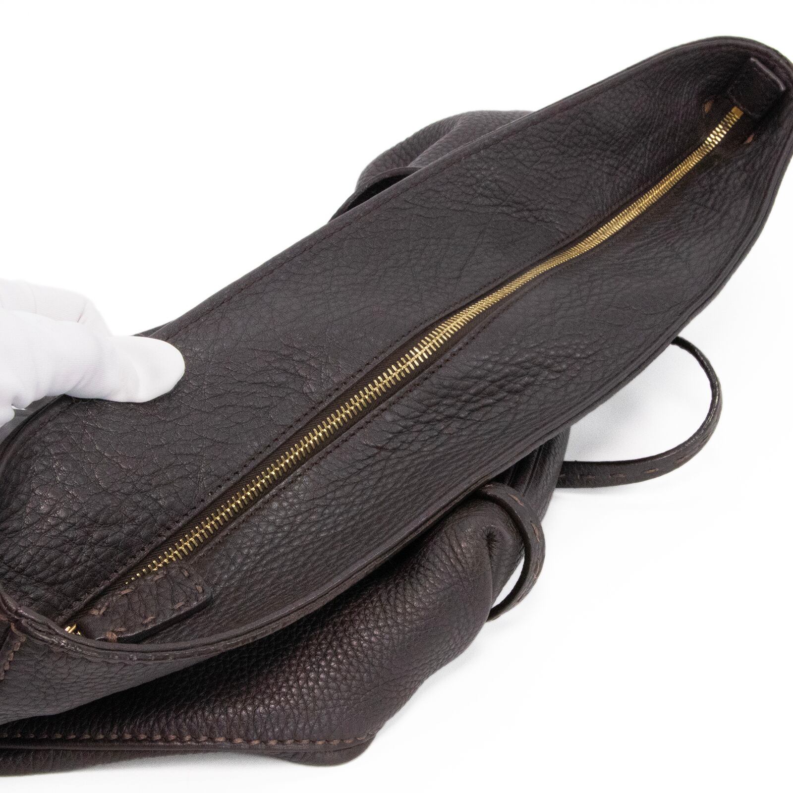 本物 送料無料 フェンディ ハンドバッグ ショルダーバッグ メンズ レディース セレリア 焦げ茶色 肩掛け 馬 ロゴ 革 レザー 鞄 バック F291
