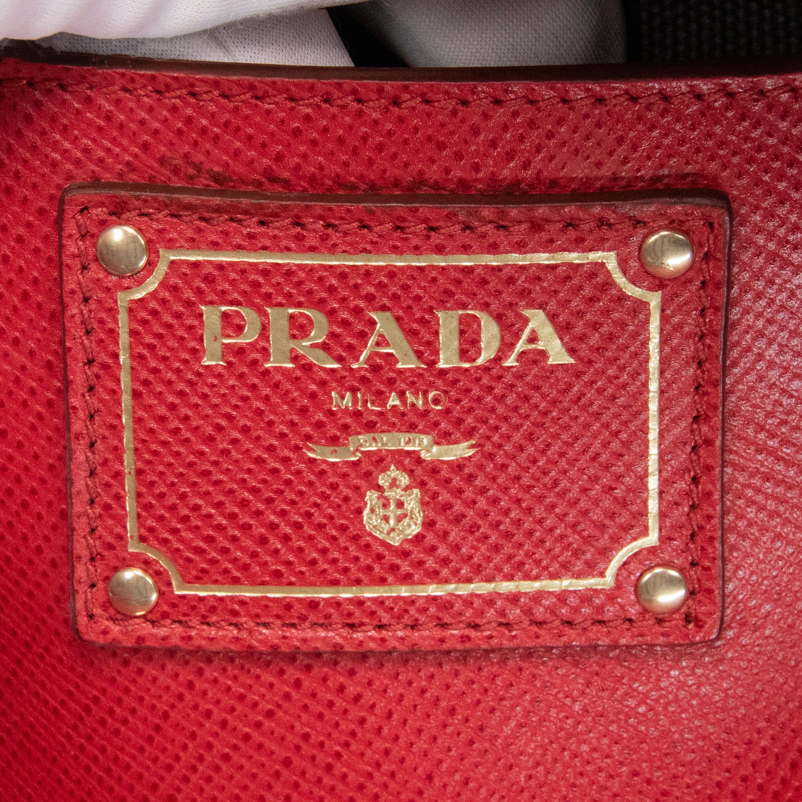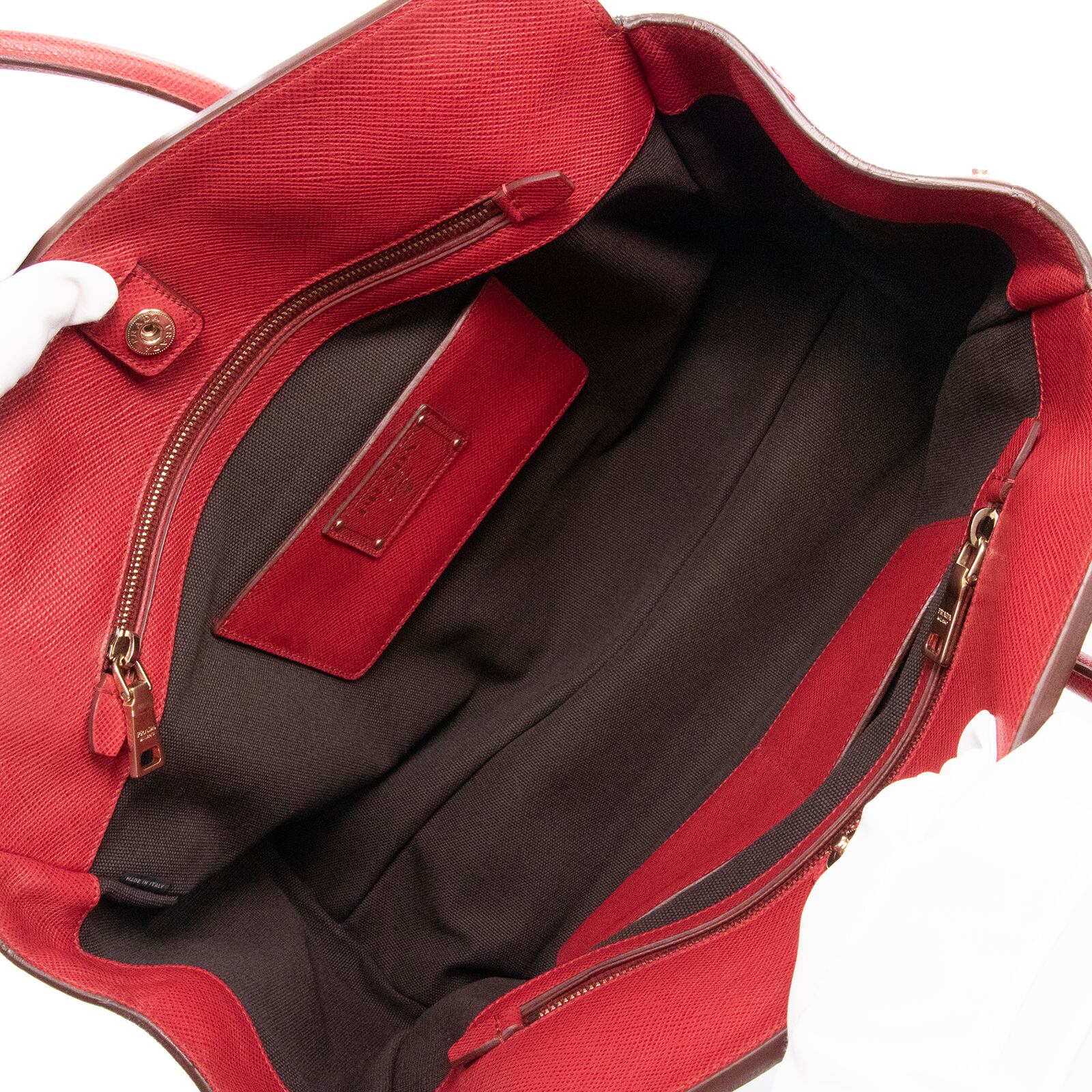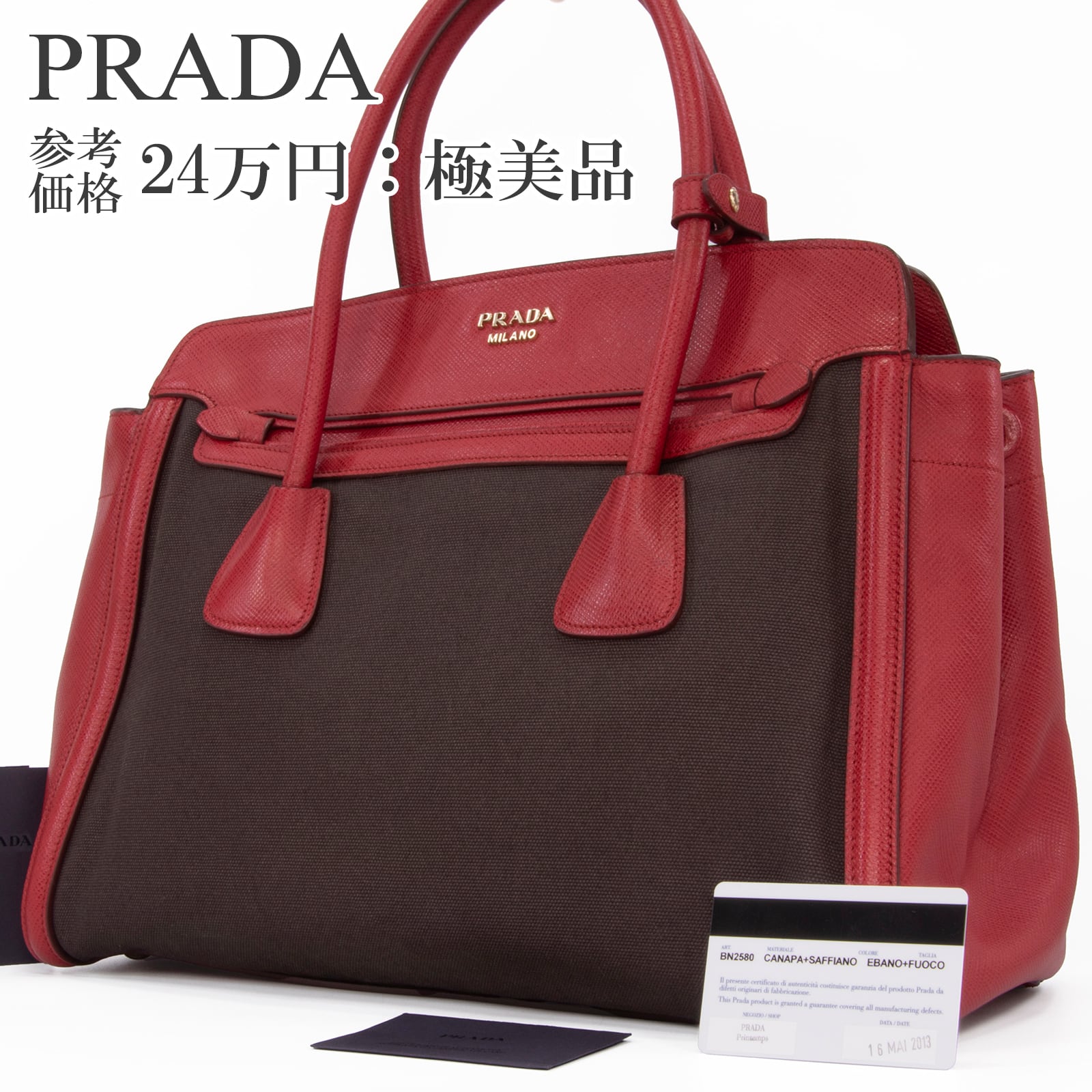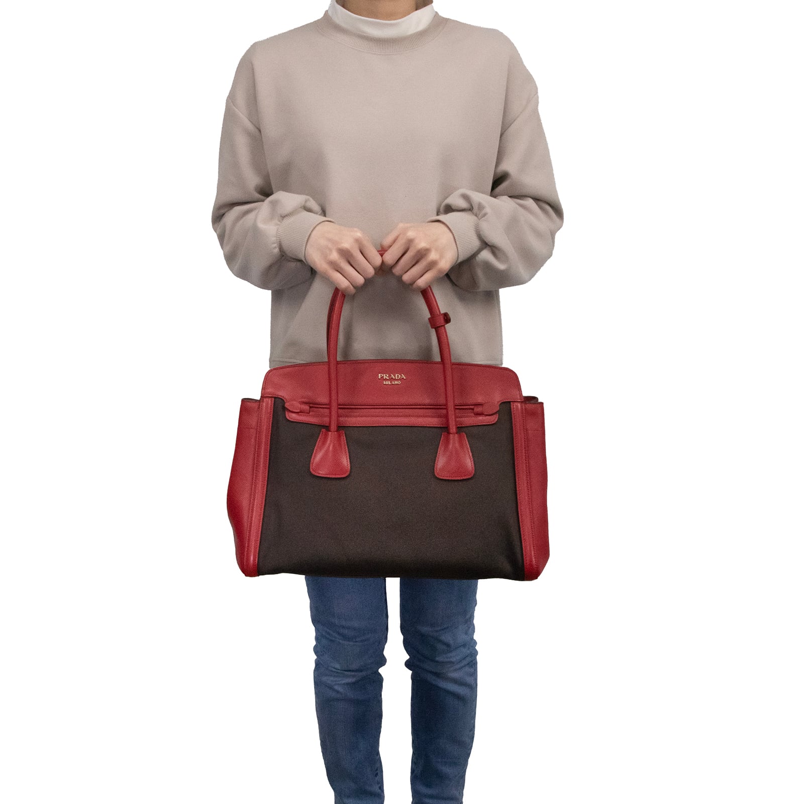 本物 送料無料 プラダ ハンドバッグ メンズ レディース サフィアーノレザー カナパ 赤 レッド ダークグレー 大きめ ロゴ 革 鞄 バック F292