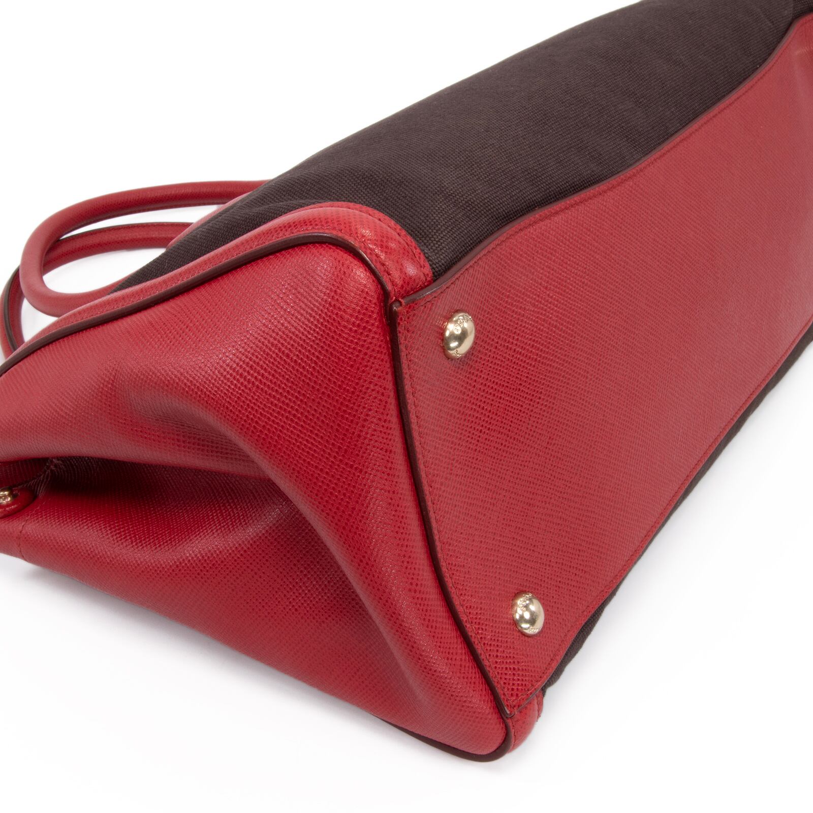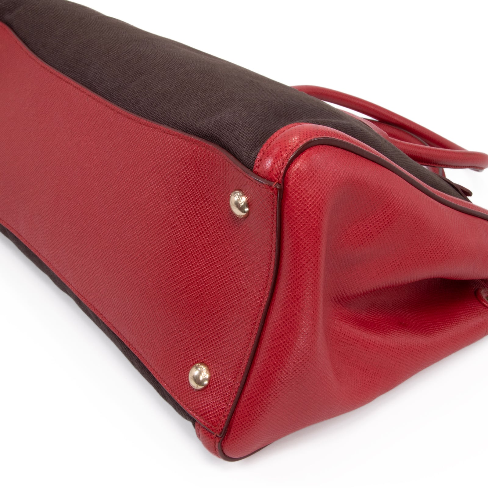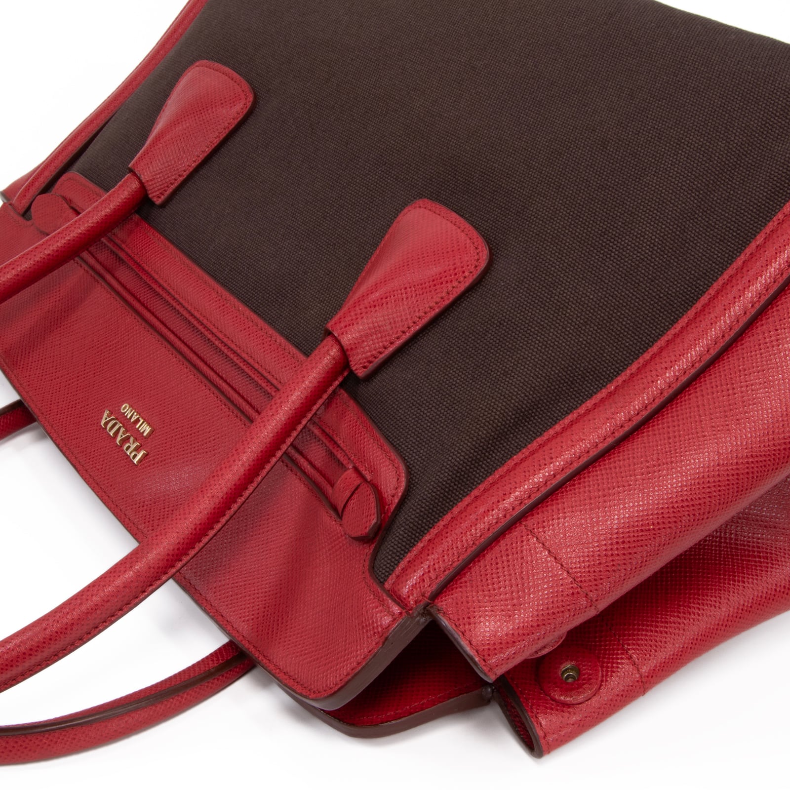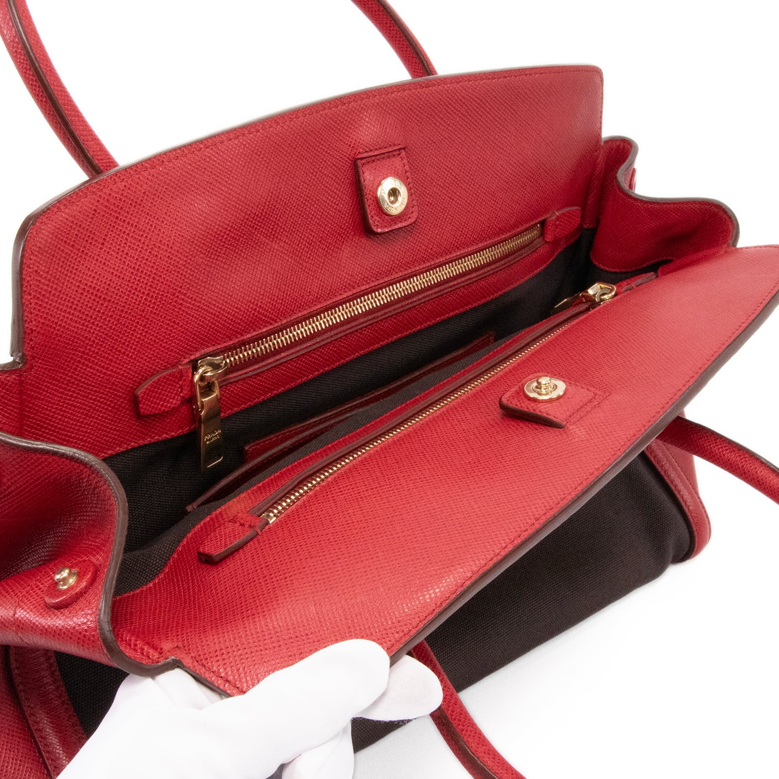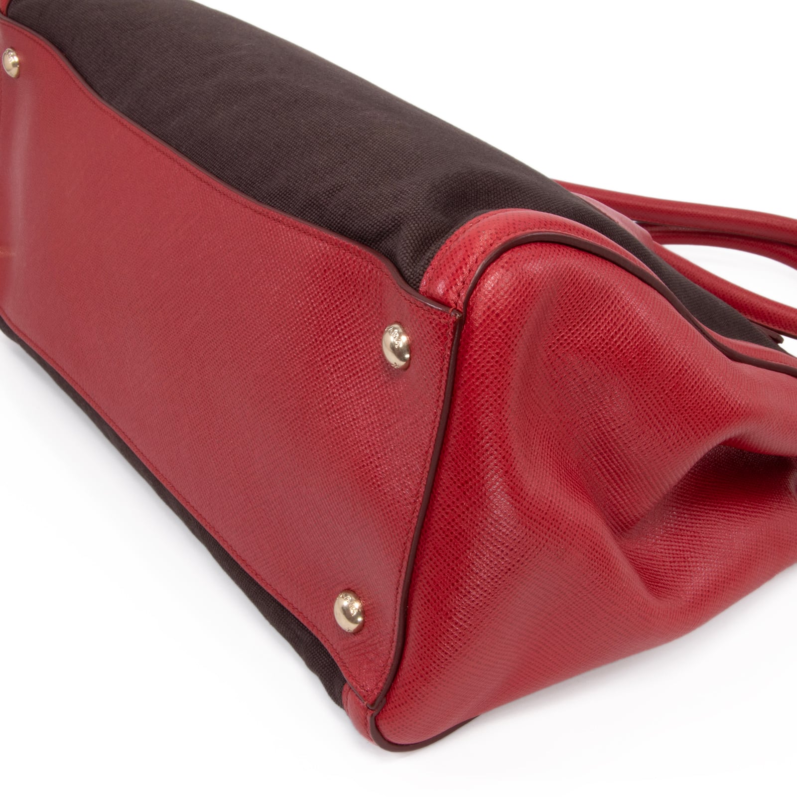 本物 送料無料 プラダ ハンドバッグ メンズ レディース サフィアーノレザー カナパ 赤 レッド ダークグレー 大きめ ロゴ 革 鞄 バック F292