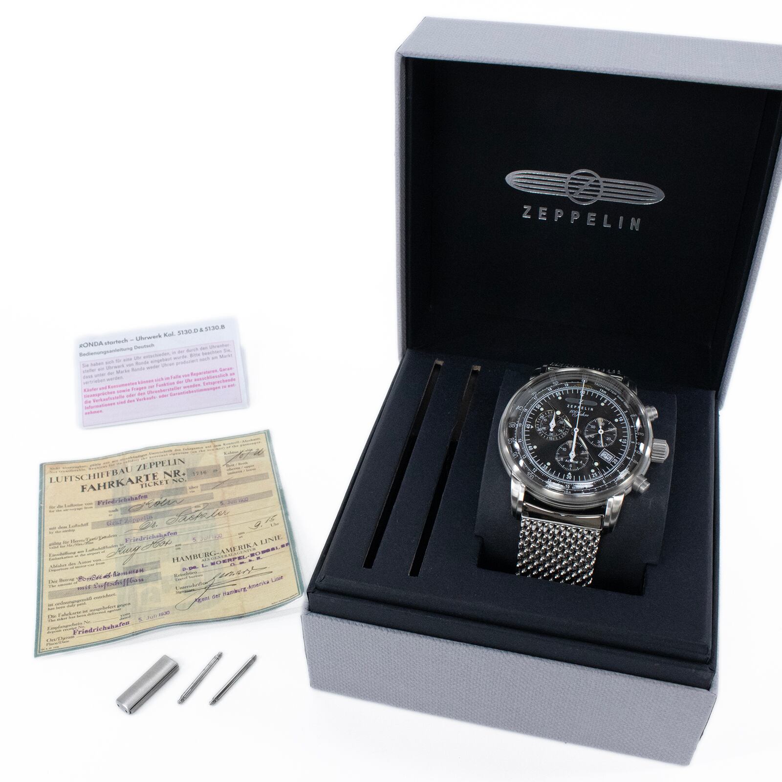 送料無料 ツェッペリン 腕時計 新品同様 メンズ 100周年記念シリーズ 7680-M2-GRY ダークグレー クロノグラフ ロゴ マーク ブランド X425
