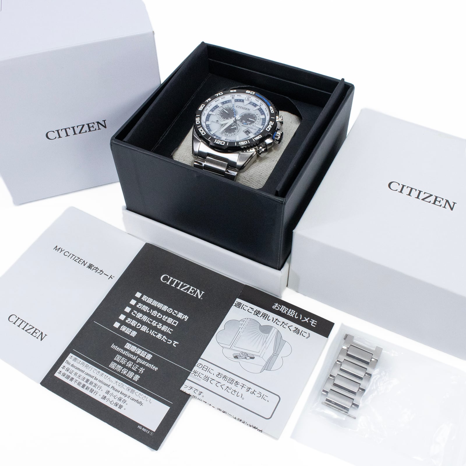送料無料 シチズン 腕時計 ソーラー電波 メンズ プロマスター E660-R013700 CB5034-91A 白 ネイビーブルー クロノグラフ 多機能 ロゴ X429