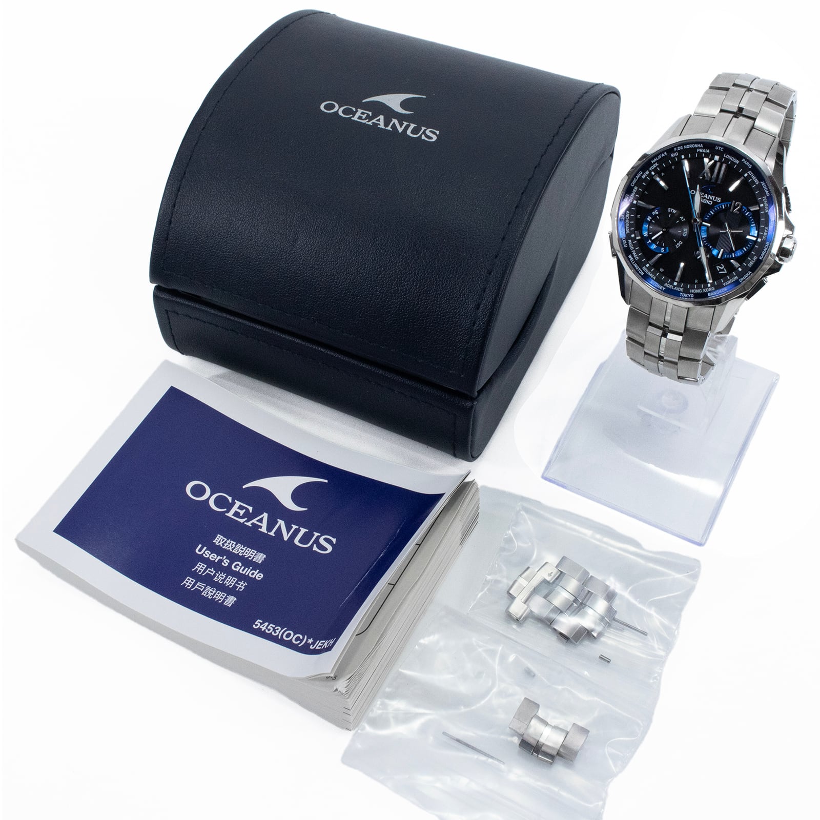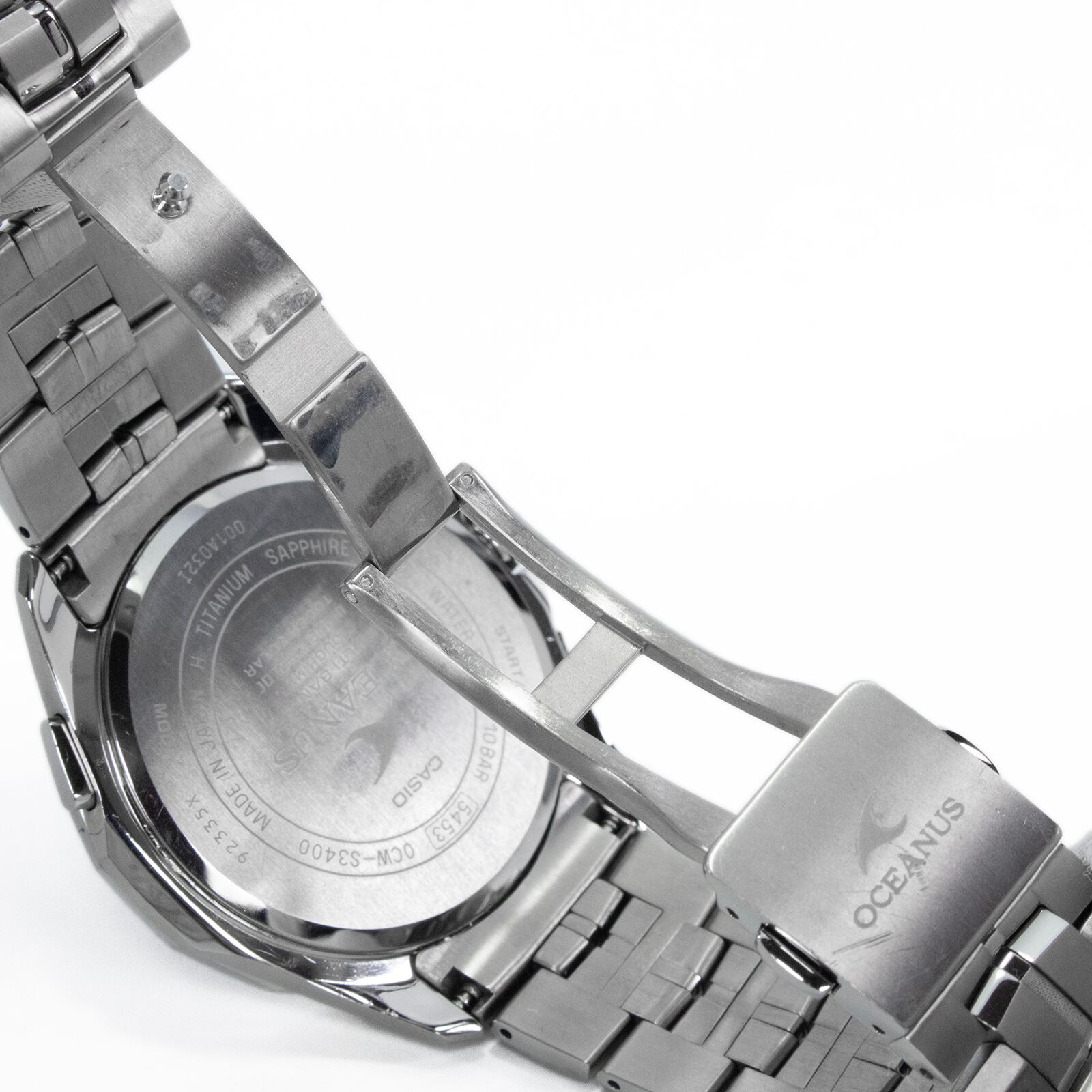 こちらは、青き知性がチタンの鎧を纏う、カシオのオシアナス マンタ・腕時計でございます。