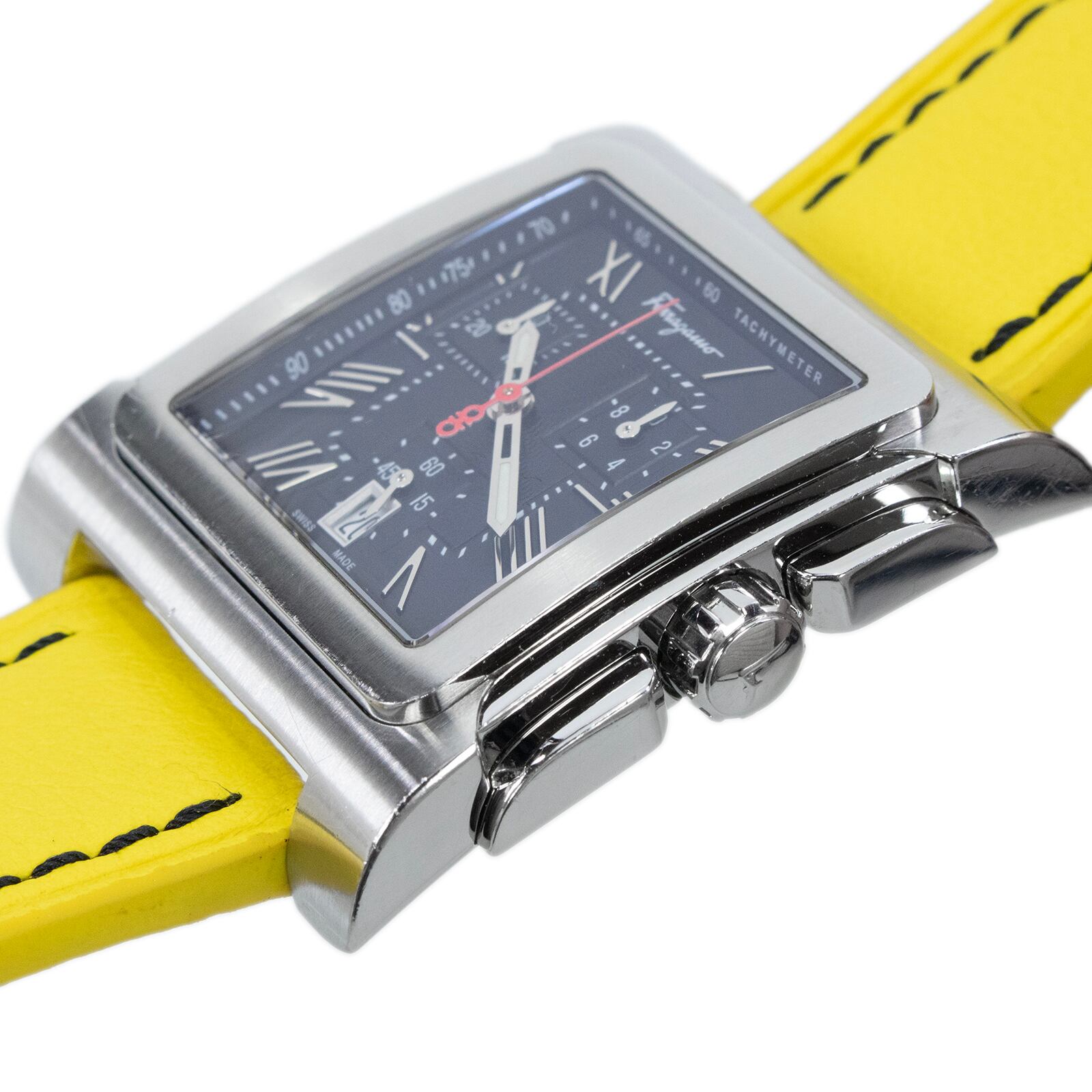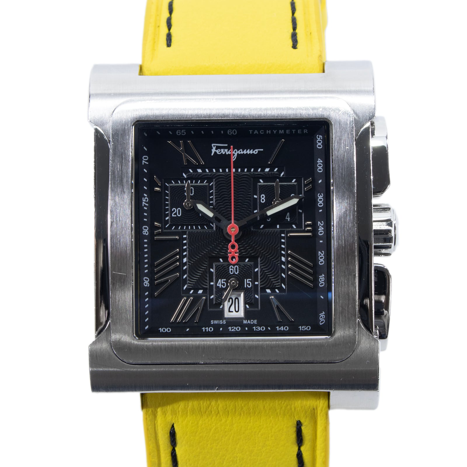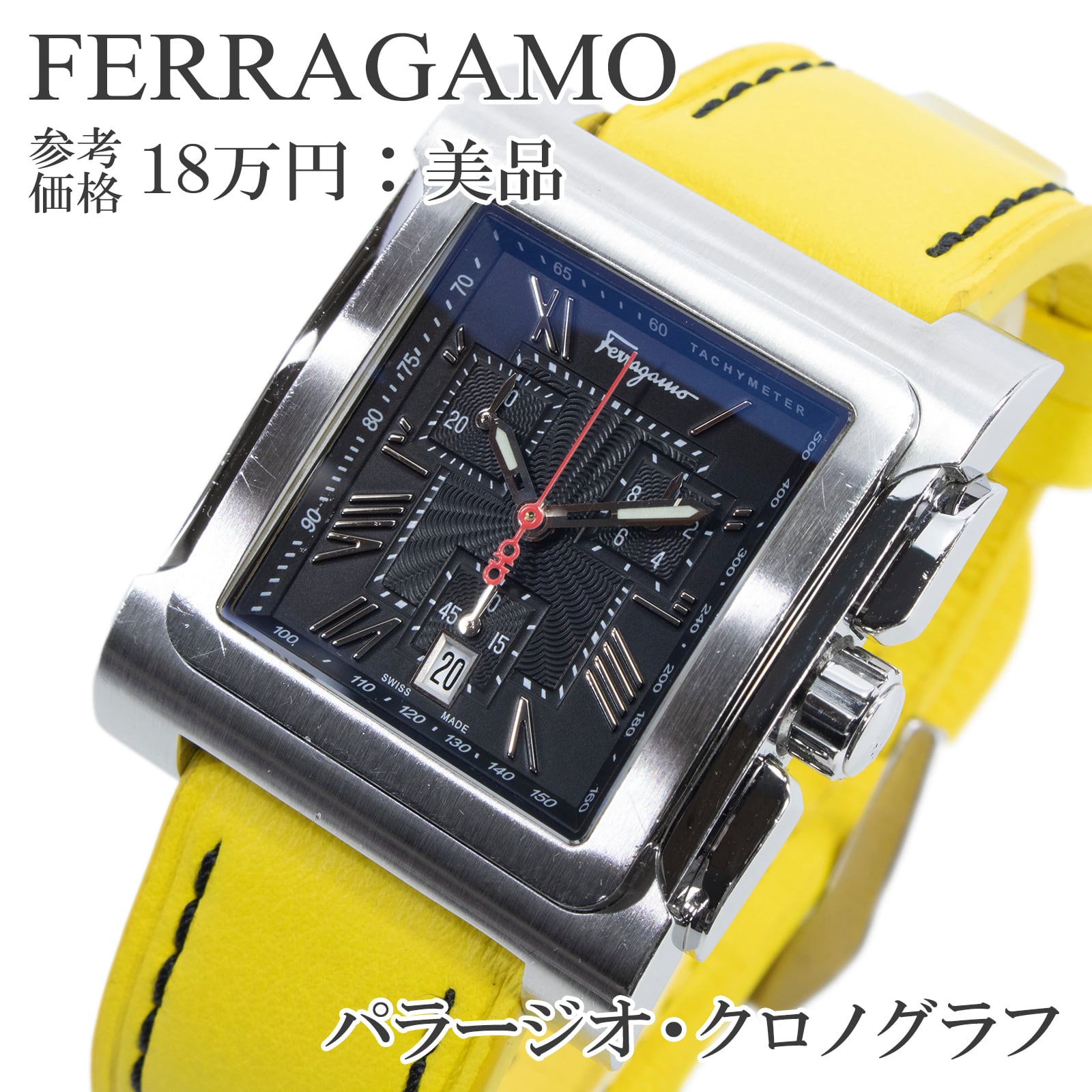 送料無料 フェラガモ 腕時計 メンズ パラージオ F58C F58LCQ9909S009 黒 ブラック 黄色 クロノグラフ スクエア ロゴ ブランド 珍しい Q190