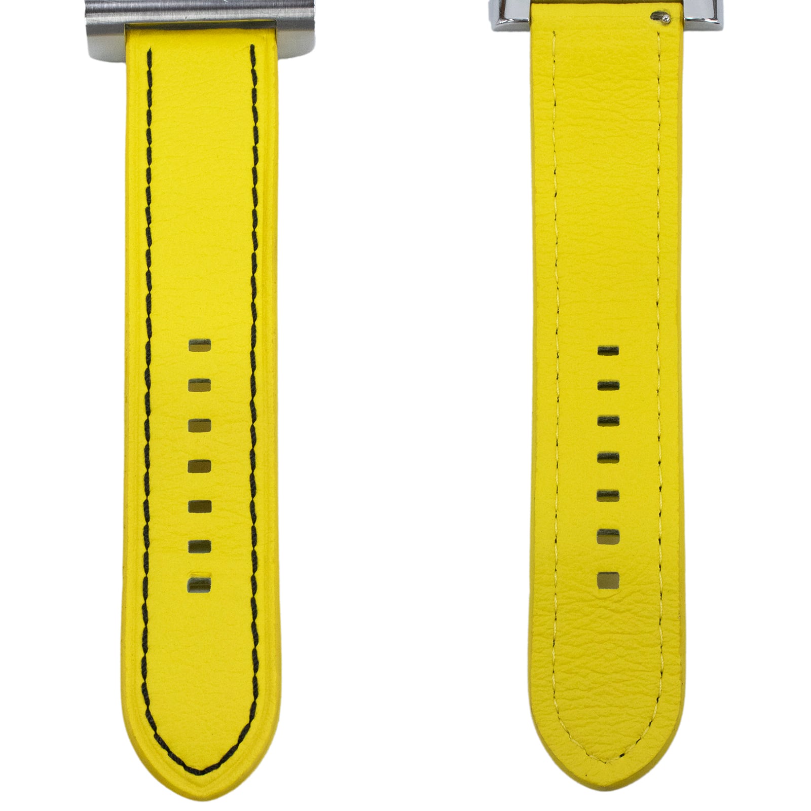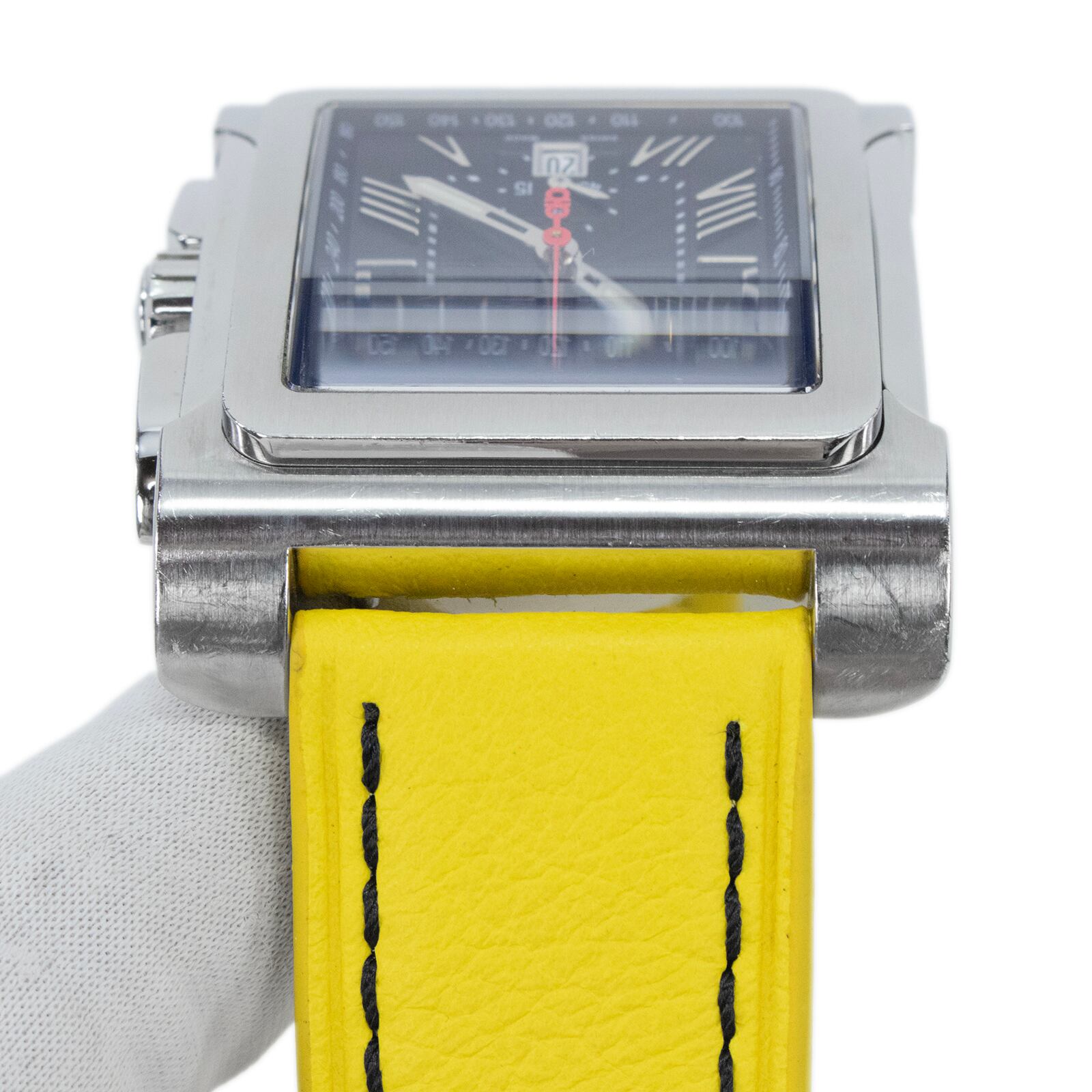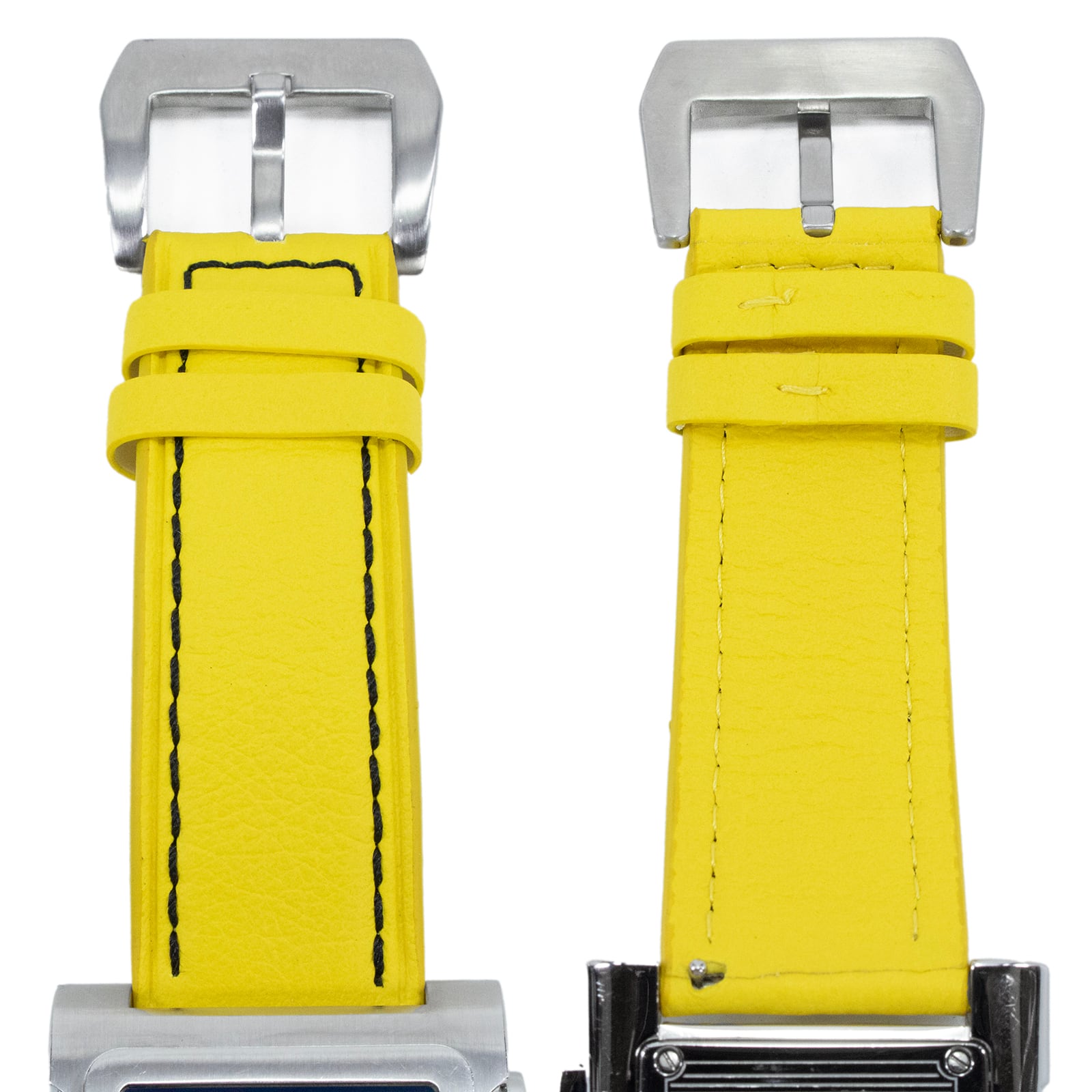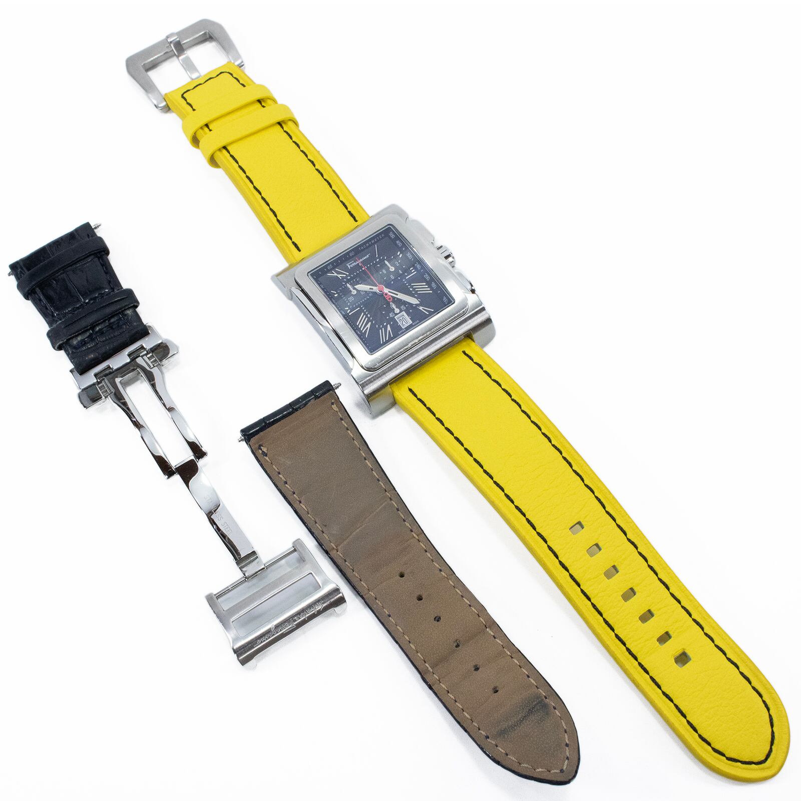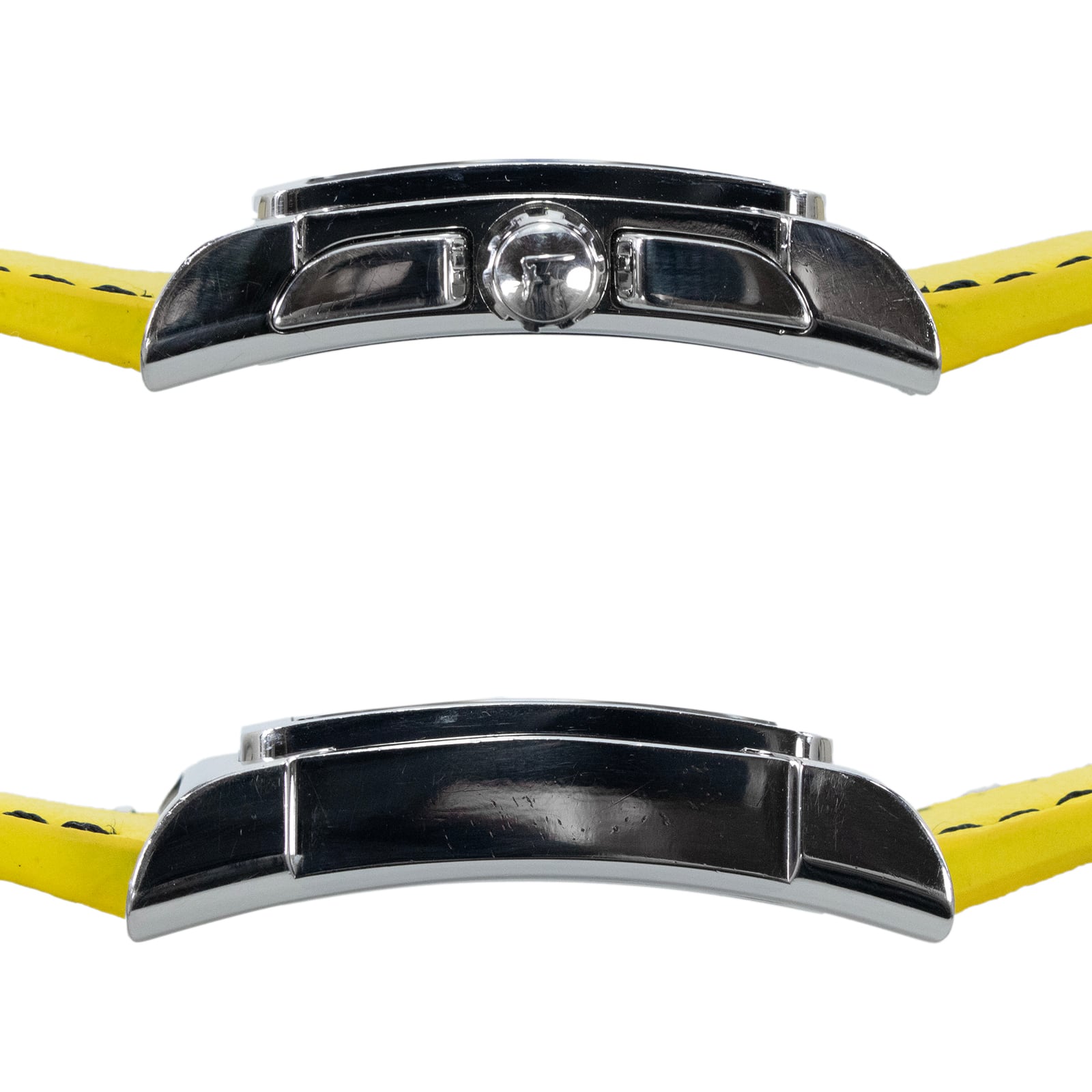 特筆すべきは、スポーティなクロノグラフでありながら、イエローのベルトを合わせることでラグジュアリーな遊び心を演出している点でございます。