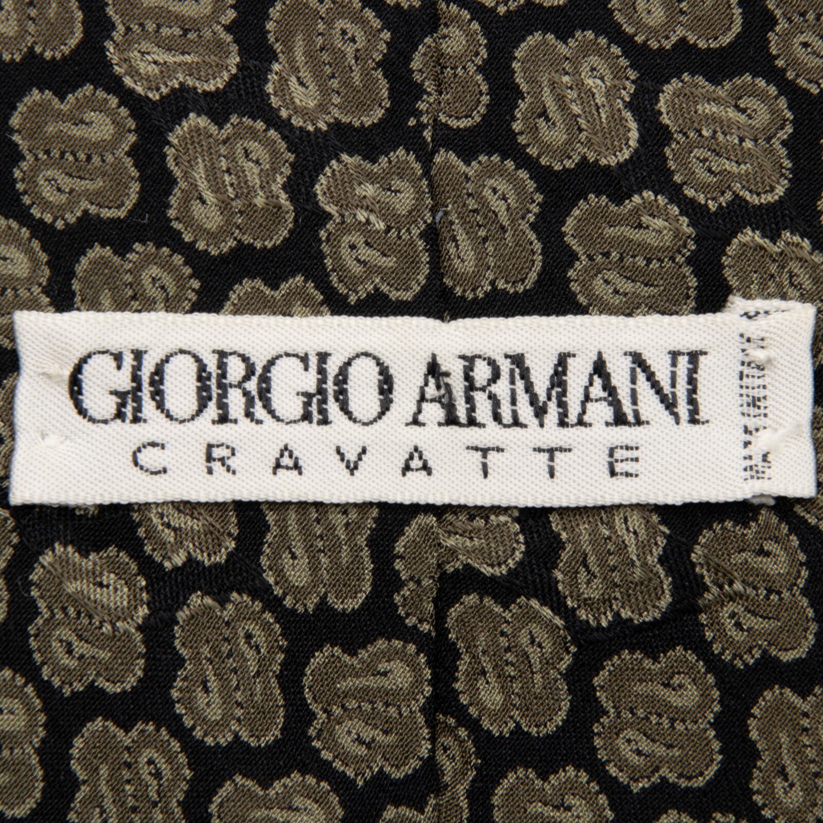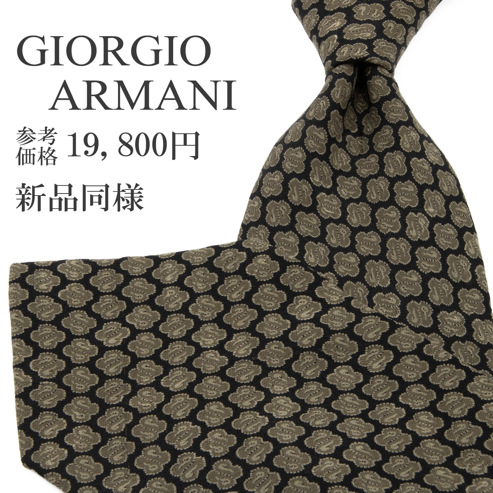 送料無料 ジョルジオアルマーニ ネクタイ レギュラータイ 新品同様 シルク 緑 グリーン 黒 ブラック ビジネス 総柄 Y2K 90s ブランド P487