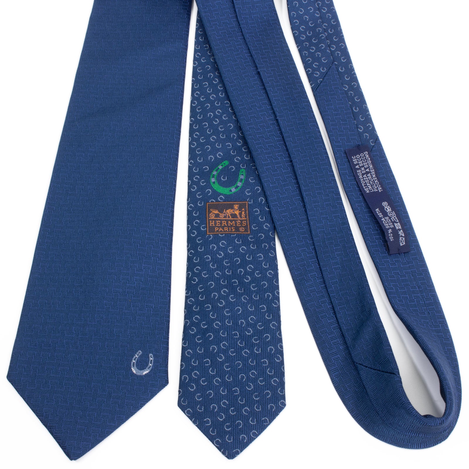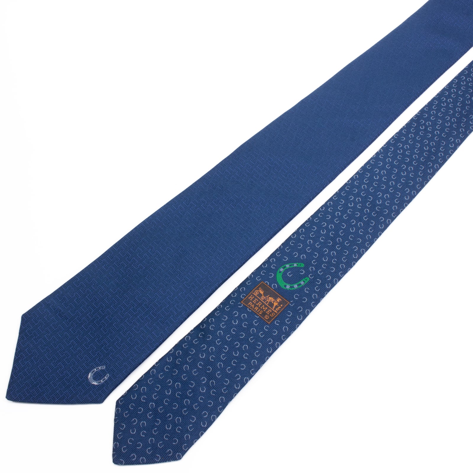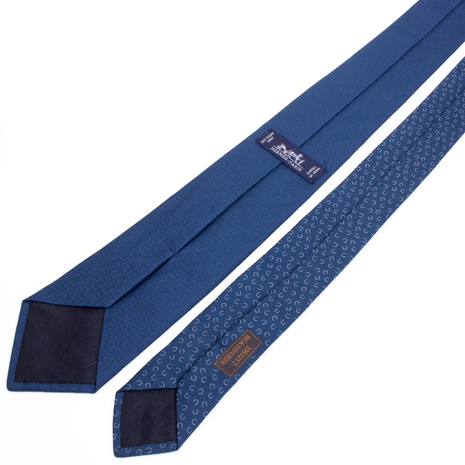 送料無料 エルメス ネクタイ レギュラータイ ジャガードタイ シルク 青 ブルー 白 ビジネス 総柄 Hロゴ マーク 蹄鉄 ブランド 綺麗 S537