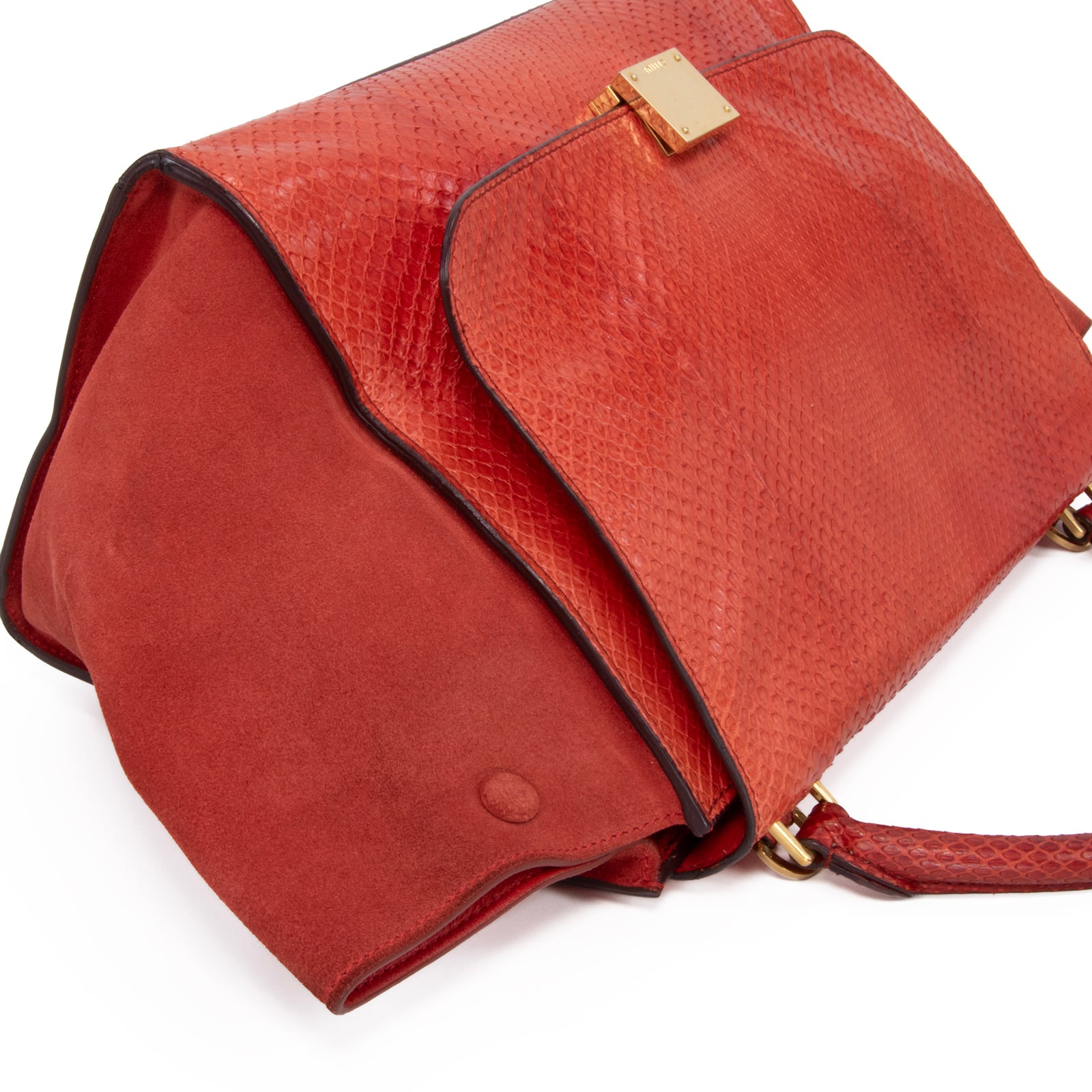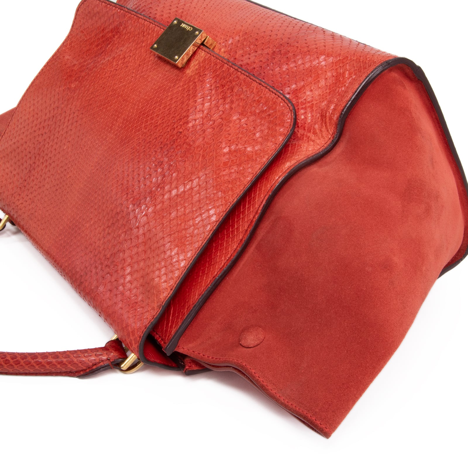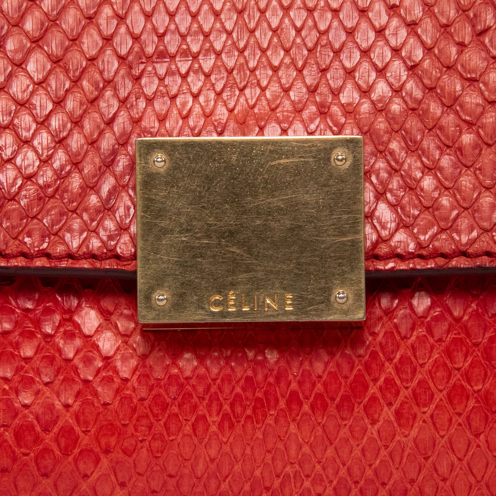 本物 送料無料 セリーヌ 2WAYショルダーバッグ ハンドバッグ レディース パイソン トラペーズ 赤 レッド 蛇革 肩掛け ロゴ 鞄 バック A861