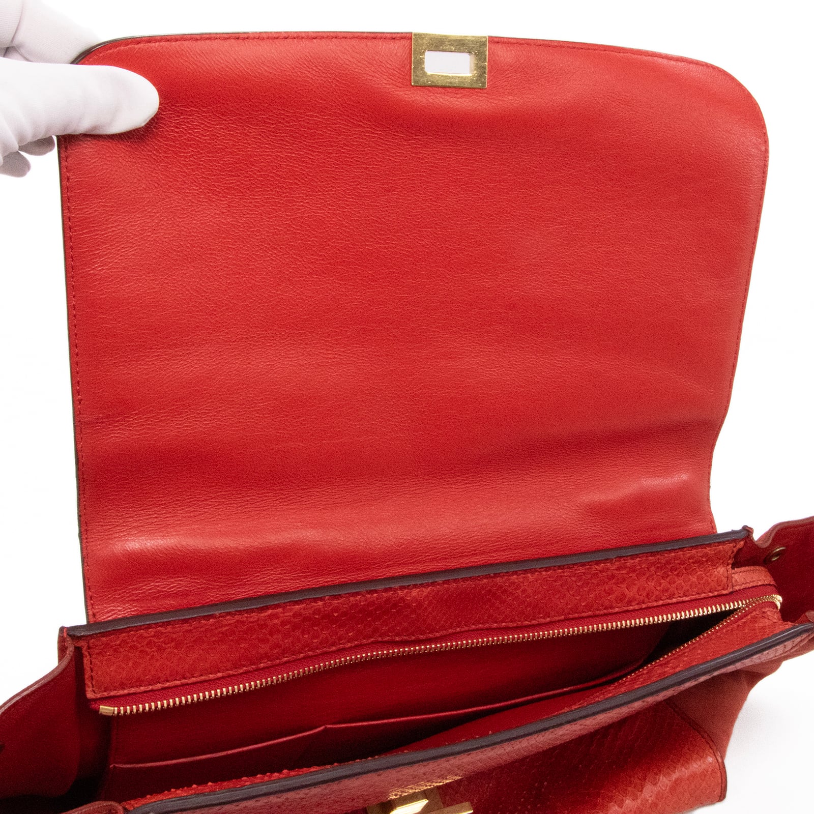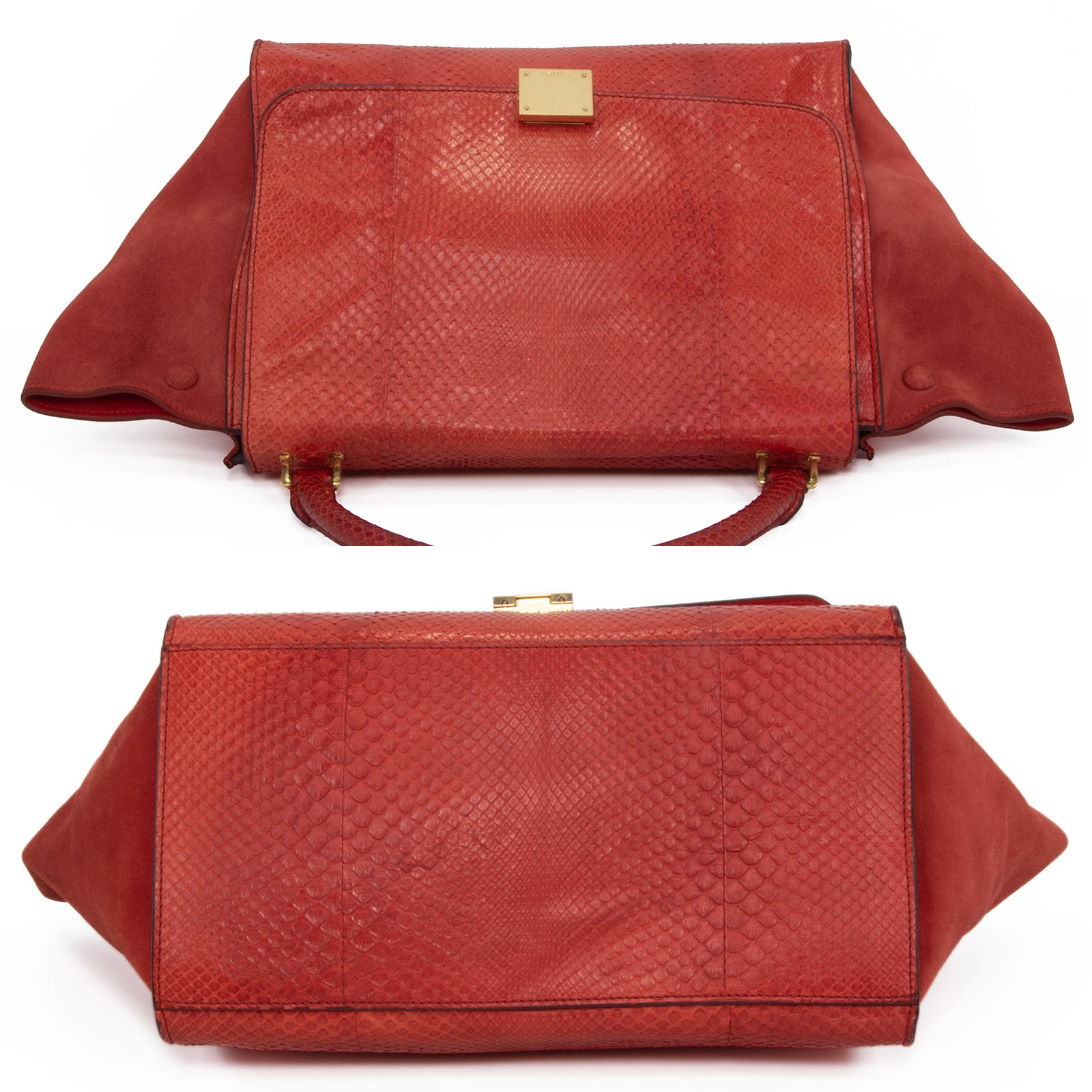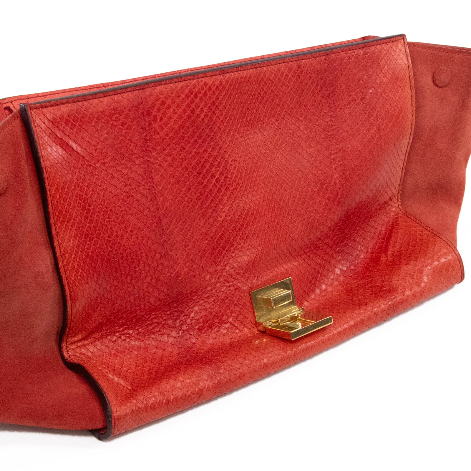 本物 送料無料 セリーヌ 2WAYショルダーバッグ ハンドバッグ レディース パイソン トラペーズ 赤 レッド 蛇革 肩掛け ロゴ 鞄 バック A861