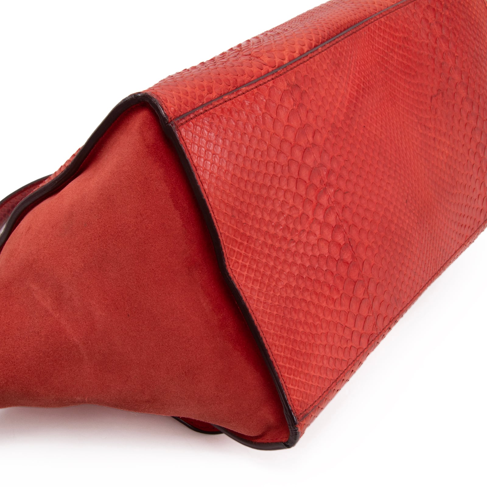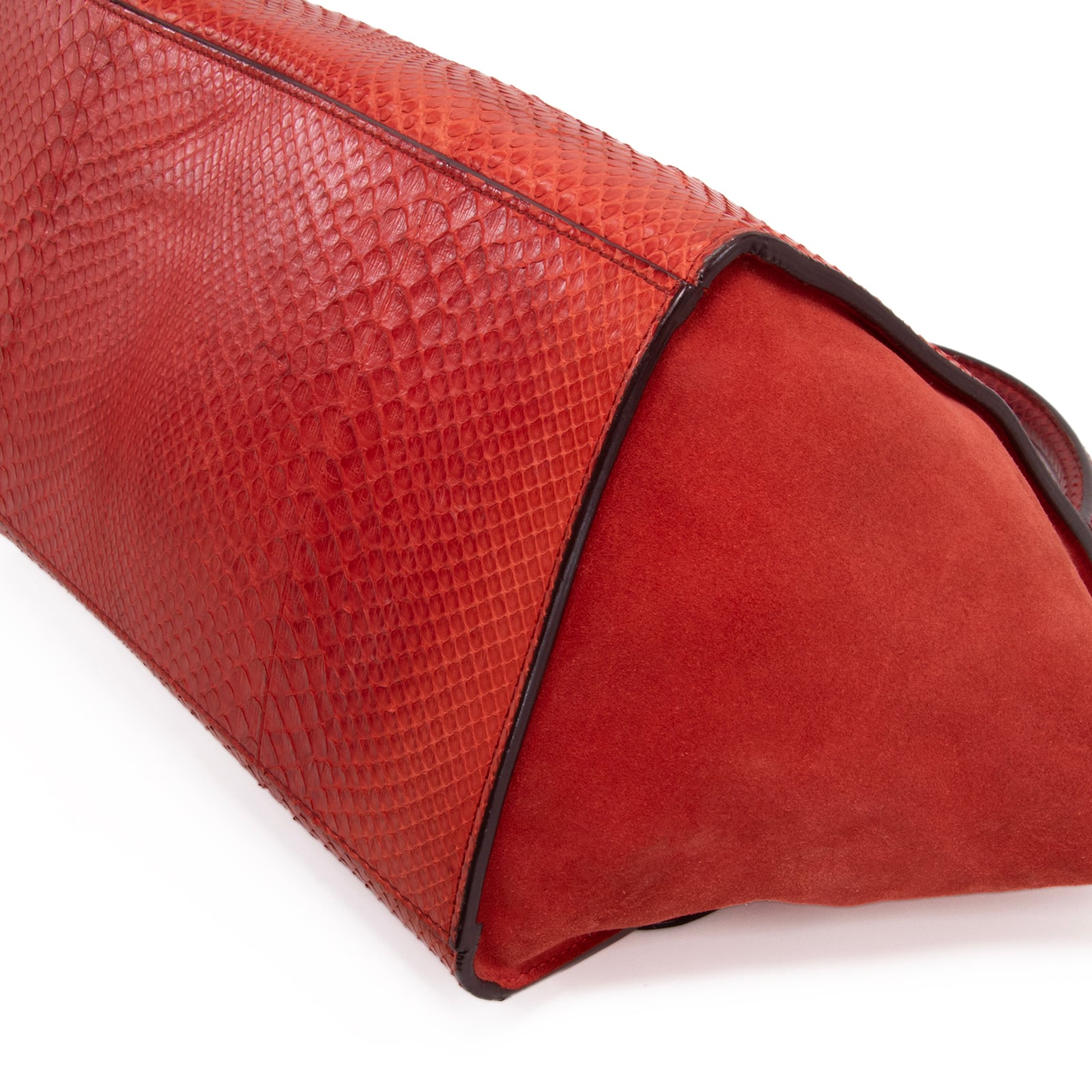 滑らかなスエードとパイソンの質感が織りなすコントラストは素晴らしく、手にするたびに所有する喜びを感じていただけることと存じます。