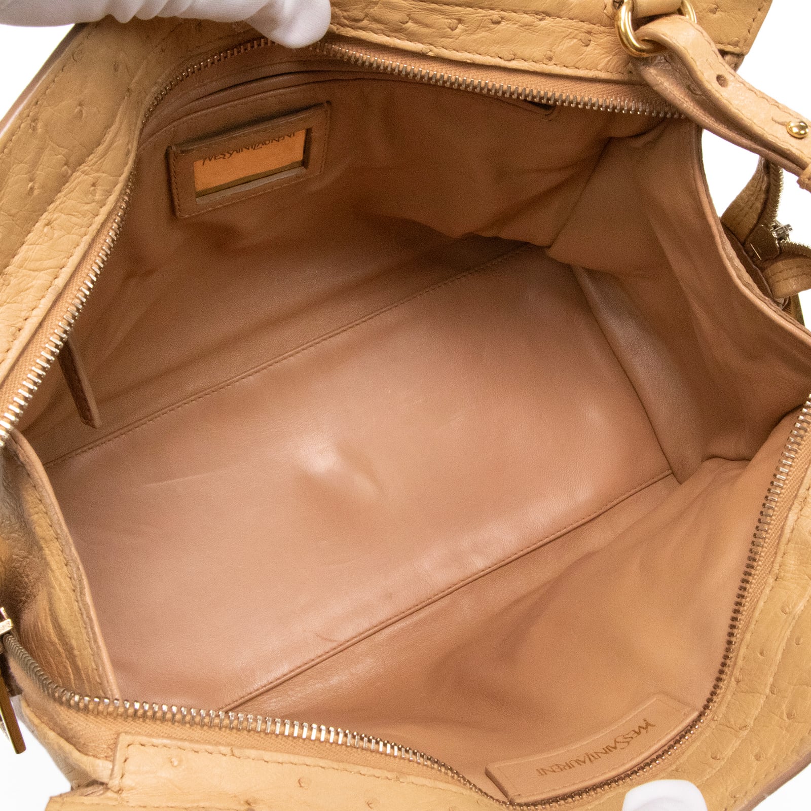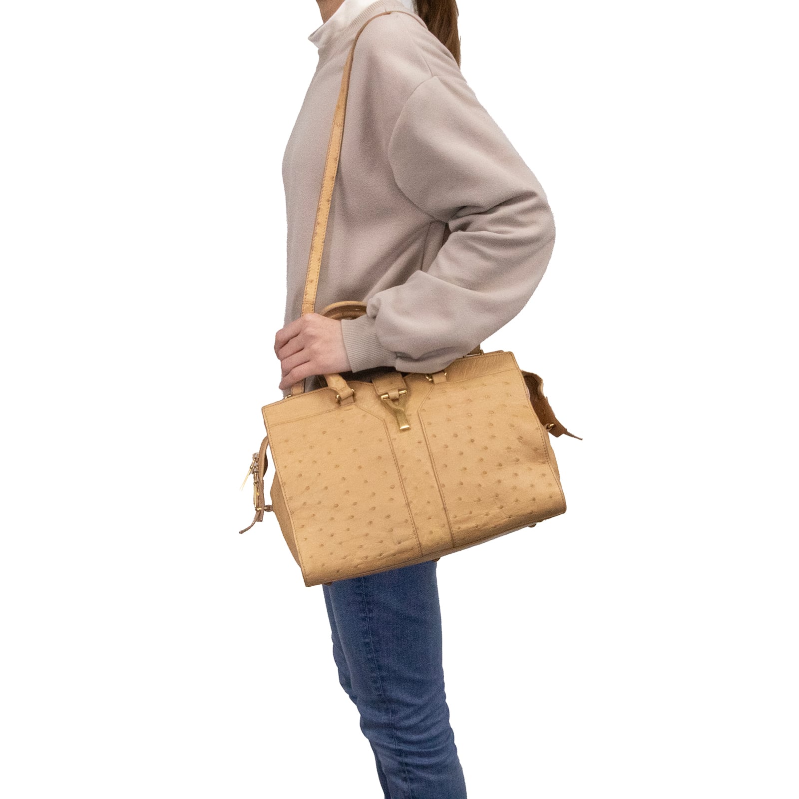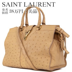 本物 送料無料 サンローラン 2WAYショルダーバッグ メンズ レディース オーストリッチ カバス シック ベージュ 肩掛け ロゴ 鞄 バック A863