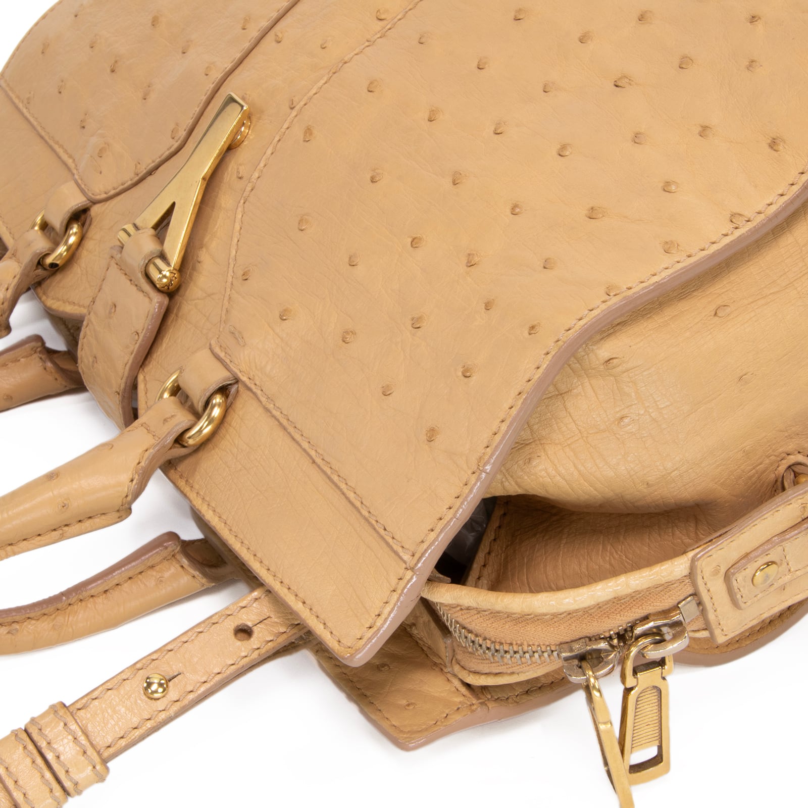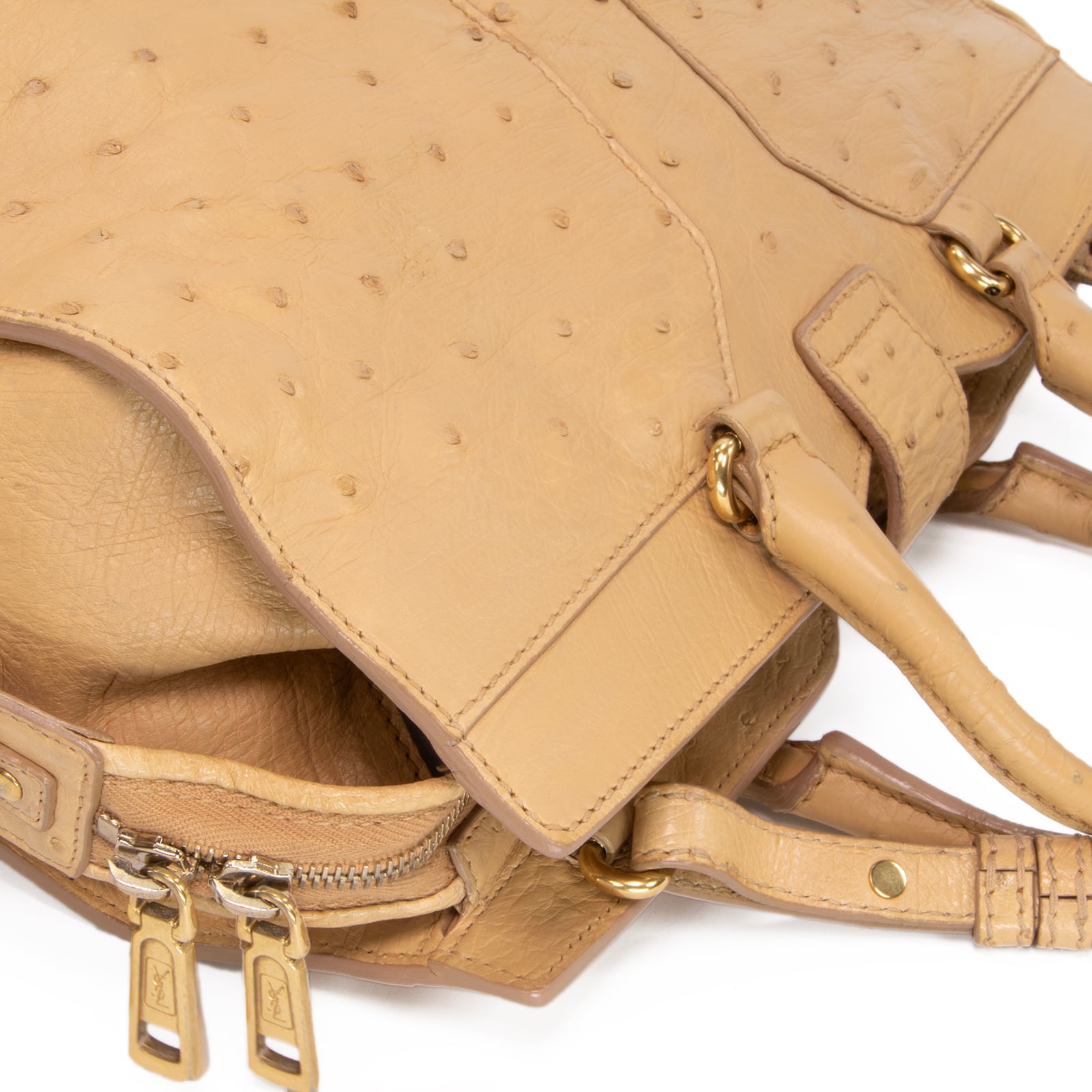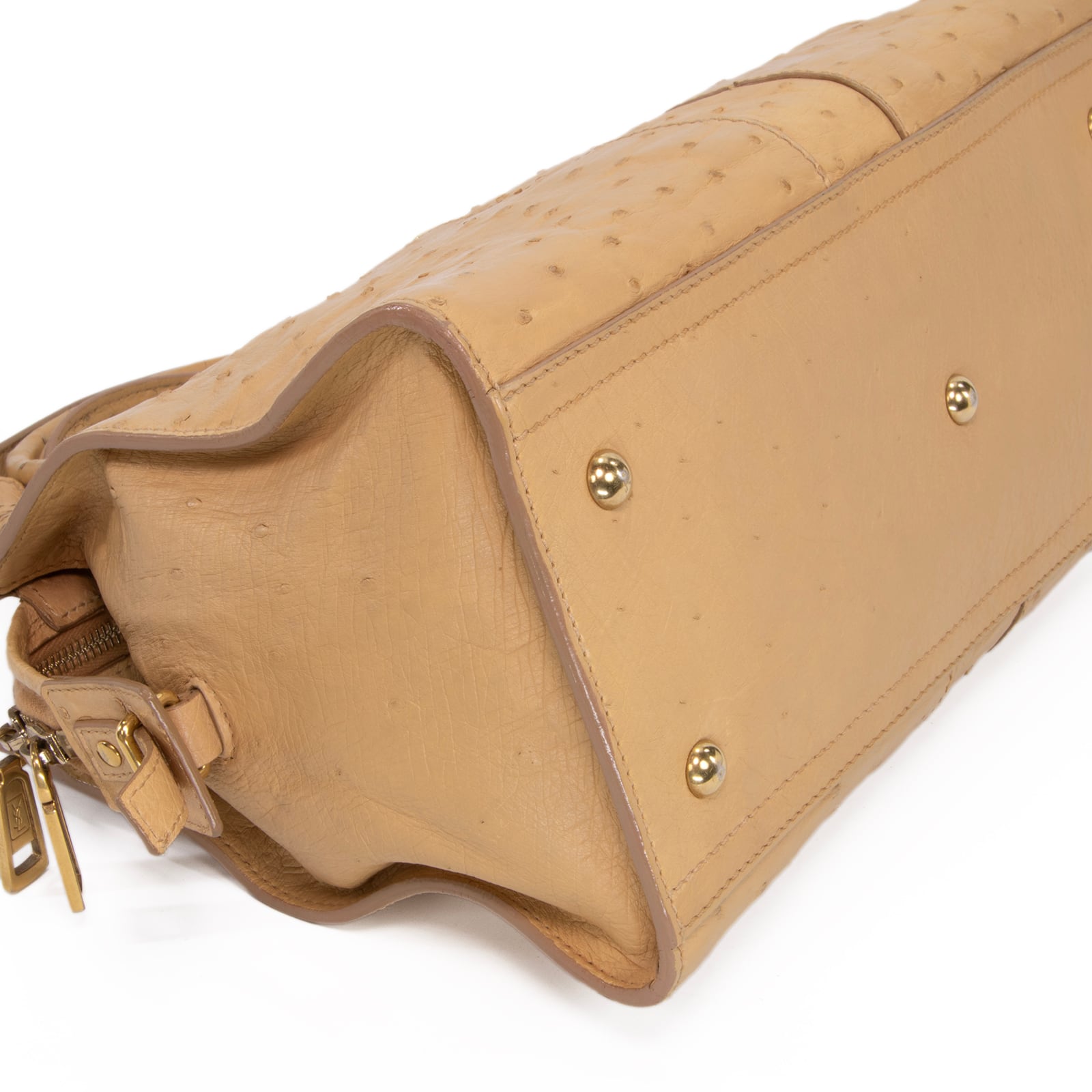 特徴:珍しい・最高級・ダチョウの本革・エキゾチックレザー・肩掛け・自立可能・YSLロゴ・マーク・ゴールド金具・ハイブランド・おしゃれ