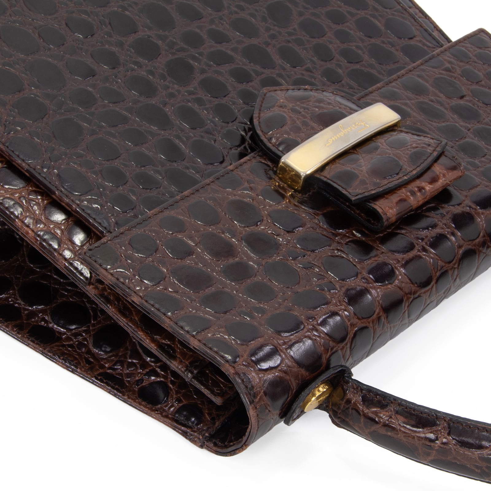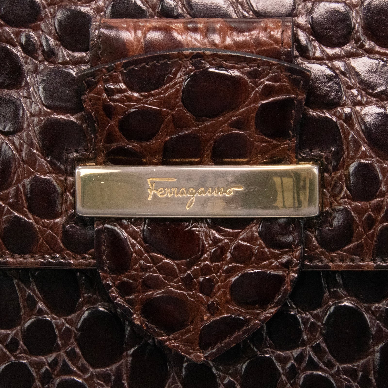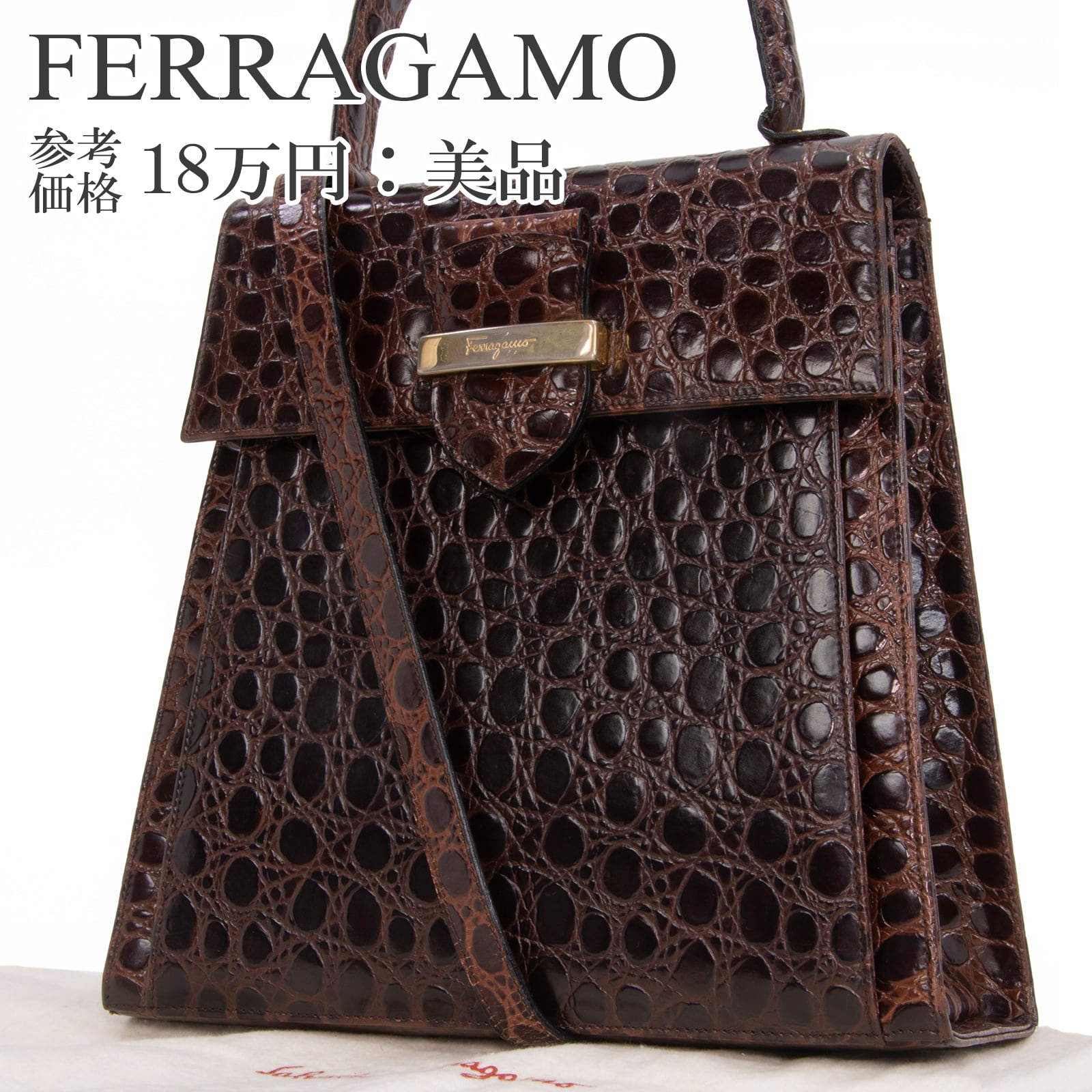 本物 送料無料 フェラガモ 2WAYショルダーバッグ ハンドバッグ レディース クロコ型押しレザー 茶色 斜め掛け ワニ柄 ロゴ 鞄 バック E437
