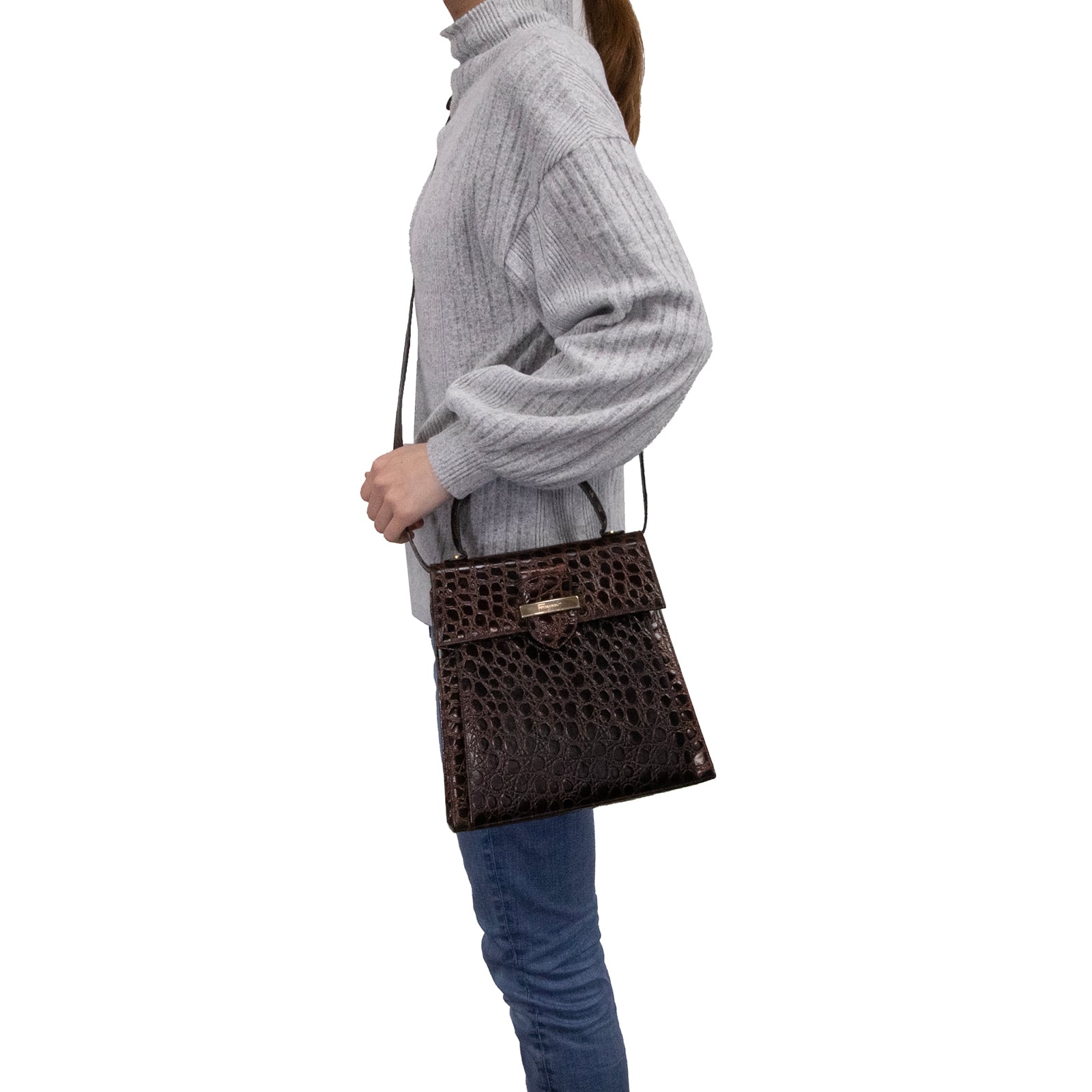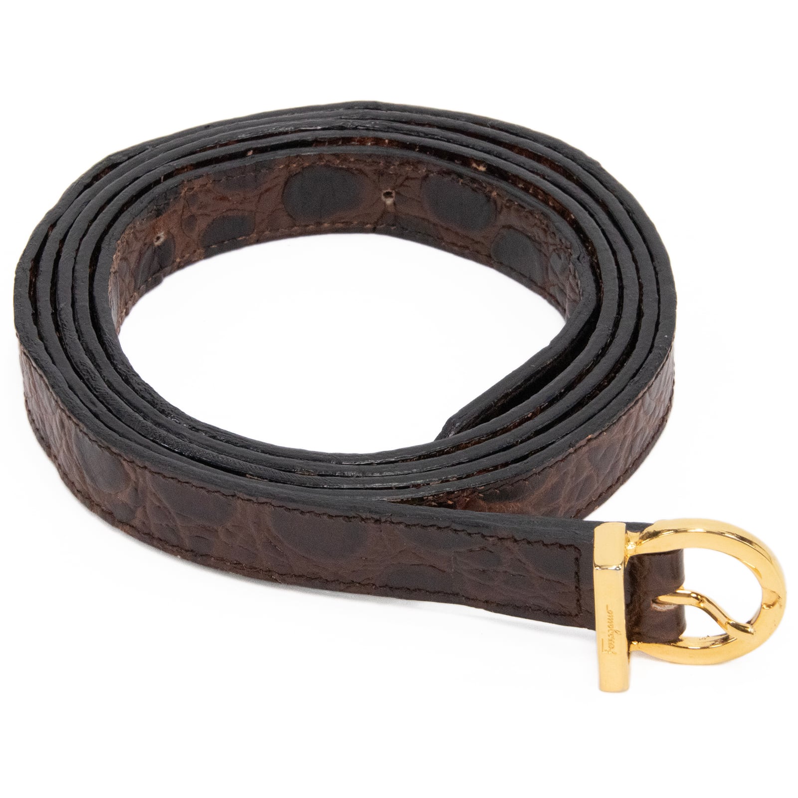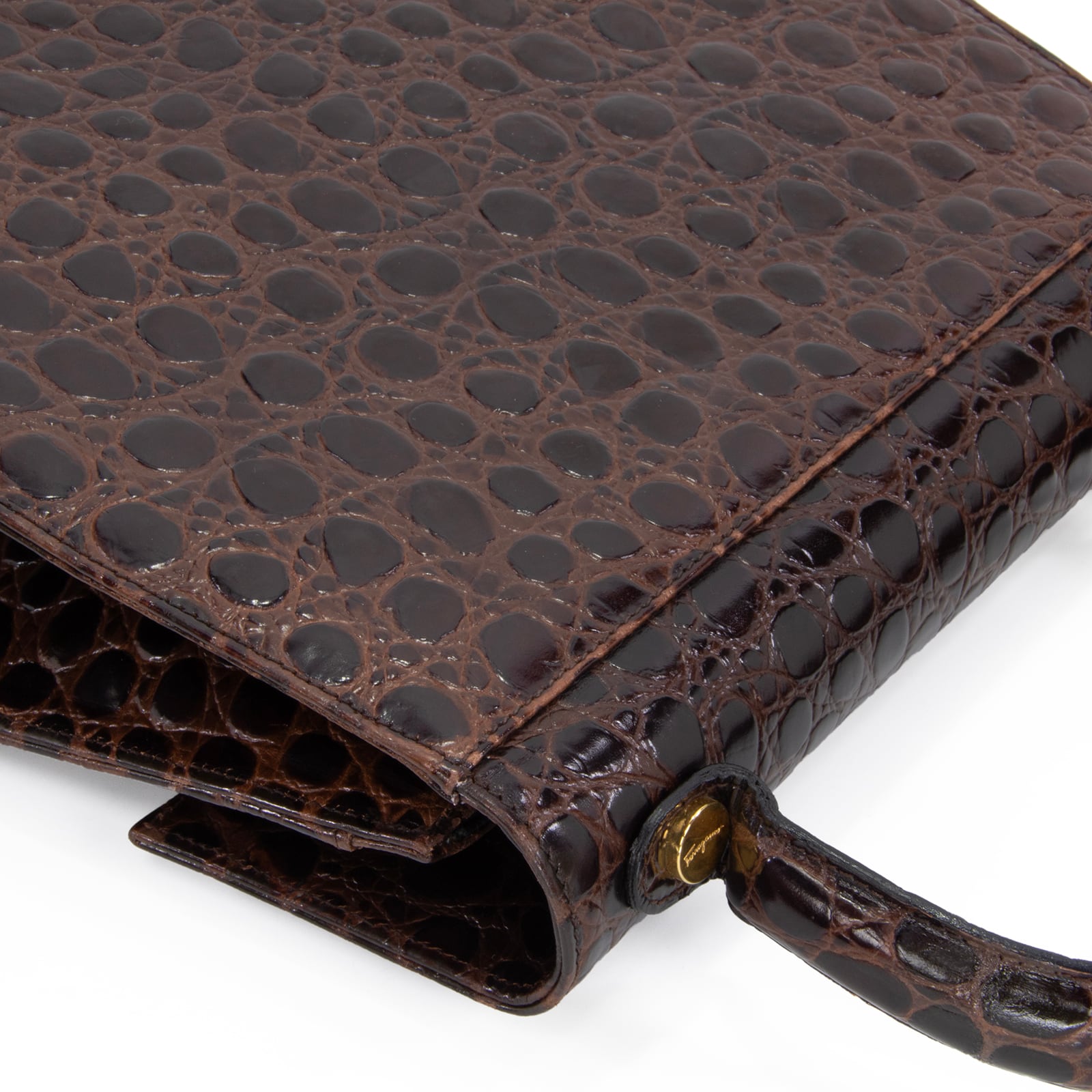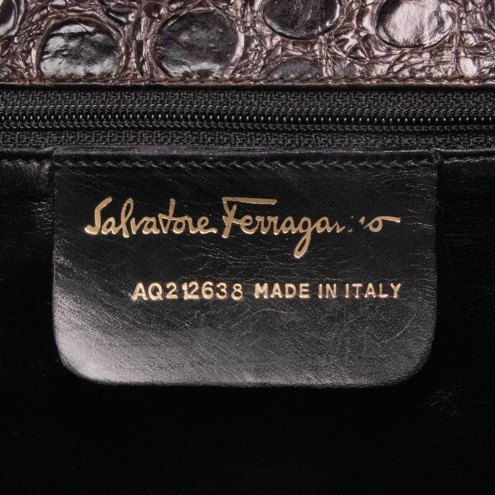本物 送料無料 フェラガモ 2WAYショルダーバッグ ハンドバッグ レディース クロコ型押しレザー 茶色 斜め掛け ワニ柄 ロゴ 鞄 バック E437