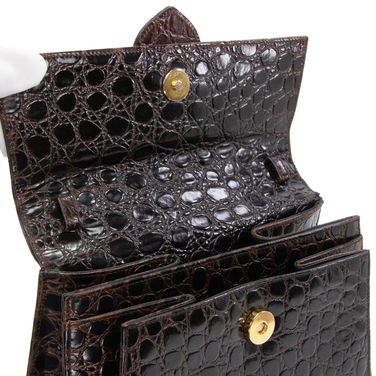 特徴:珍しい・レアモデル・肩掛け・斜め掛け・自立可能・かっちり・小さめ・ワニ柄・ロゴ・マーク・本革・レザー・ゴールド金具・ハイブランド・おしゃれ