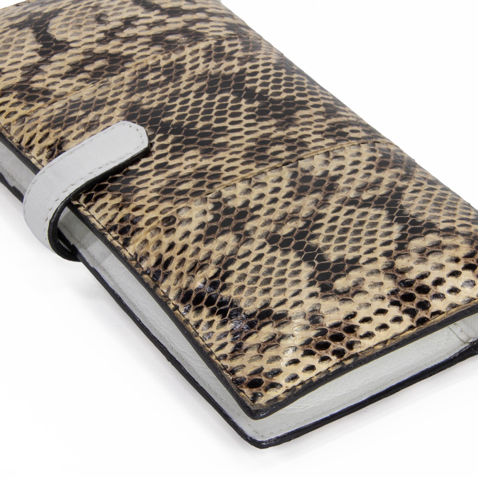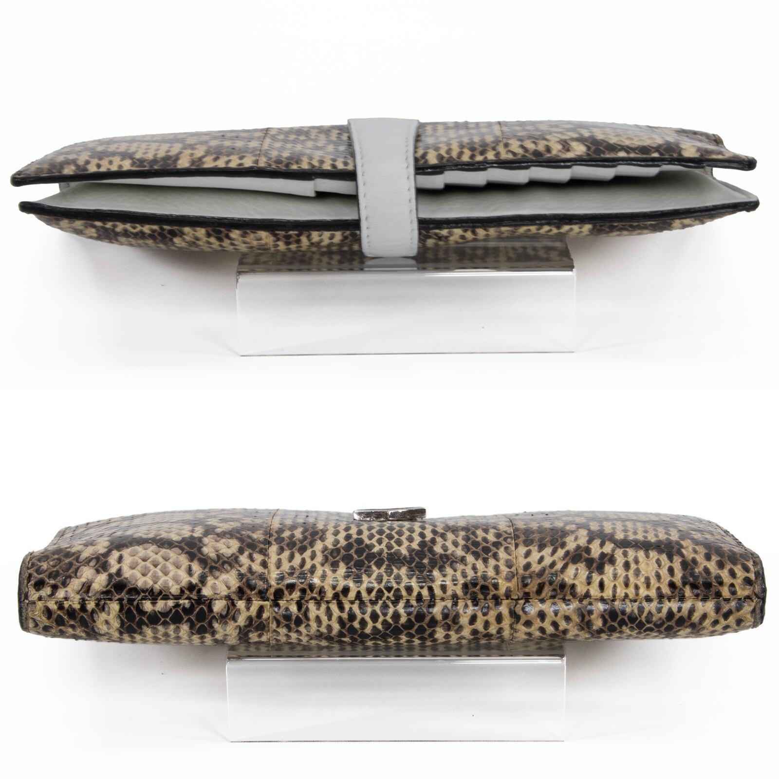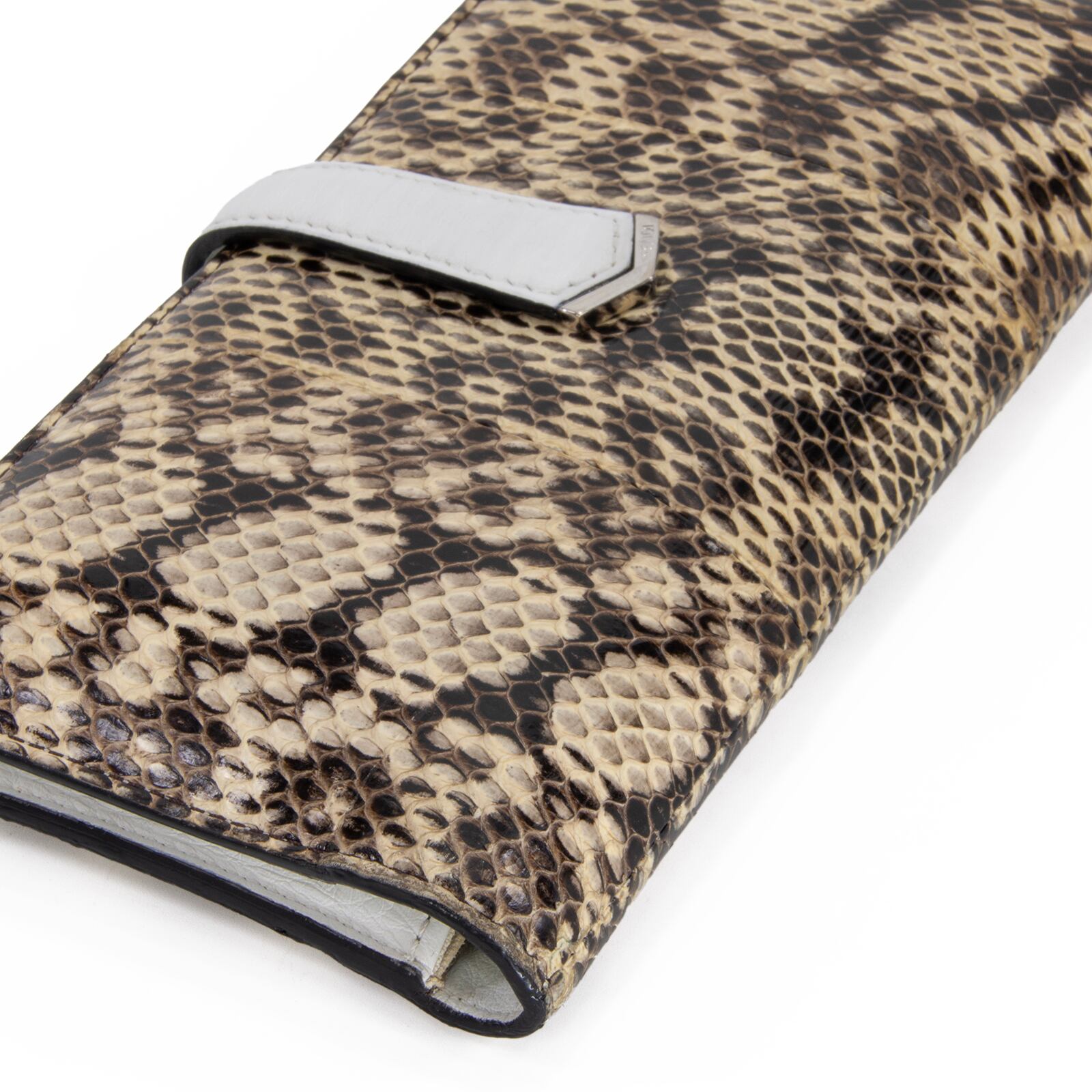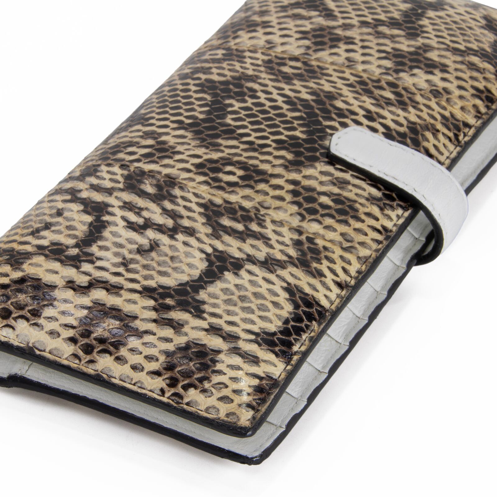 希少なパイソンレザーを贅沢に使用しており、一点一点異なる鱗の表情が、持つ方の手元で圧倒的な存在感を放ちます。