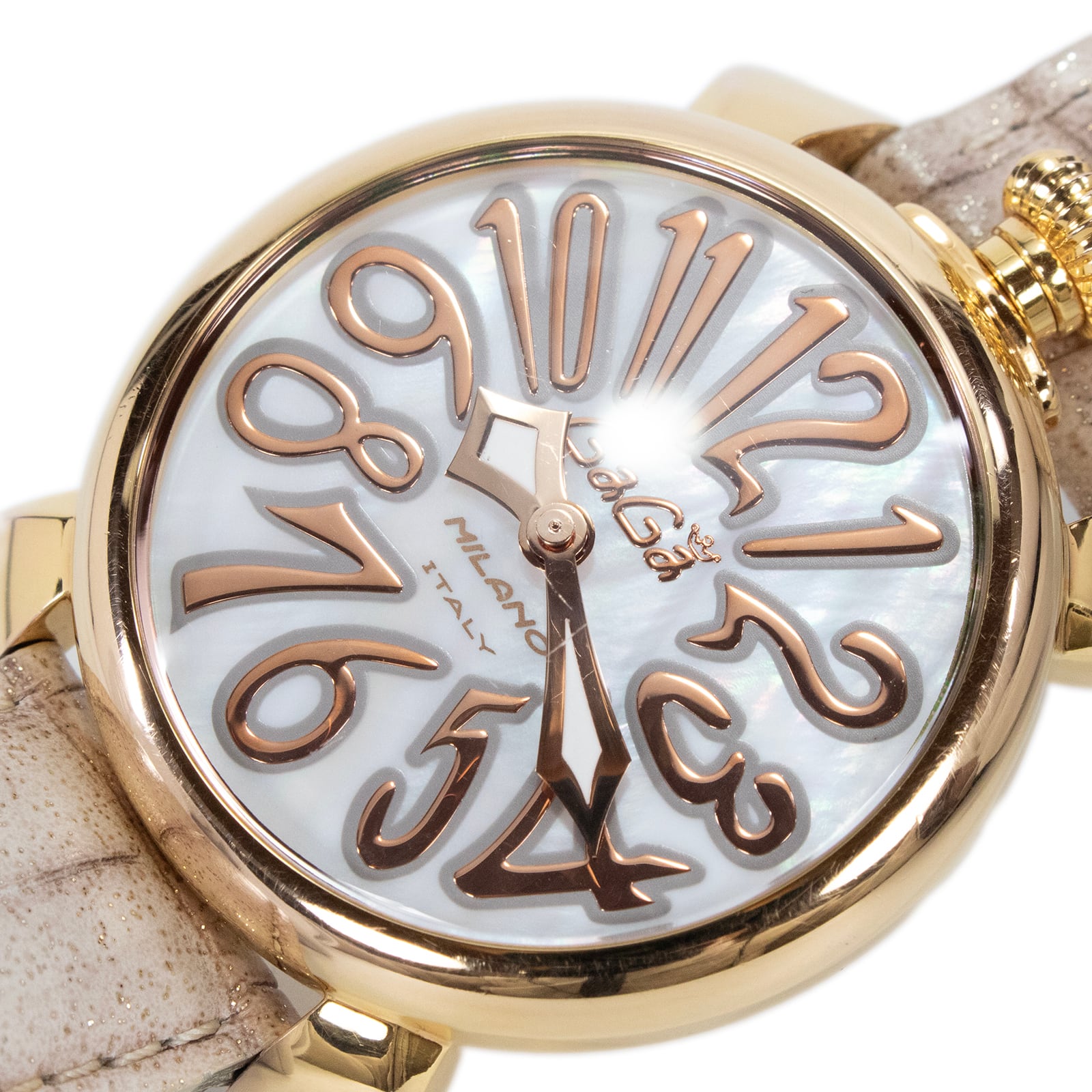 送料無料 ガガミラノ 腕時計 レディース マヌアーレ40mm スターダスト 白 ピンクゴールド イエローゴールド シェル盤 ロゴ ブランド X432