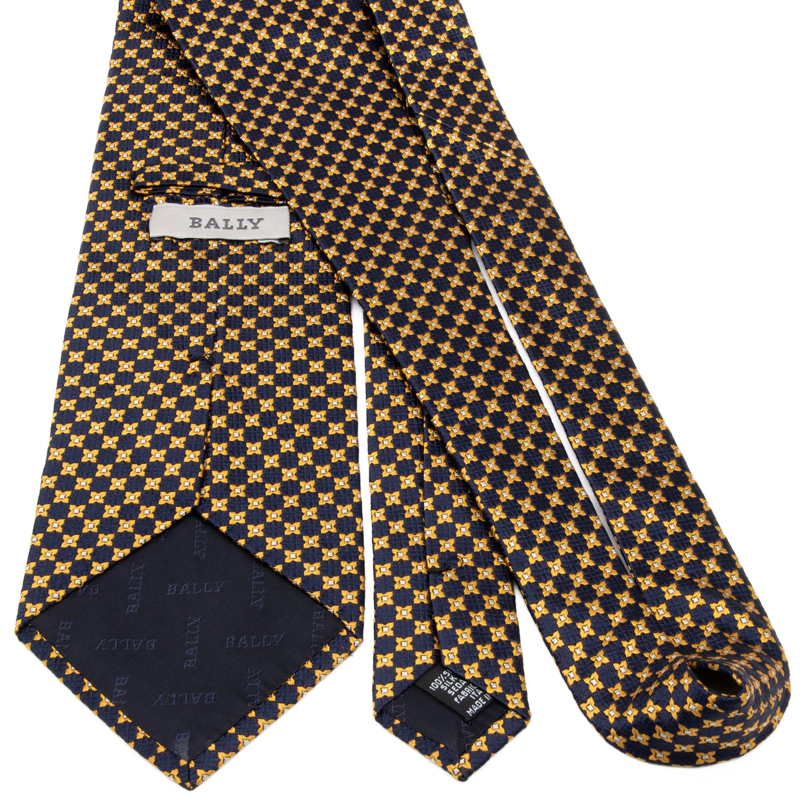 送料無料 バリー ネクタイ ジャガードタイ 新品同様 シルク ネイビーブルー ゴールド シルバー 総柄 光沢 花 ブランド イタリア 綺麗 P370
