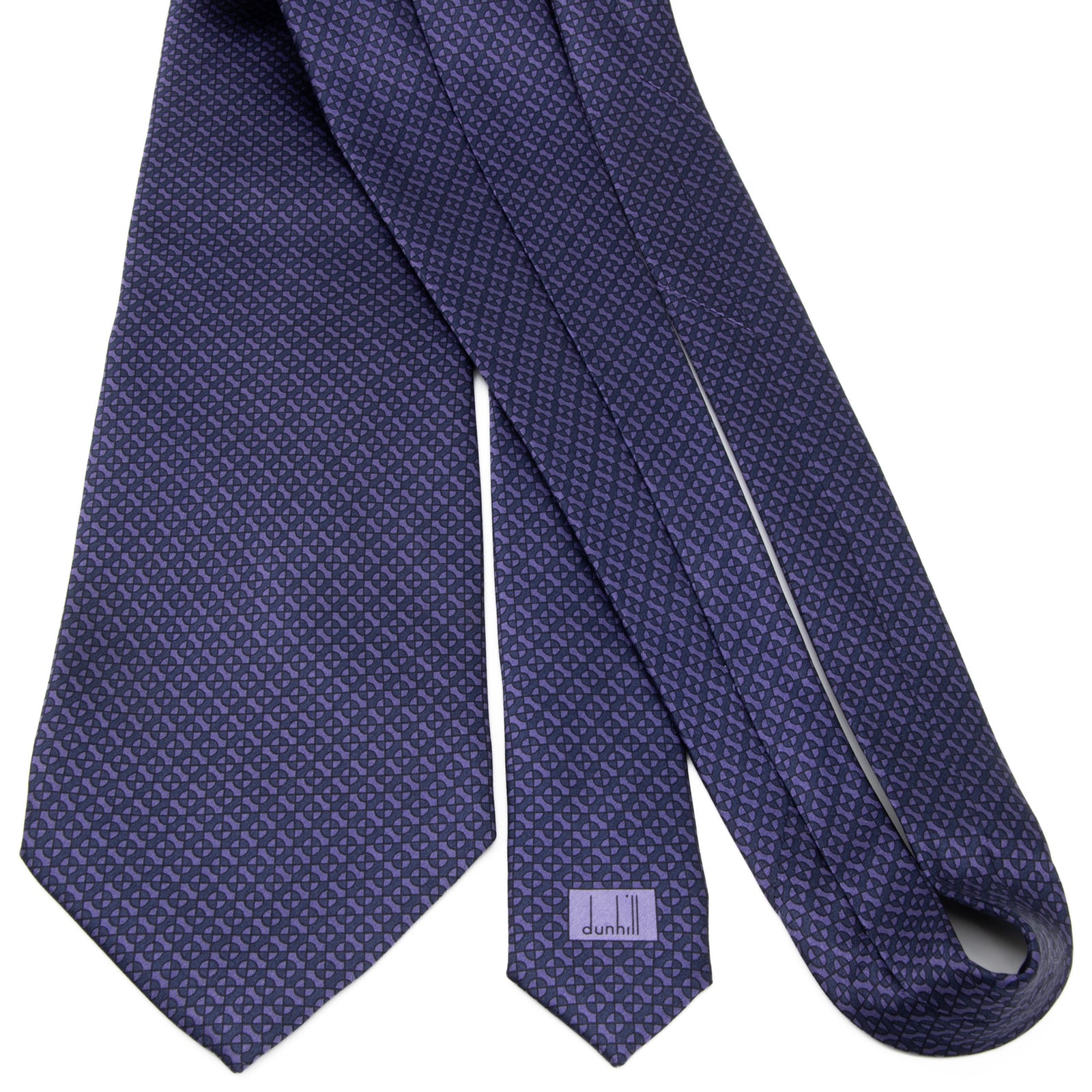 送料無料 ダンヒル ネクタイ 新品同様 シルク ネイビーブルー 青 ビジネス カジュアル 総柄 光沢 幾何学模様 ブランド イタリア 綺麗 P619