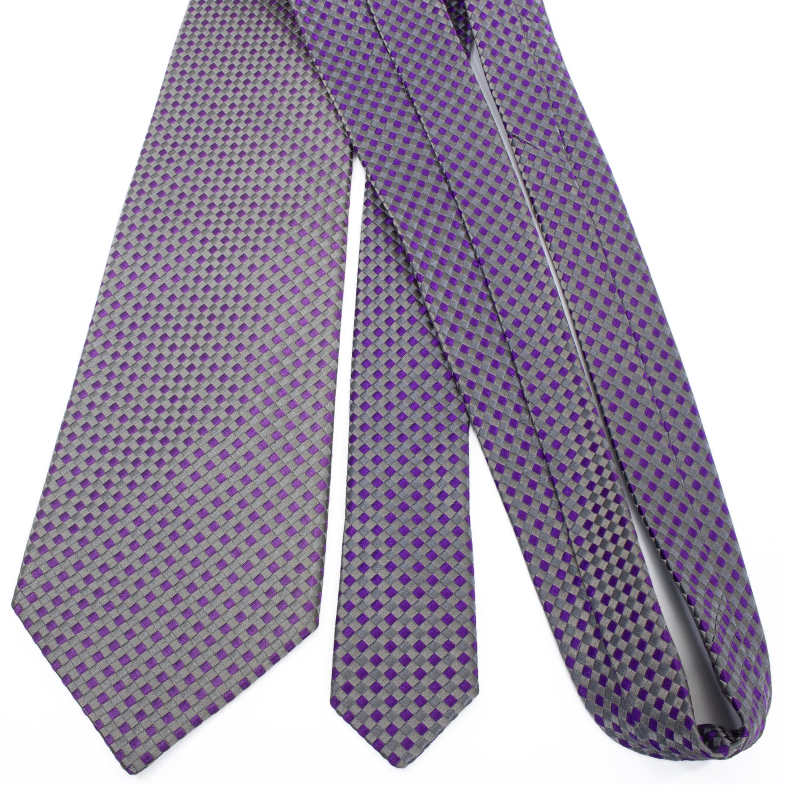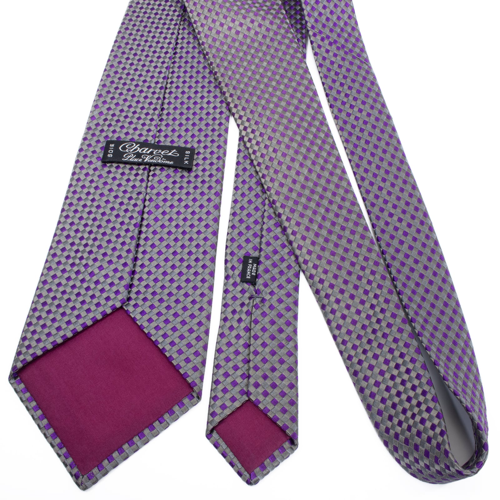 送料無料 シャルベ ネクタイ ジャガードタイ シルク シルバー 紫 パープル ビジネス カジュアル 光沢 四角 シンプル ブランド 綺麗 S542