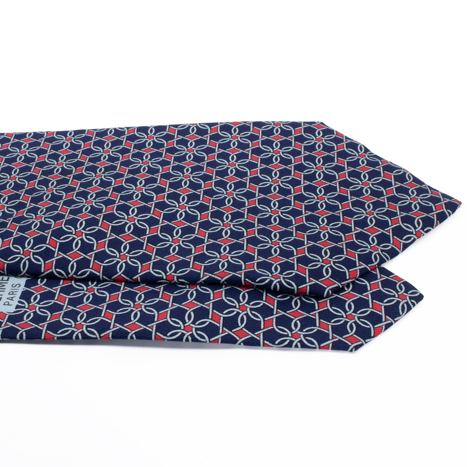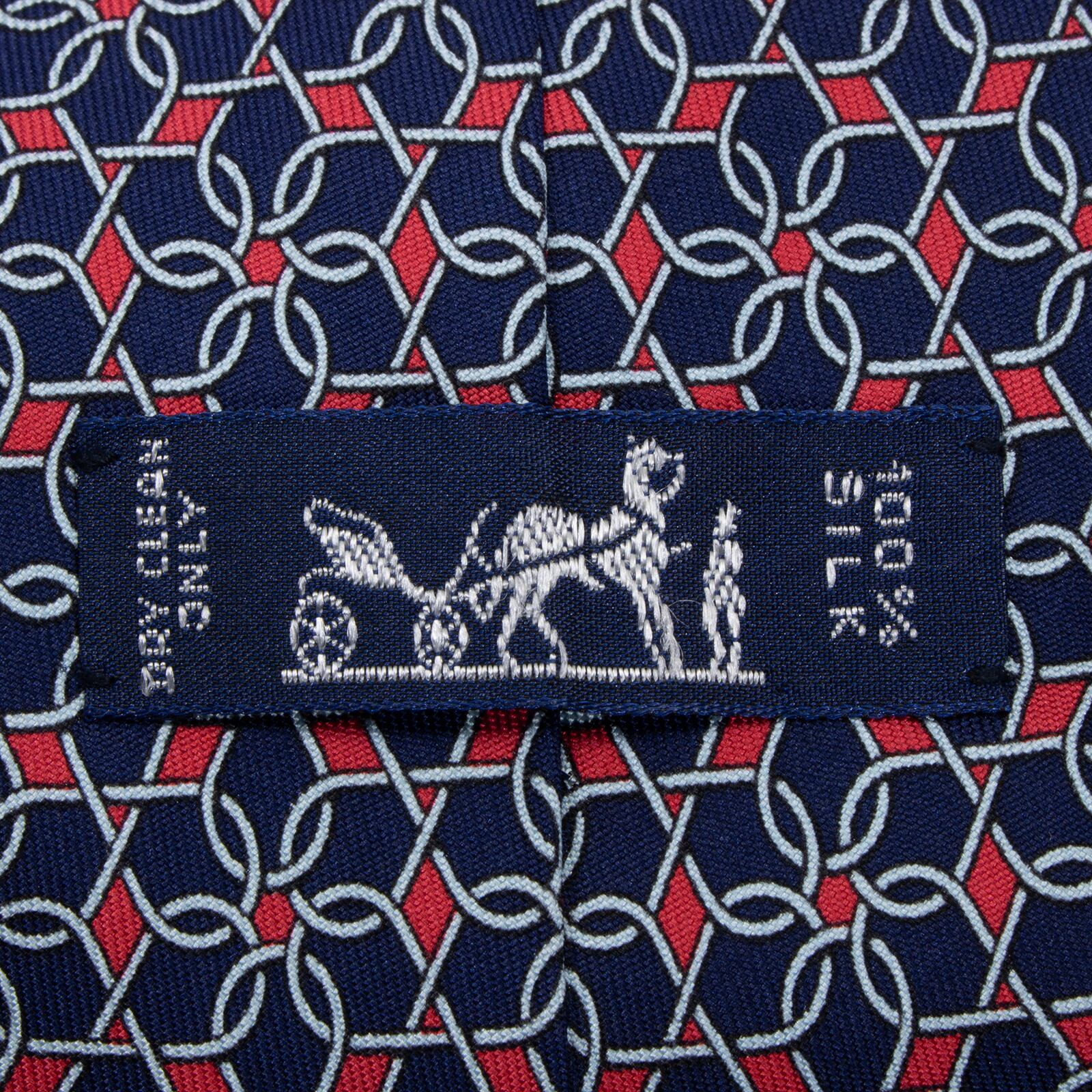 送料無料 エルメス ネクタイ シルク ネイビーブルー 赤 レッド グレー ビジネス カジュアル 総柄 Y2K 00s ブランド フランス製 綺麗 S545
