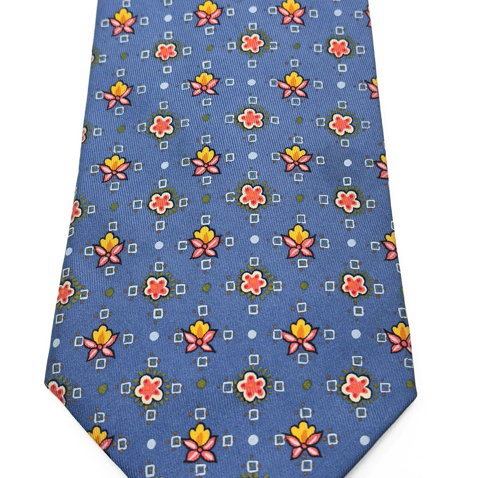 送料無料 エルメス ネクタイ シルク 青 ブルー 赤 レッド 橙色 オレンジ 水色 白 総柄 ドット 花 フラワー ブランド フランス製 綺麗 S546