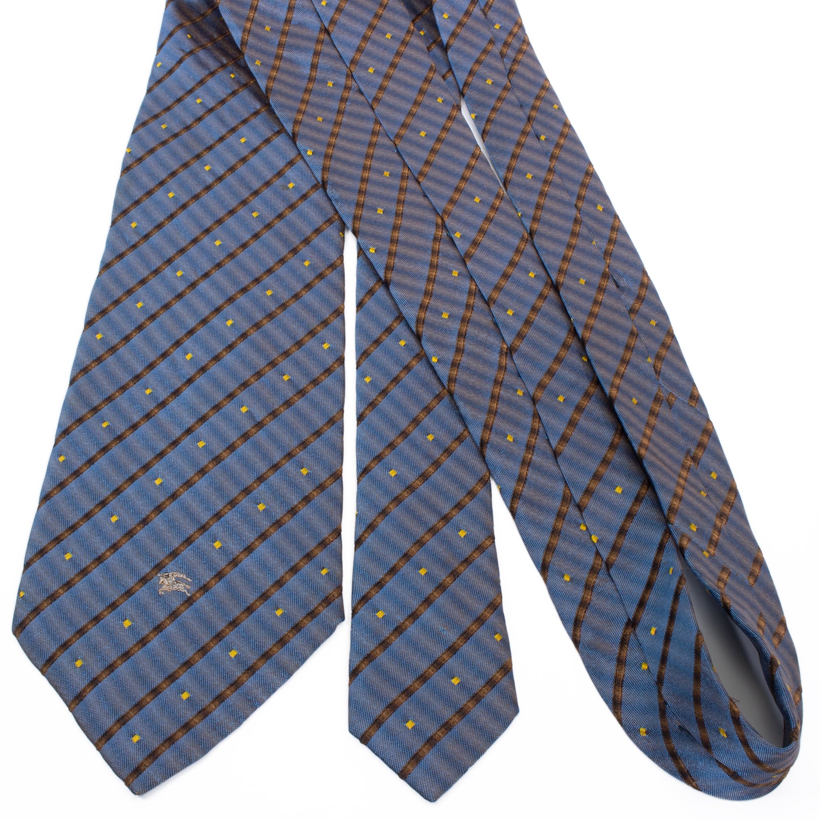 送料無料 バーバリー ネクタイ ジャガード 新品同様 青 ブルー 茶色 ゴールド ストライプ ドット 光沢 ホースロゴ マーク ブランド S547