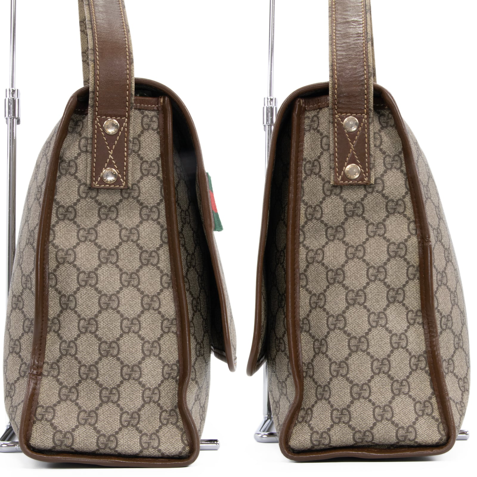 こちらは、伝統的なGG柄と緑赤のリボンが魅力を放つような、グッチのウェビングライン・メッセンジャーバッグでございます。