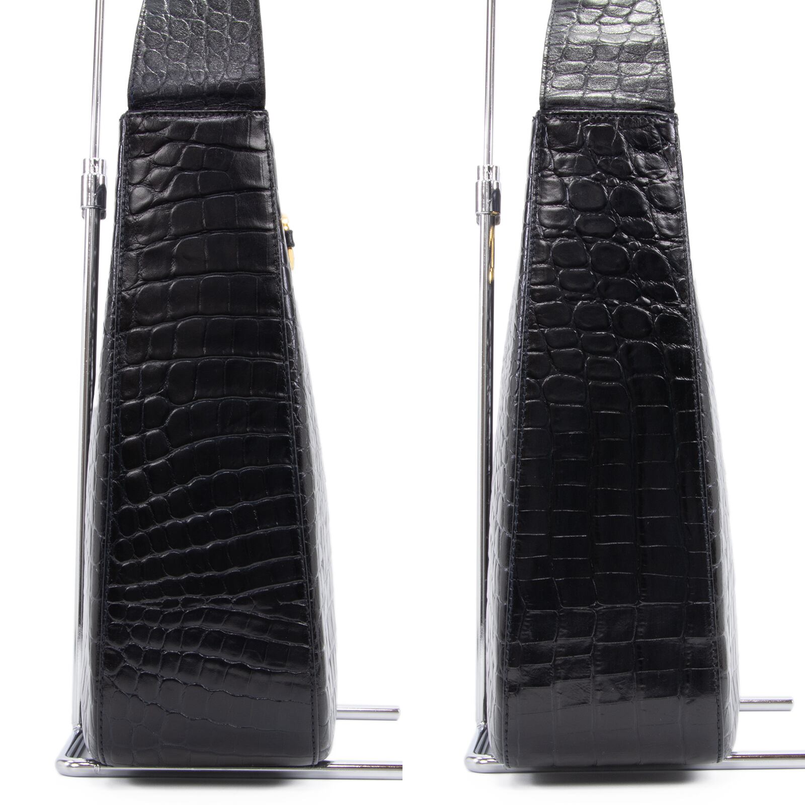 クロコダイル型押しレザーが醸し出す重厚感と、ゴールドのガンチーニ金具が輝く美しい逸品でございます。