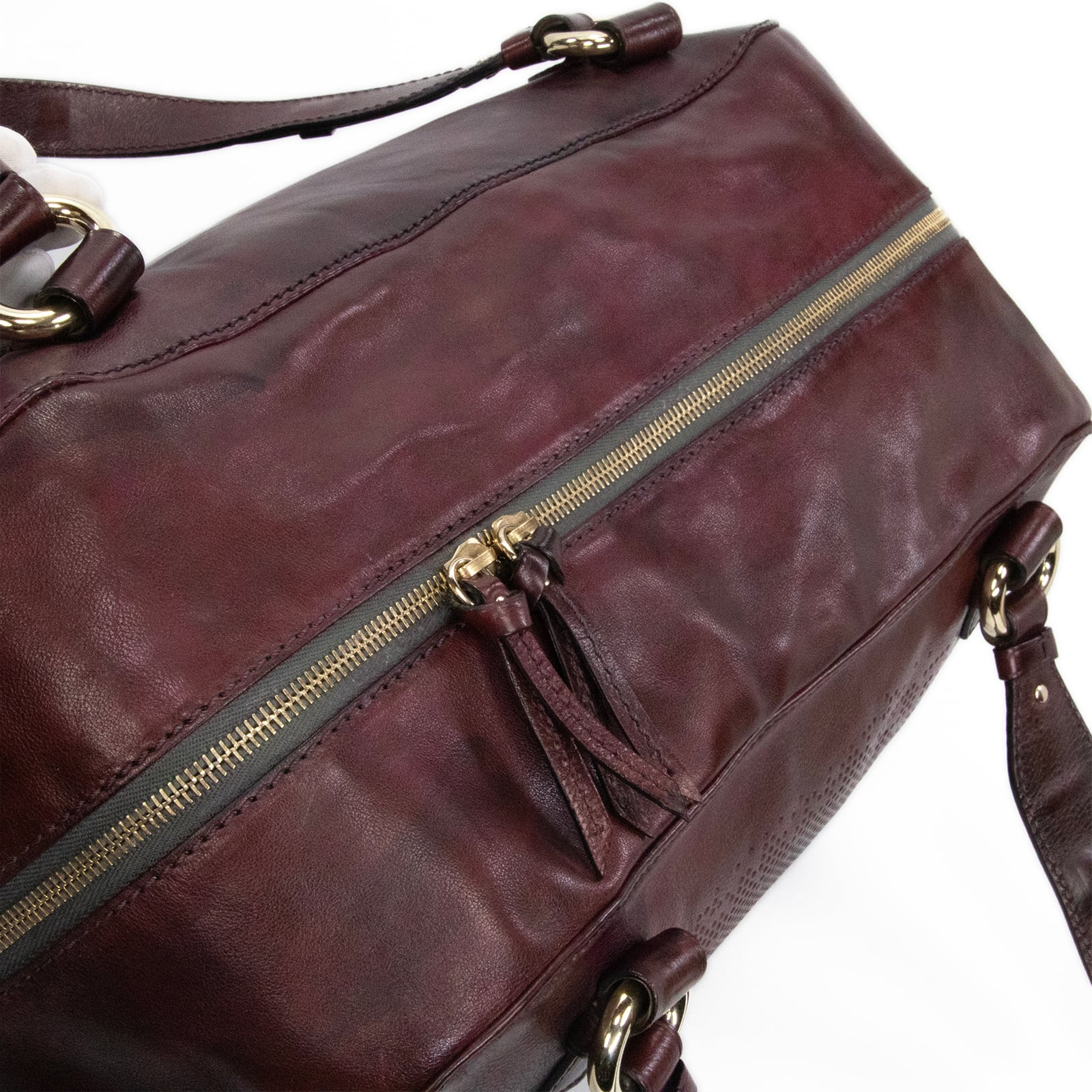特徴:珍しい・レアモデル・旅行・大きめ・大容量・馬車・ロゴ・マーク・パンチングレザー・本革・ゴールド金具・ハイブランド・おしゃれ