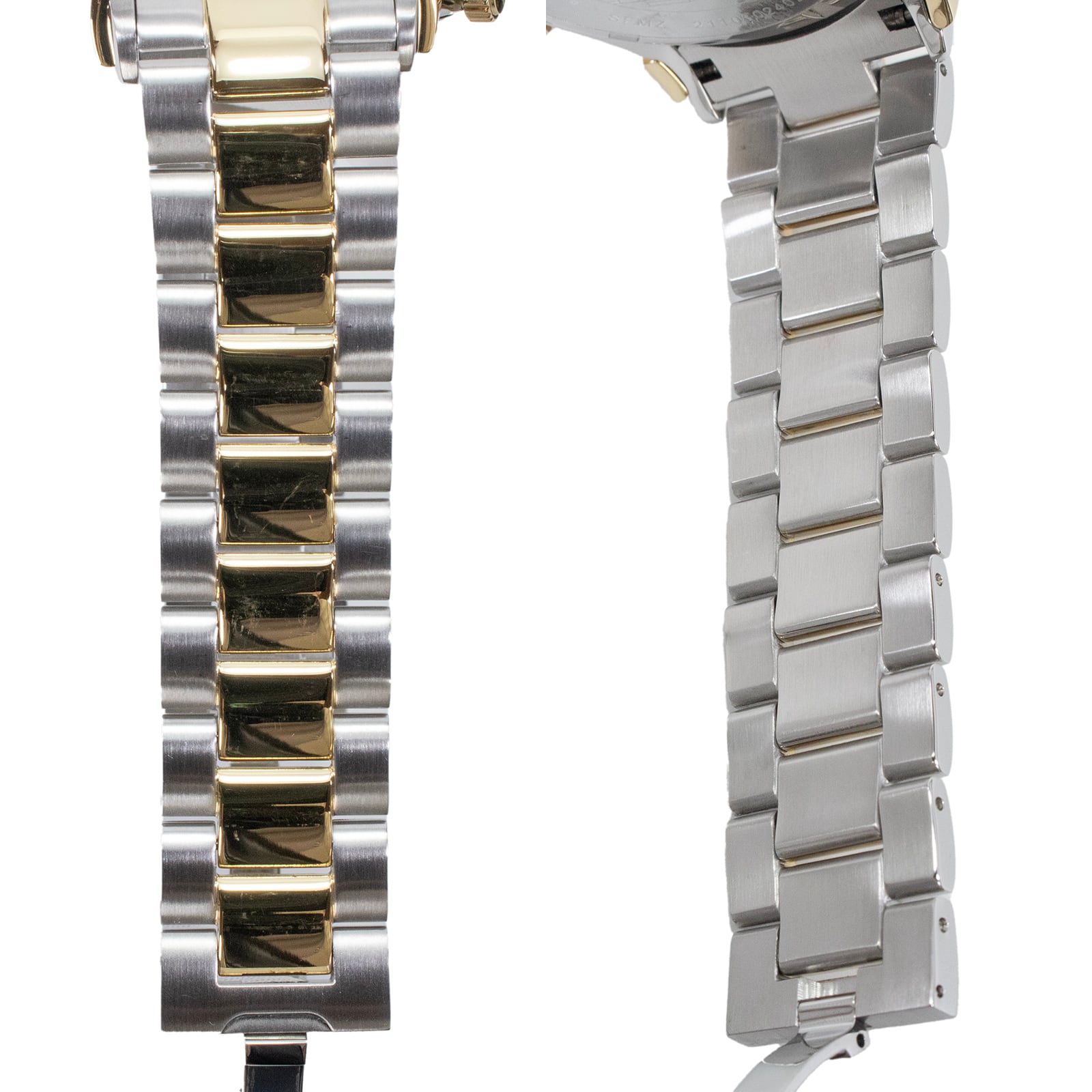 ゴールドとシルバーのコンビカラーが、ダイバーズウォッチの武骨さにラグジュアリーな輝きを添えました。