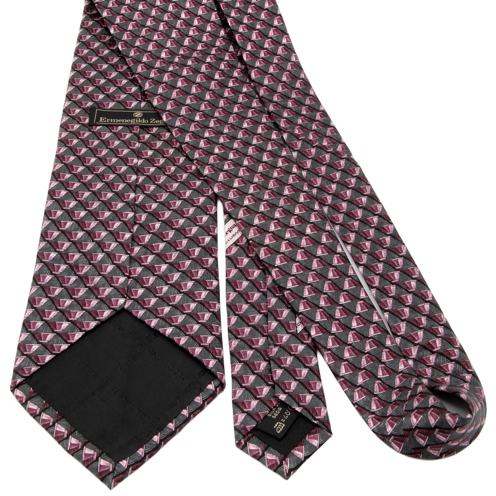 送料無料 ゼニア ネクタイ ジャガードタイ 新品同様 シルク 紫 パープル グレー 黒 ビジネス 総柄 光沢 ブランド 珍しい イタリア製 P713