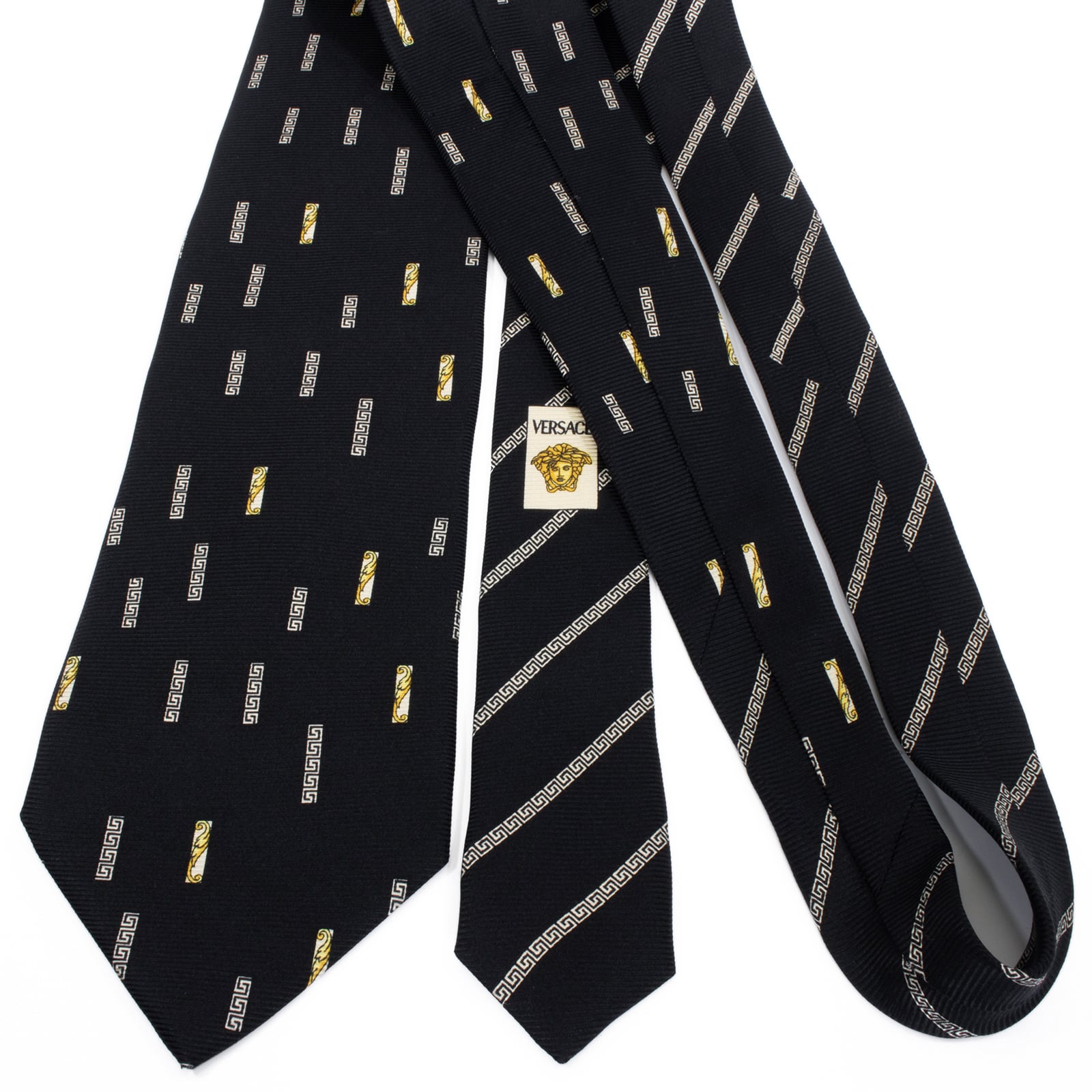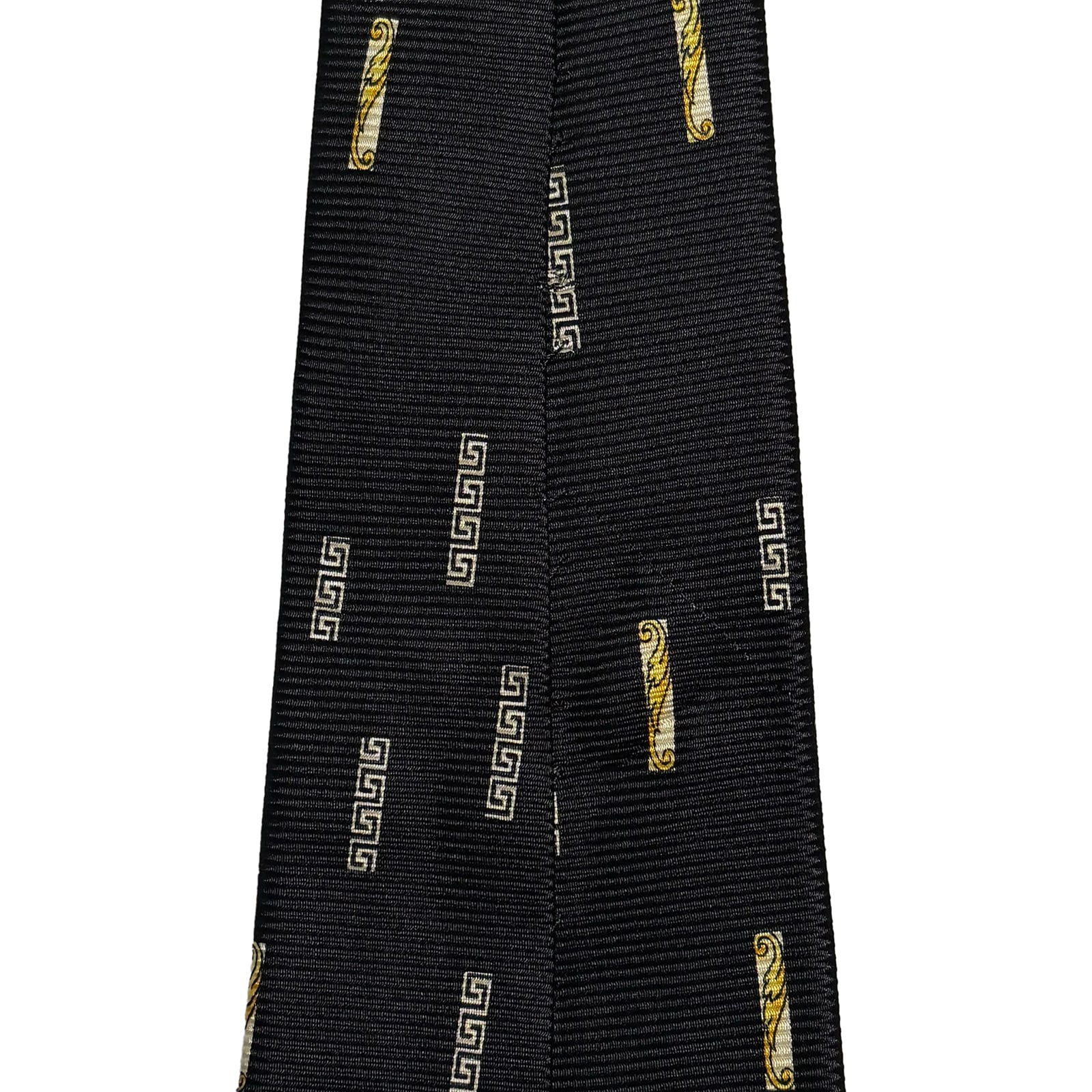 送料無料 ジャンニヴェルサーチェ ネクタイ クレリックタイ 黒 ブラック 黄色 白 総柄 ストライプ グレカ模様 マーク ハイブランド S549