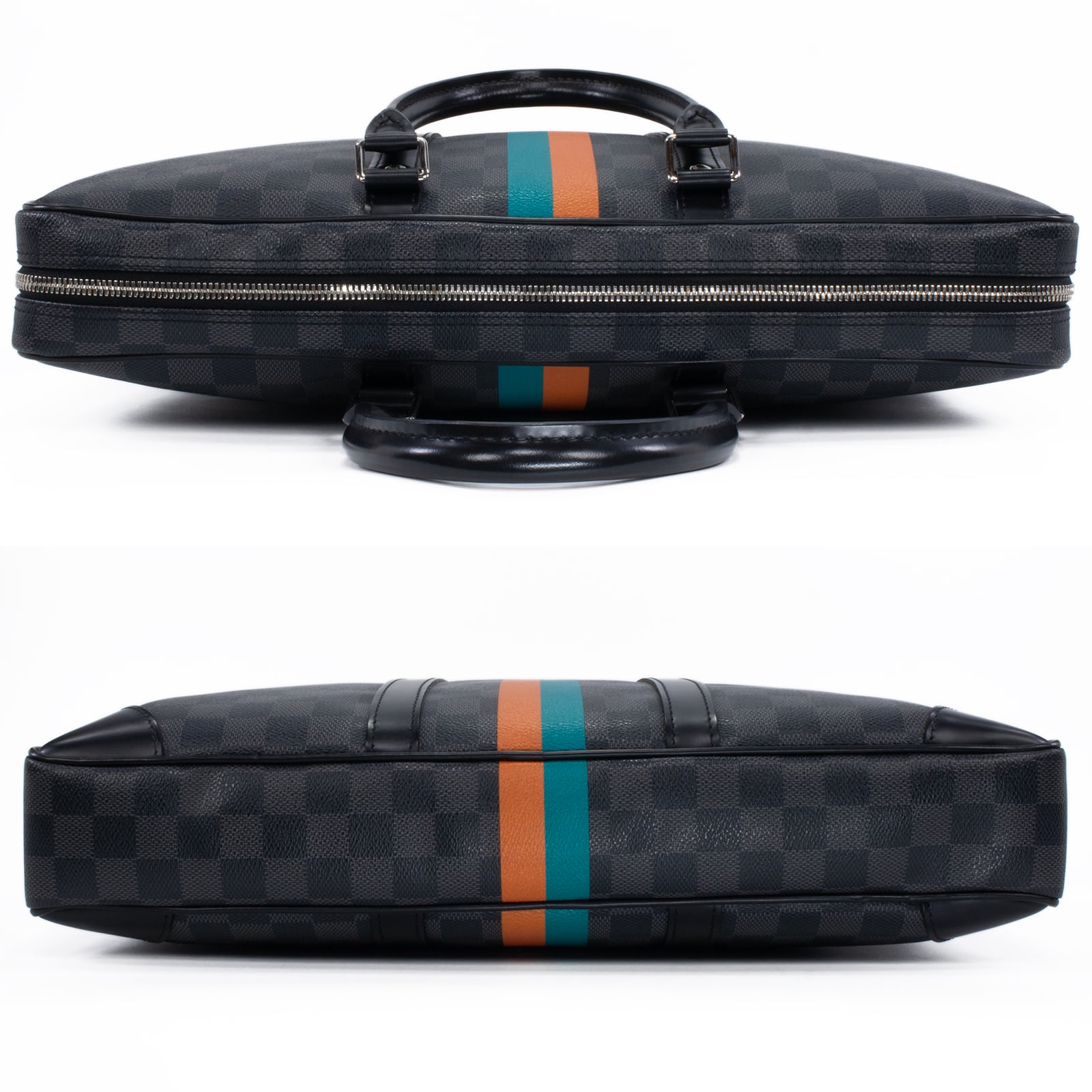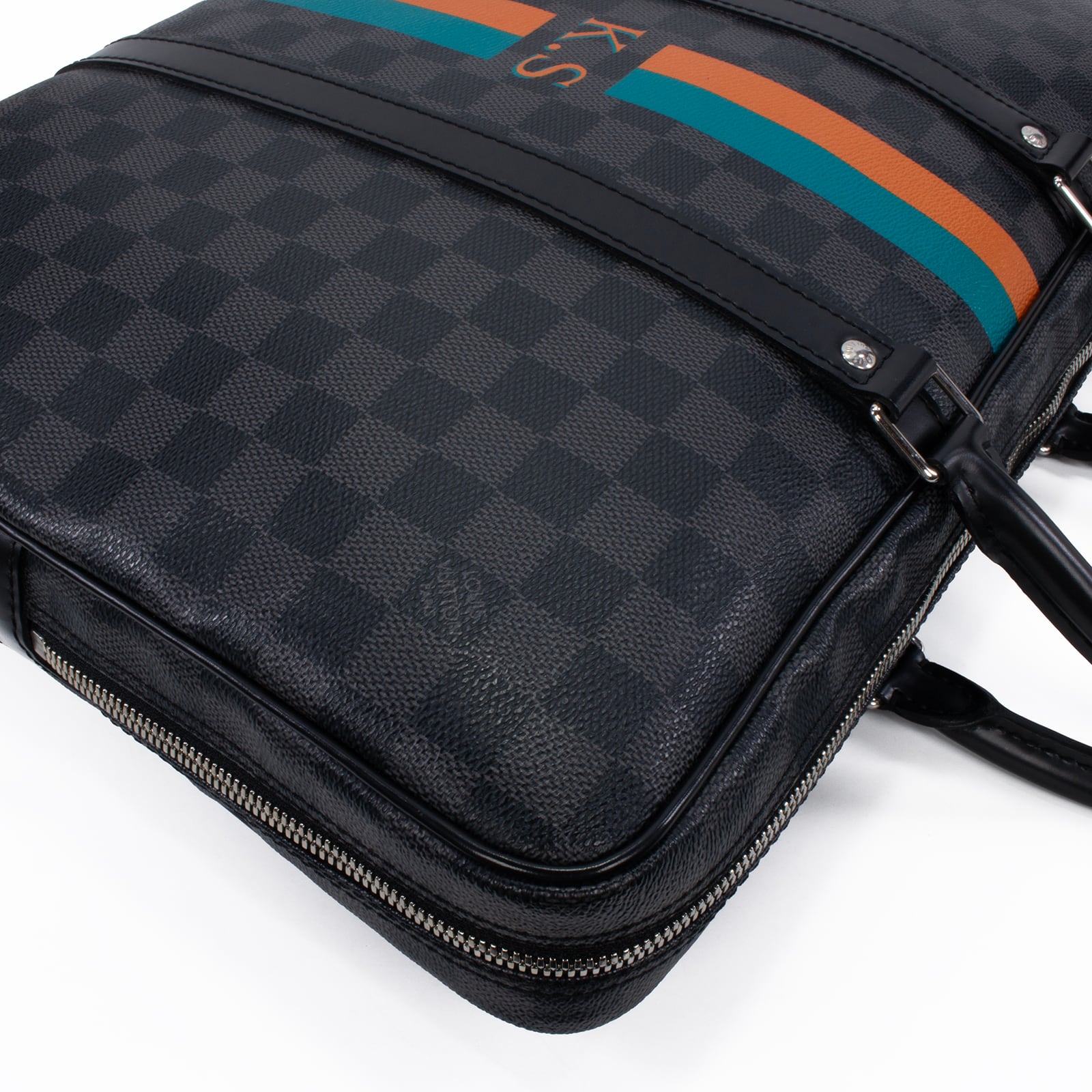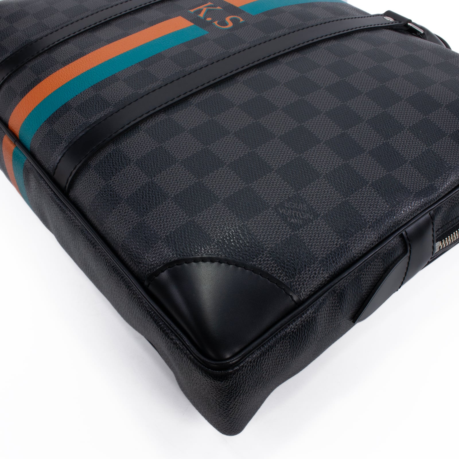 ダミエ・グラフィットのシックな装いに、鮮やかなラインが映える逸品でございます。