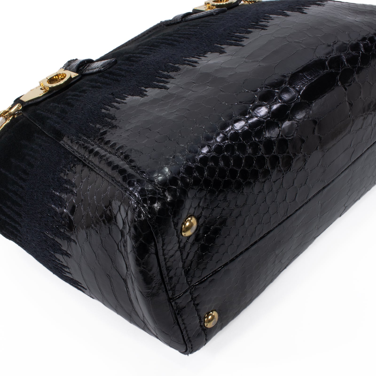 本物 送料無料 フェラガモ ハンドバッグ レディース パイソン アリアナ 黒 ブラック 珍しい 蛇の本革 ガンチーニ ロゴ 綺麗 鞄 バック L219