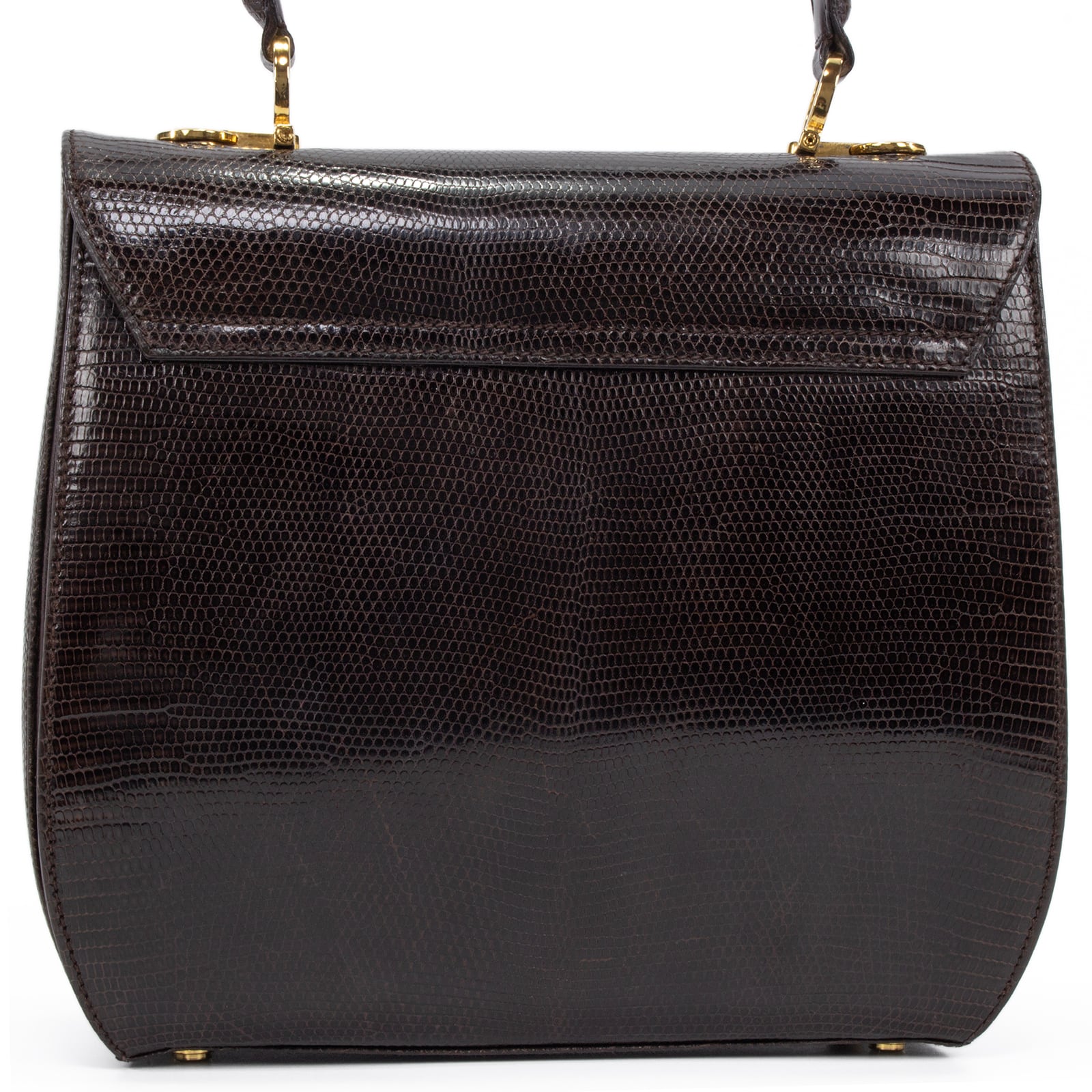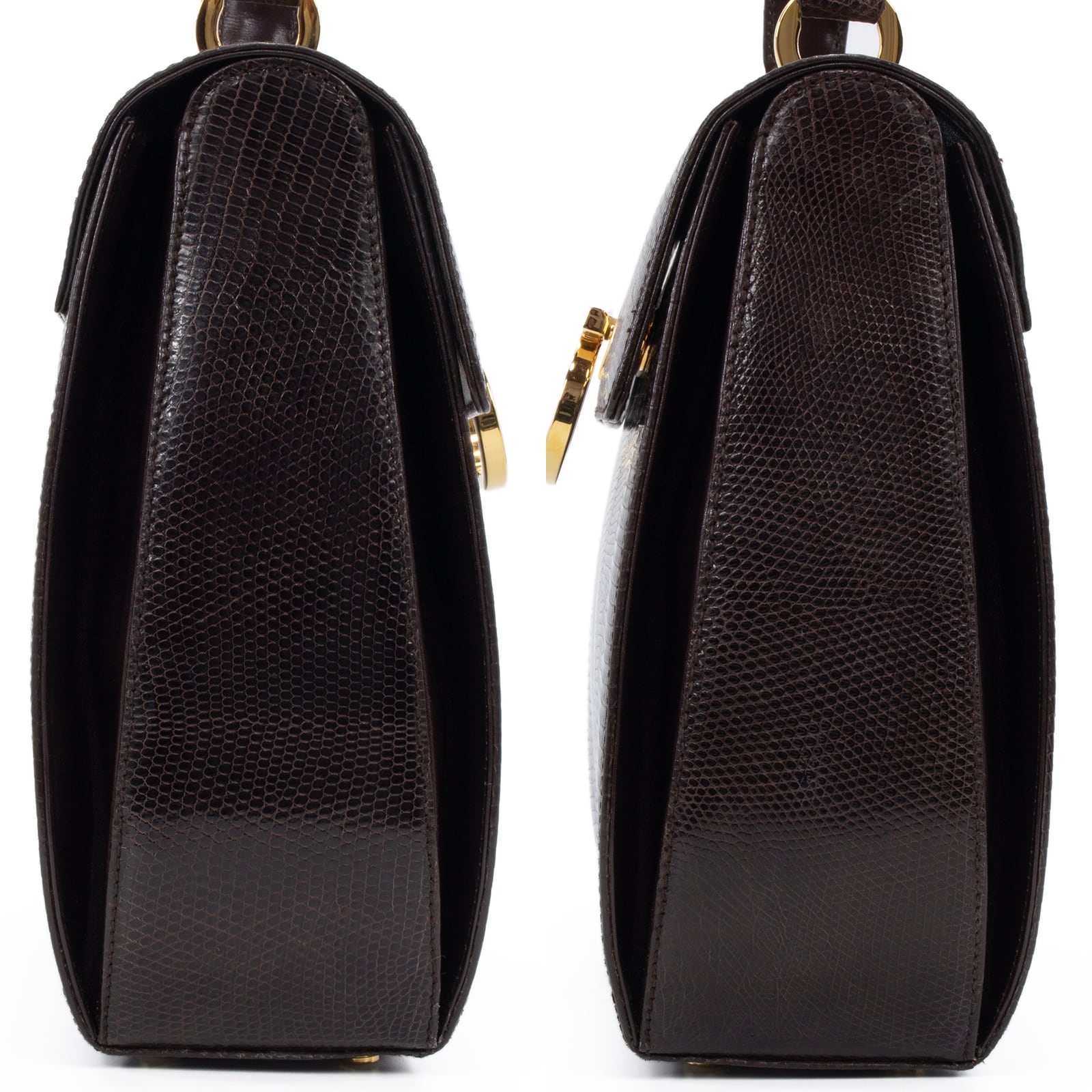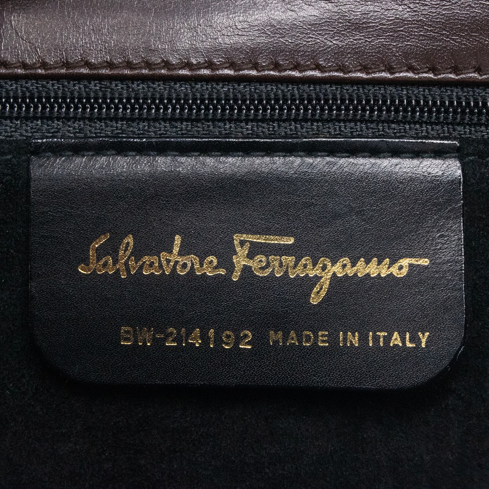 本物 送料無料 フェラガモ ハンドバッグ レディース リザード ガンチーニ 茶色 ブラウン 珍しい トカゲの本革 小さめ ロゴ 鞄 バック I282