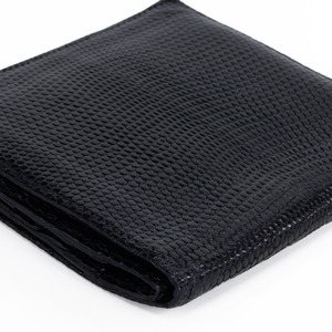 こちらは、漆黒の輝きが知的な印象を演出する、エルメスの二つ折り財布でございます。