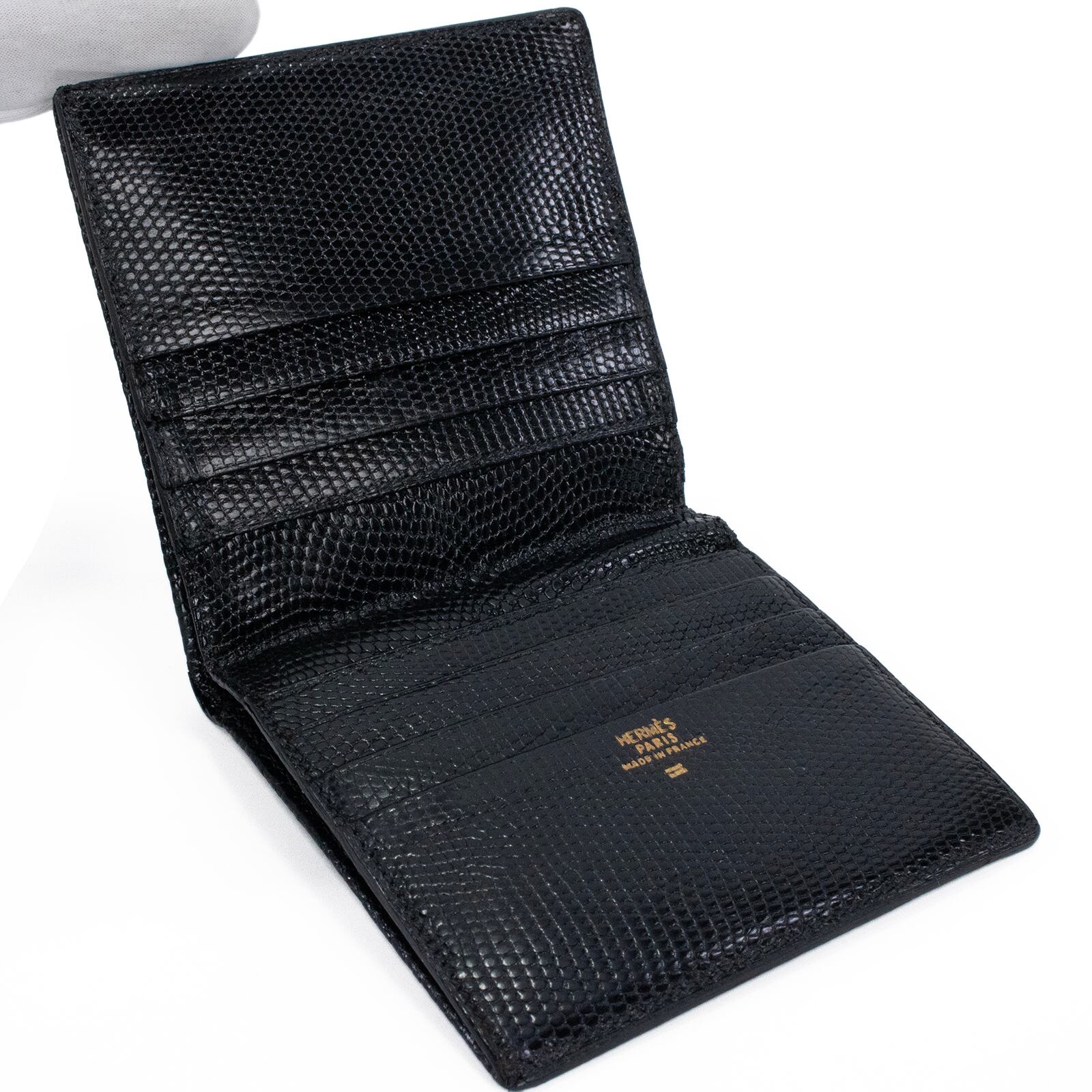 本物 送料無料 エルメス 二つ折り財布 お札入れ メンズ レディース リザード レア 黒 小さい コンパクト ヴィンテージ シンプル 綺麗 C237