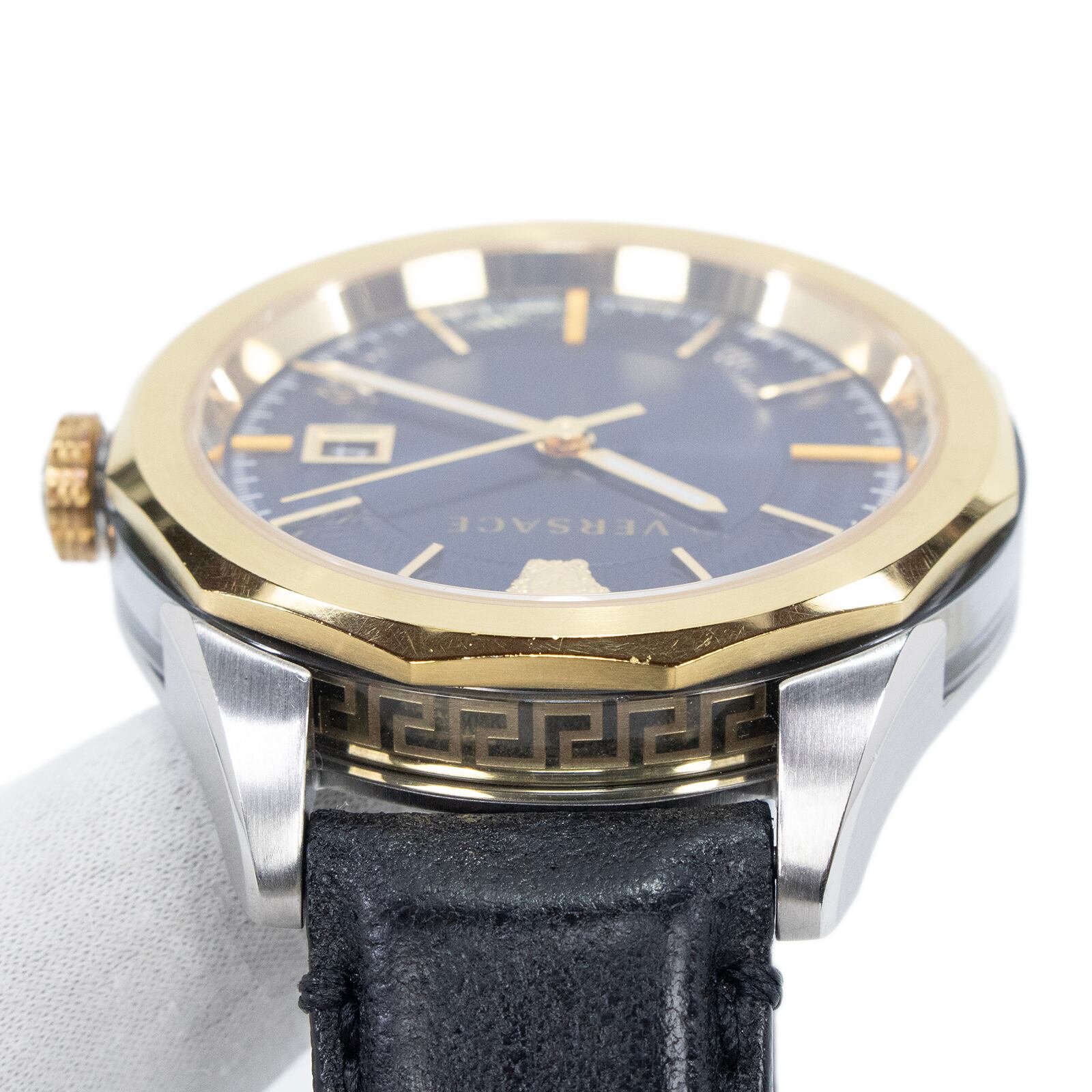 稼働品 送料無料 ヴェルサーチェ 腕時計 メンズ グレーズ VERA00218 ネイビーブルー ゴールド グレカ模様 メドゥーサロゴ マーク 派手 Q200