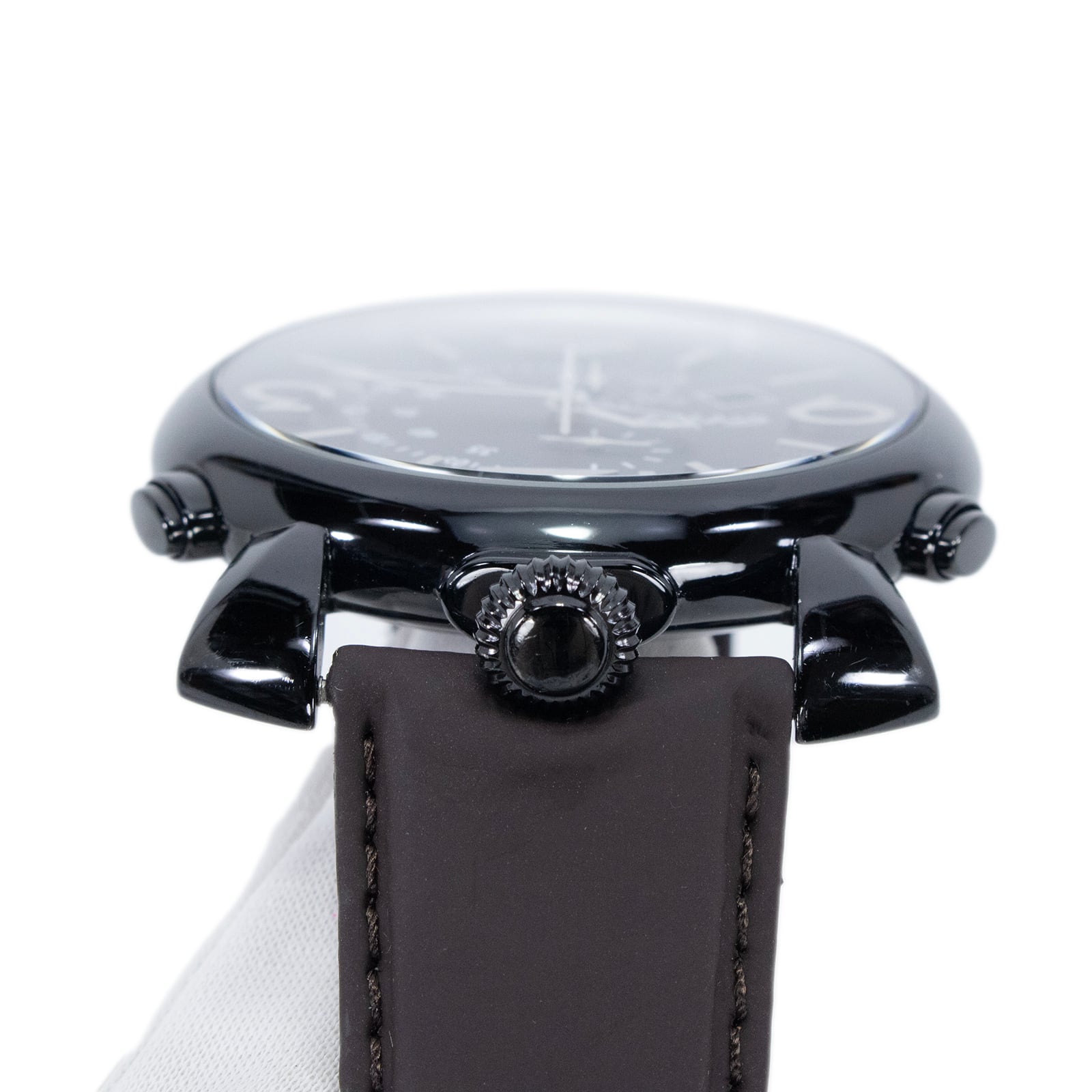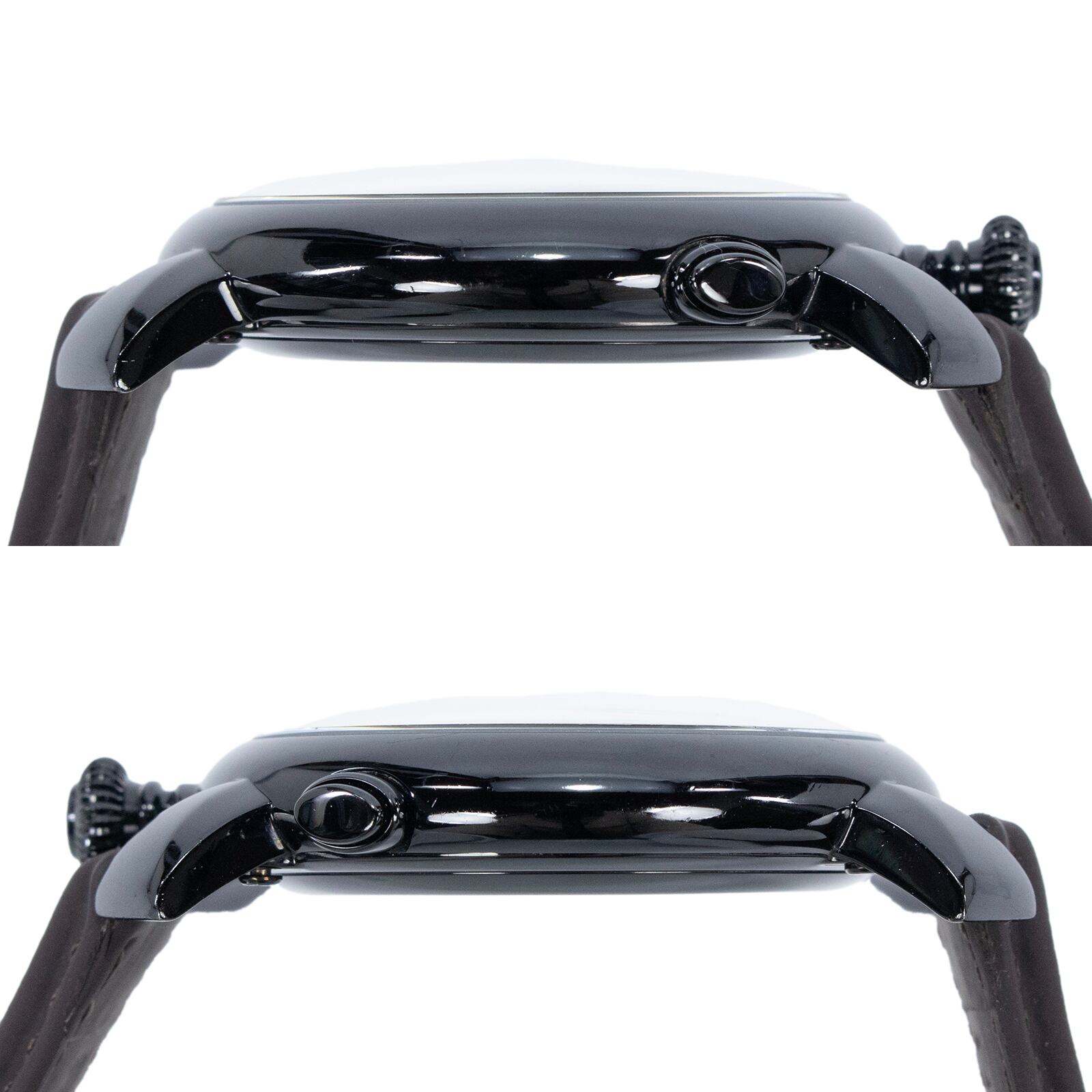 ブラックの文字盤にダークブラウン系のベルトを合わせたデザインが、知的な印象を与えます。