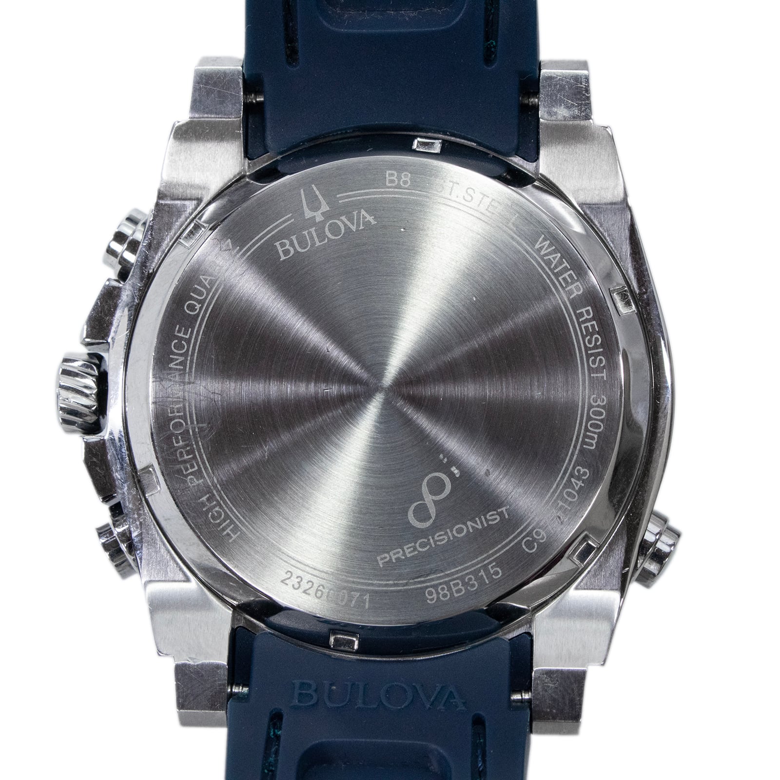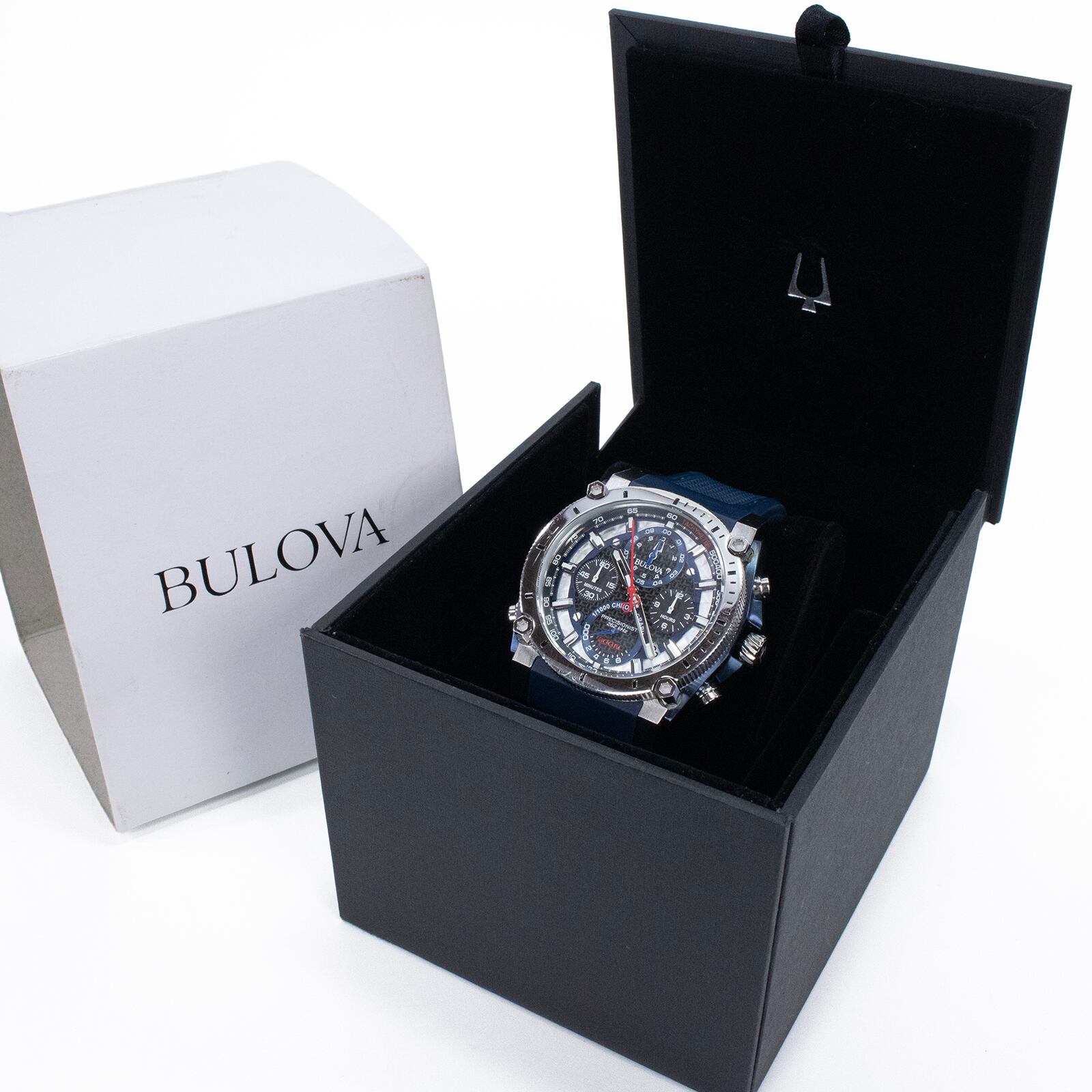 稼働品 送料無料 ブローバ 腕時計 メンズ プレシジョニスト 98B315 黒 ネイビーブルー 1/1000秒クロノグラフ ロゴ マーク 目立つ 綺麗 Q203