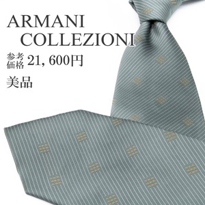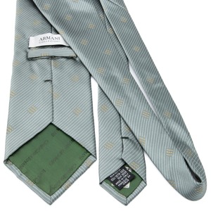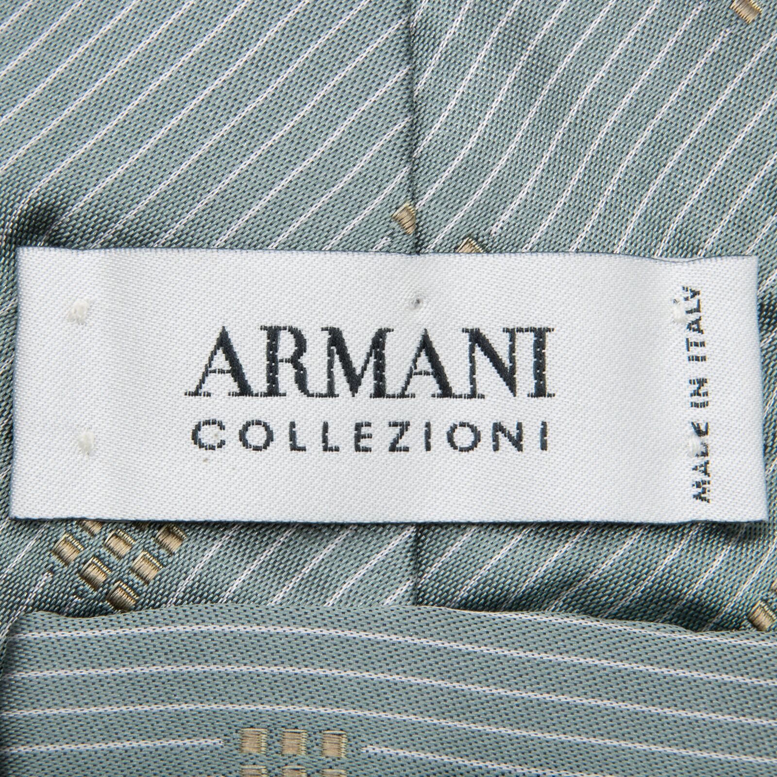 送料無料 アルマーニコレツィオーニ ネクタイ ジャガード シルク 青緑 グレー グリーン ストライプ 光沢 ハイブランド イタリア 綺麗 P315