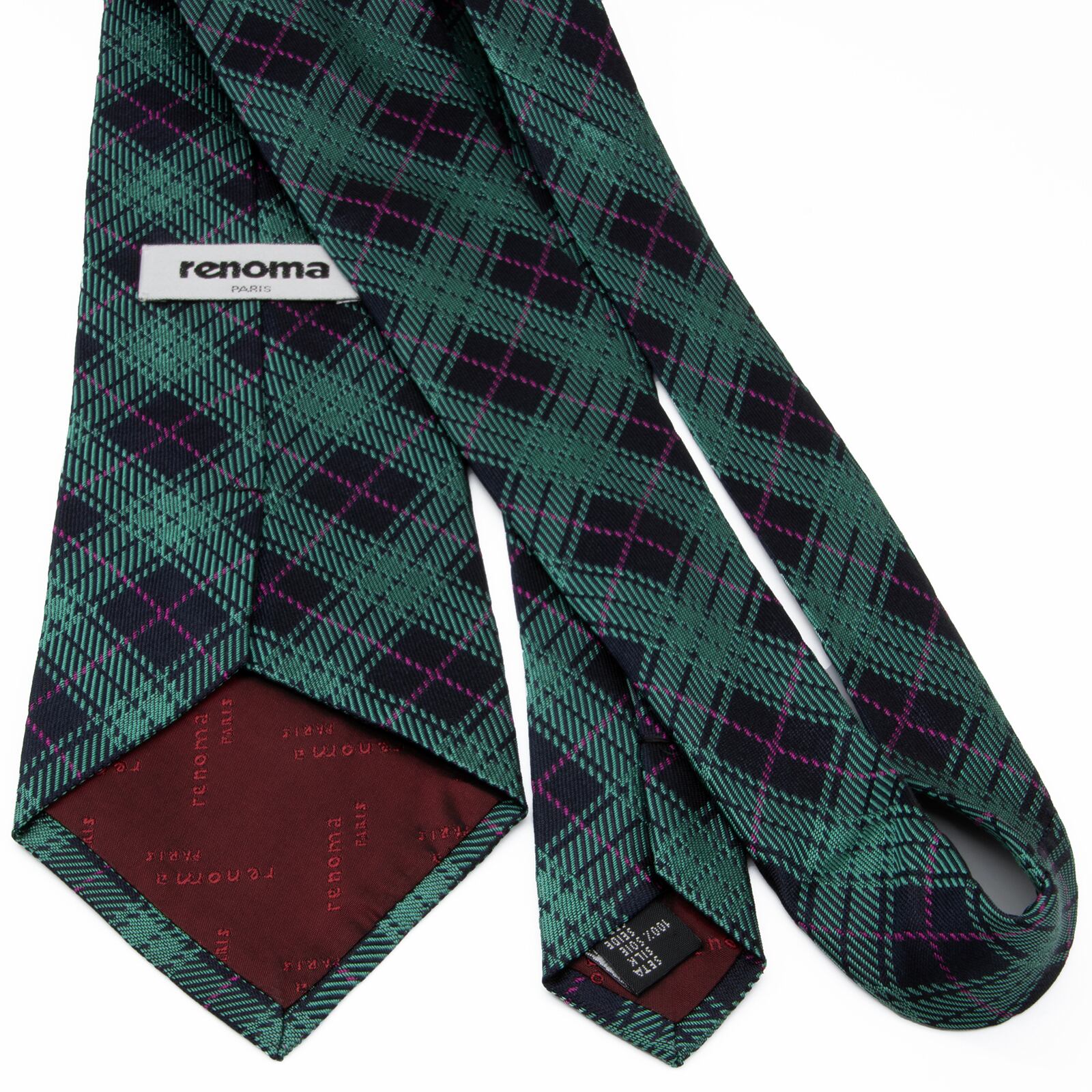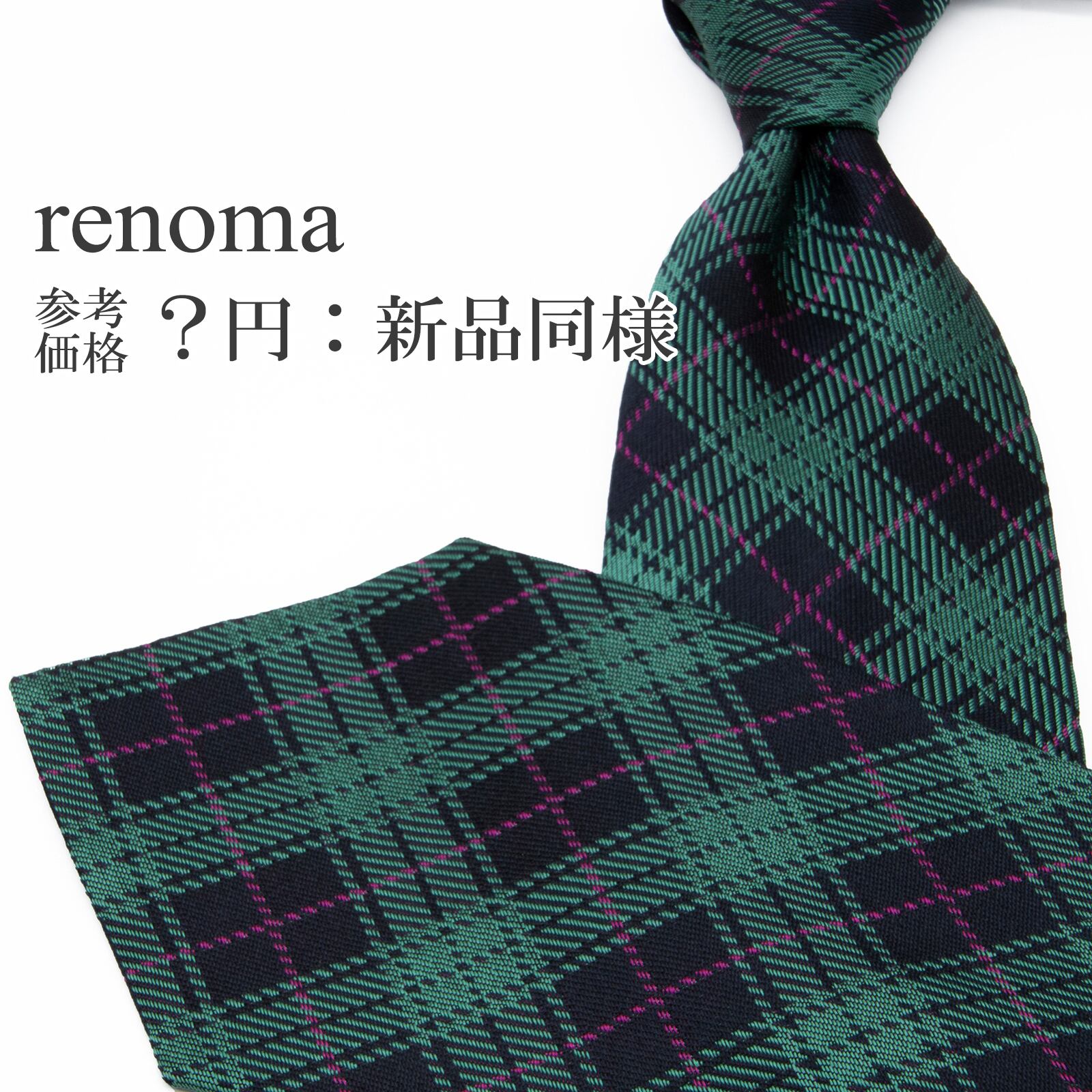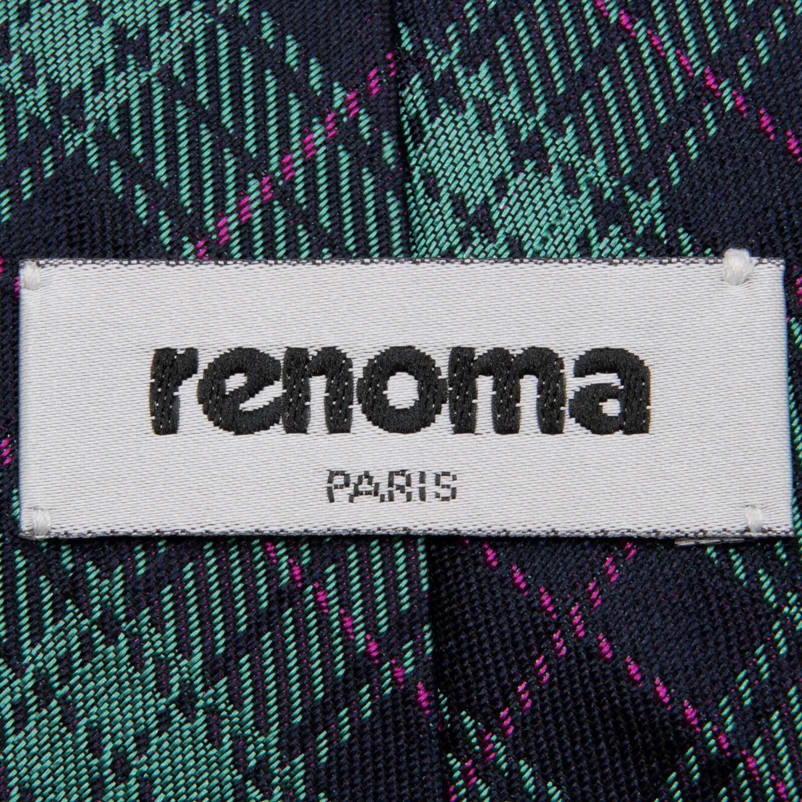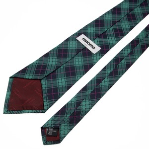 送料無料 レノマ ネクタイ ジャガードタイ 新品同様 シルク 緑 グリーン 黒 ブラック 紫 チェック 格子 光沢 ブランド イタリア 綺麗 P328