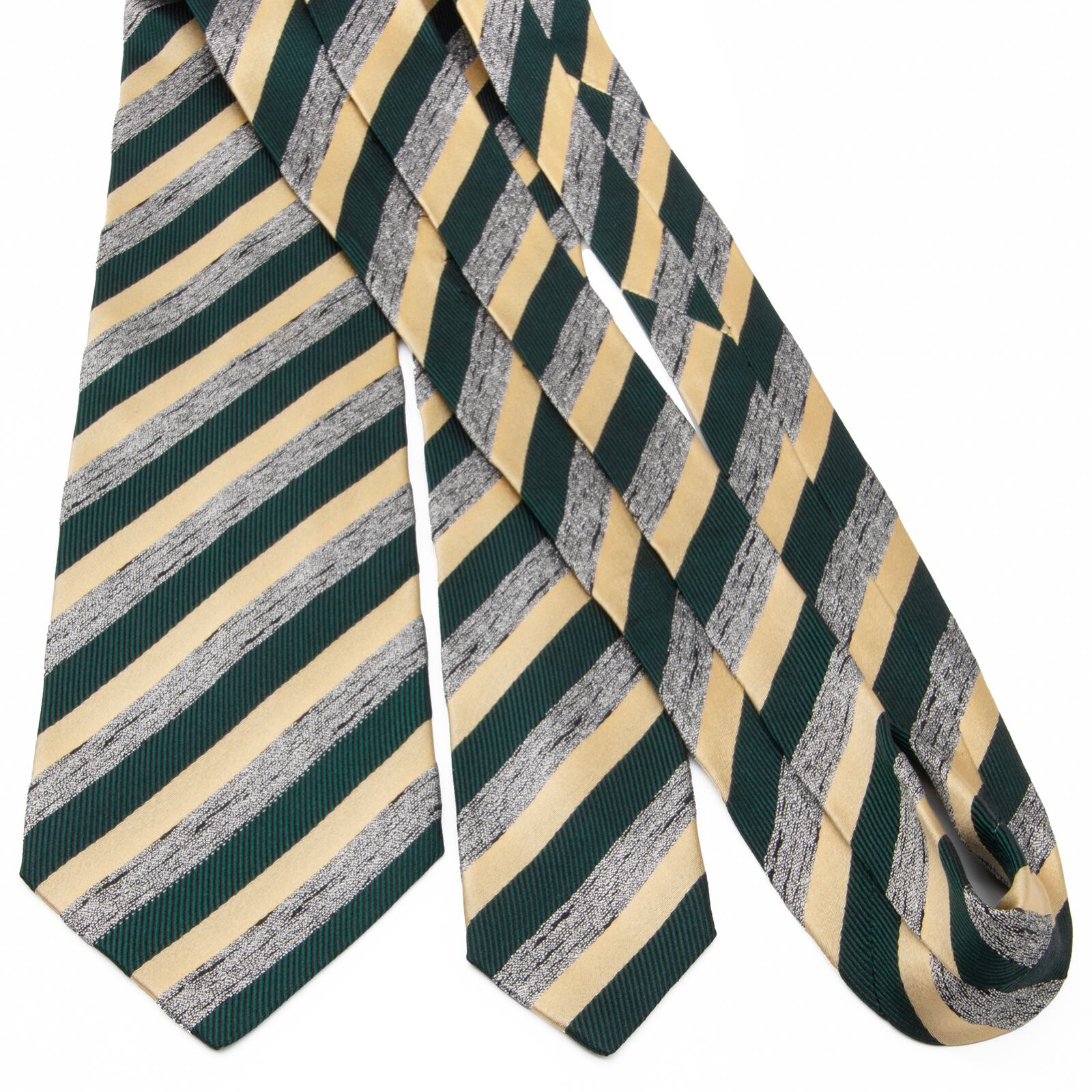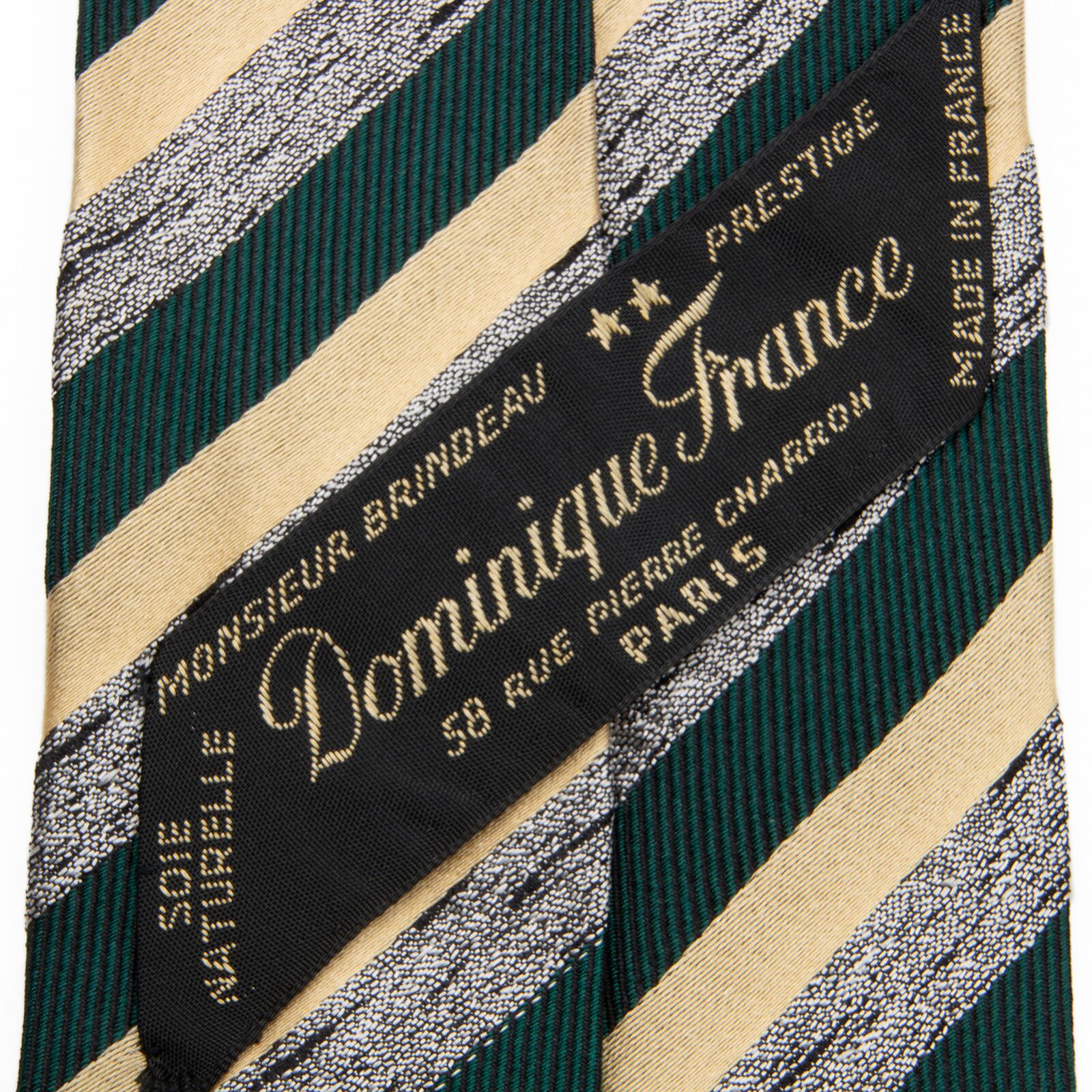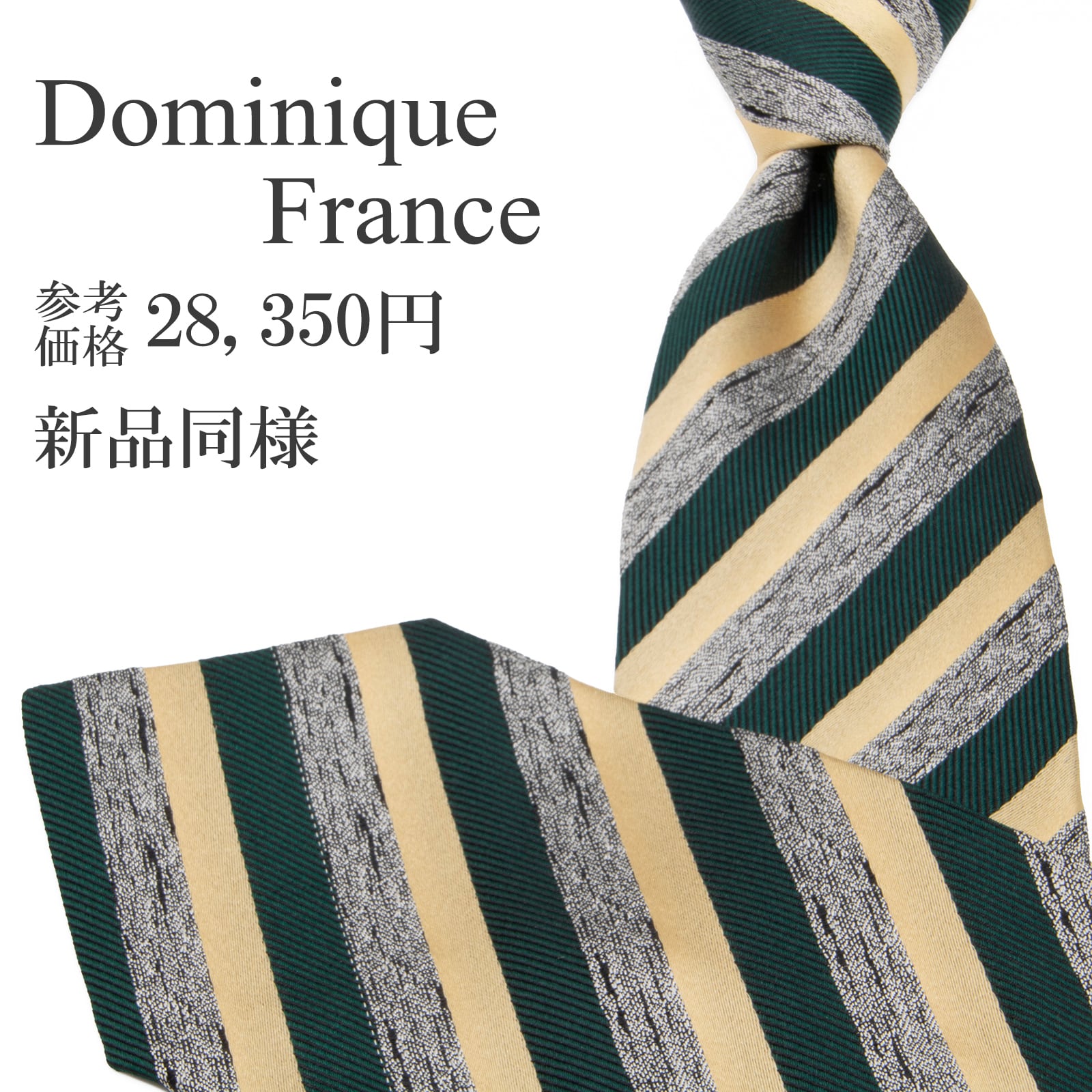 送料無料 ドミニックフランス ネクタイ レギュラータイ ジャガード 新品同様 緑 ベージュ シルバー ストライプ ハイブランド フランス P330