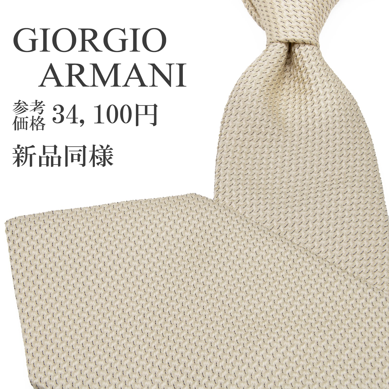 送料無料 ジョルジオアルマーニ ネクタイ ジャガード 新品同様 シルク ベージュ 黒 ソリッド 無地 シンプル ハイブランド イタリア製 P354
