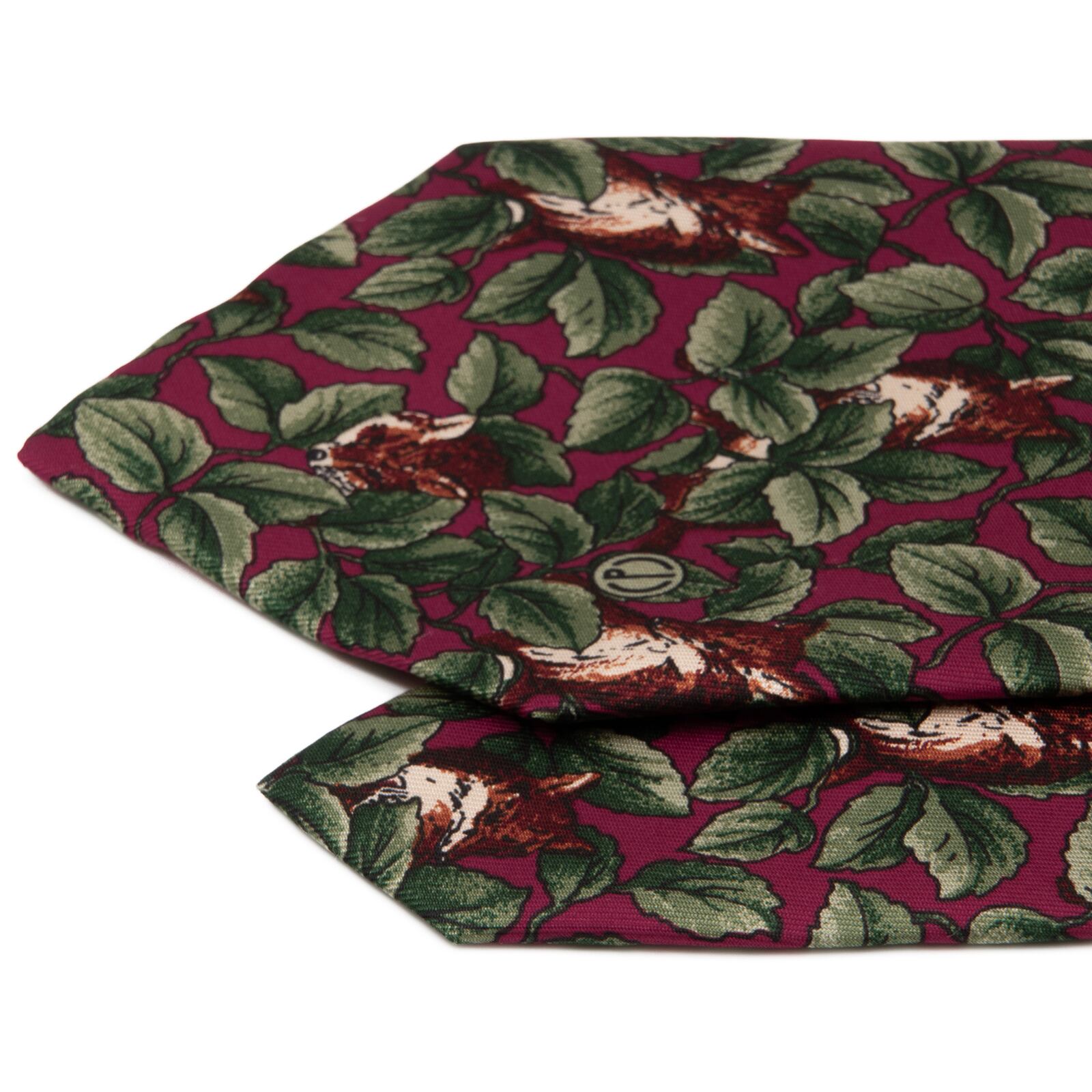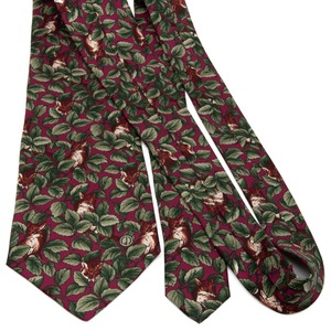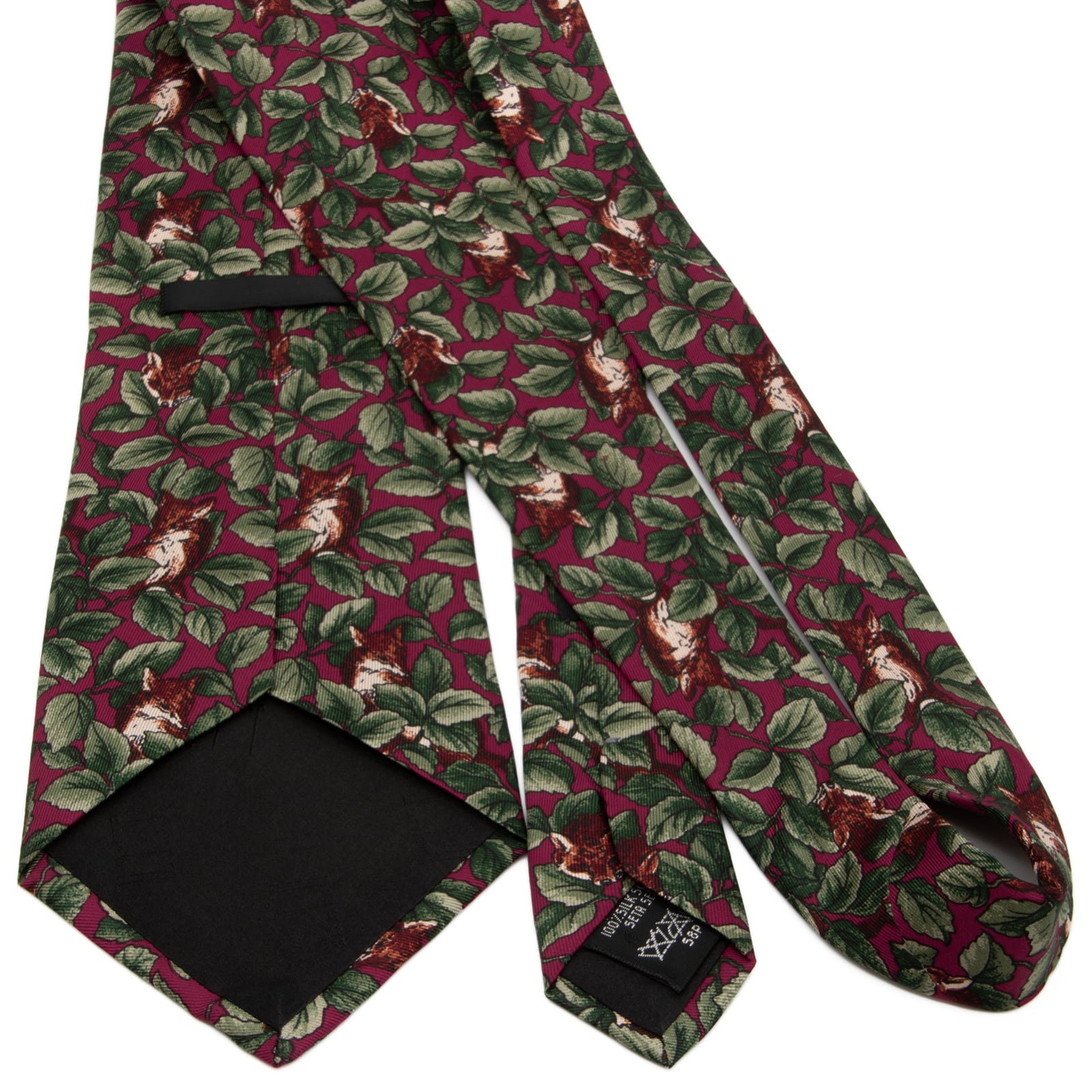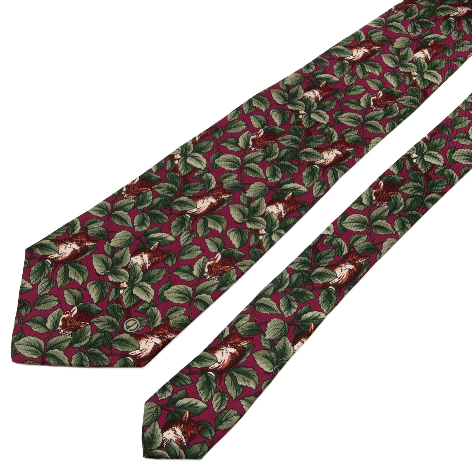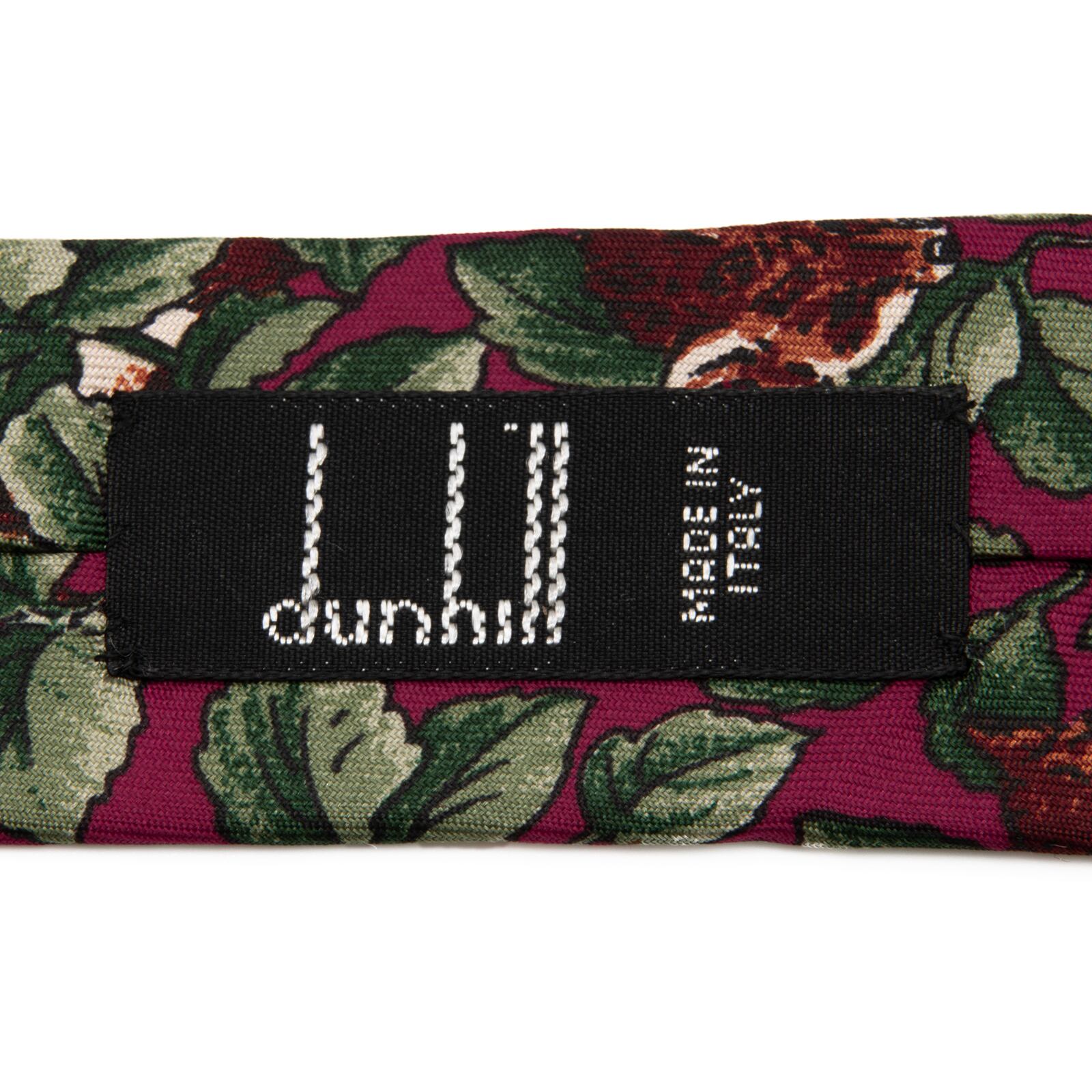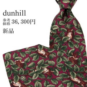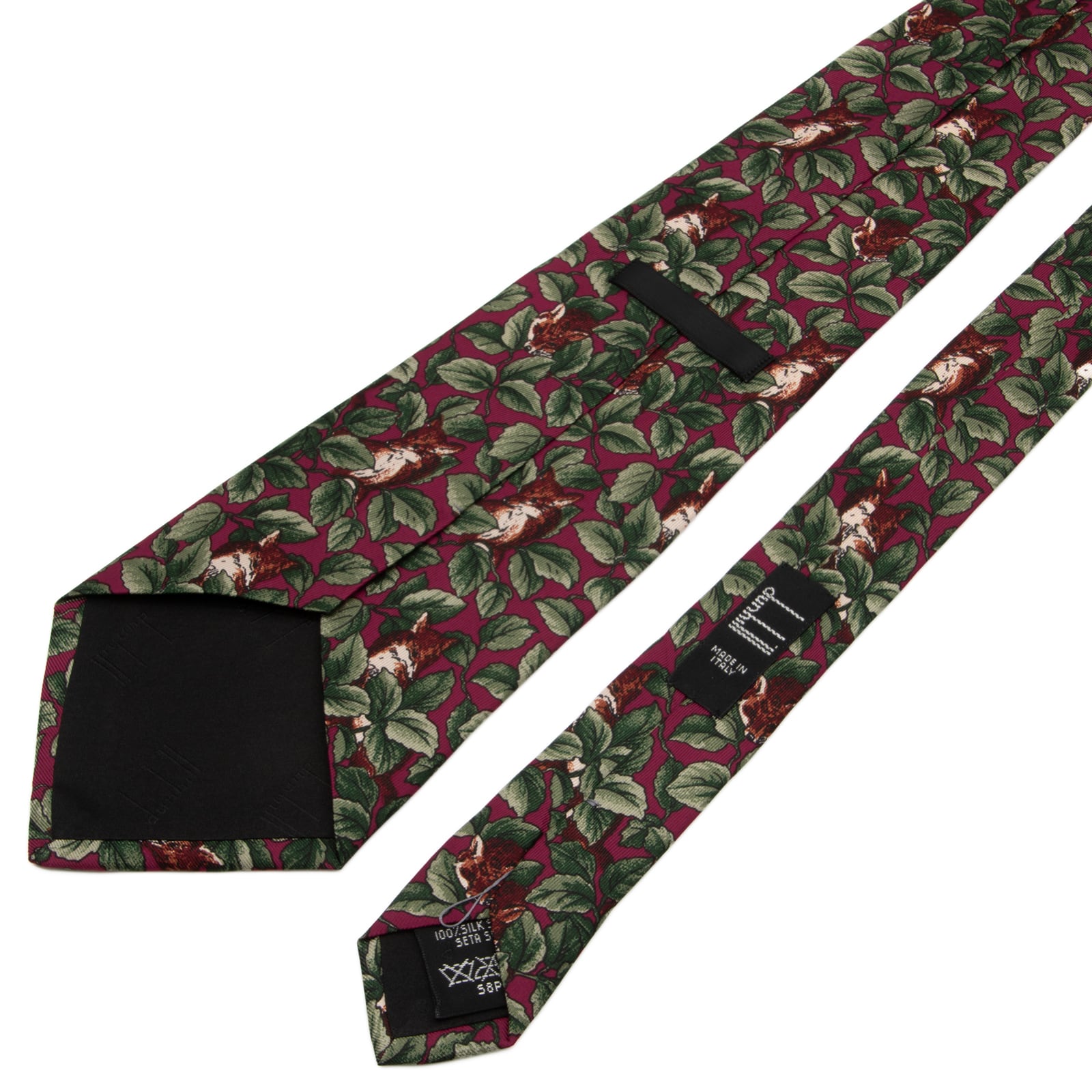 送料無料 ダンヒル ネクタイ 新品 シルク 赤 ワインレッド 緑 茶色 白 総柄 ロゴ マーク 動物 きつね 葉 自然 ブランド イタリア 綺麗 P397